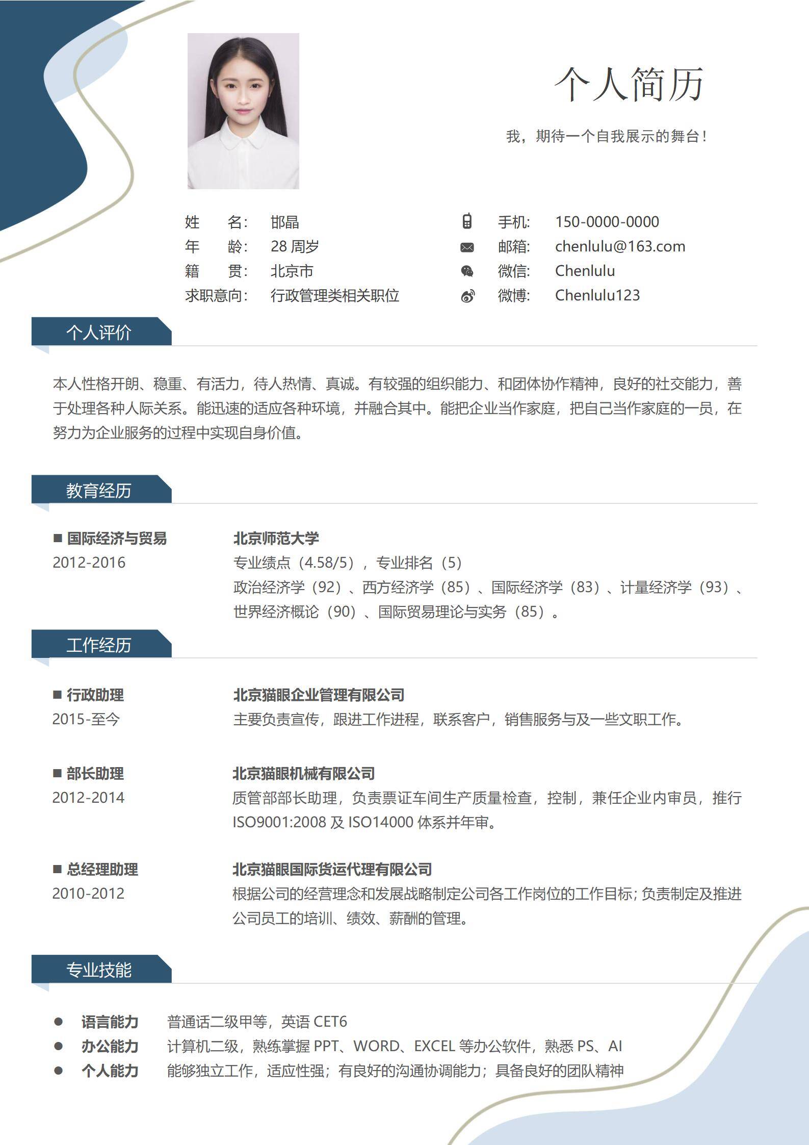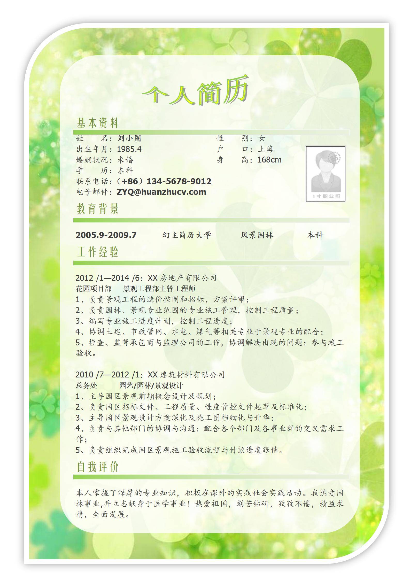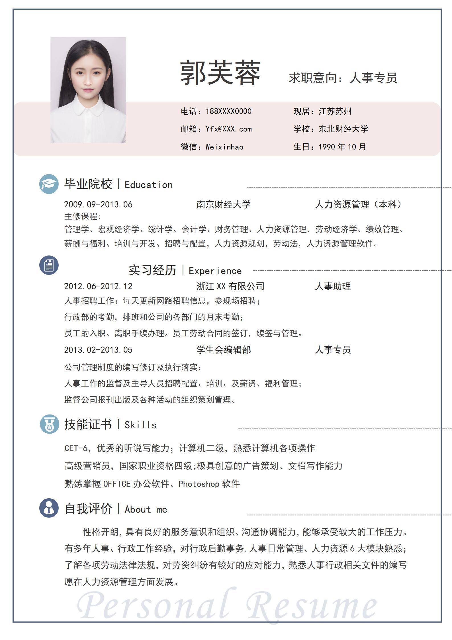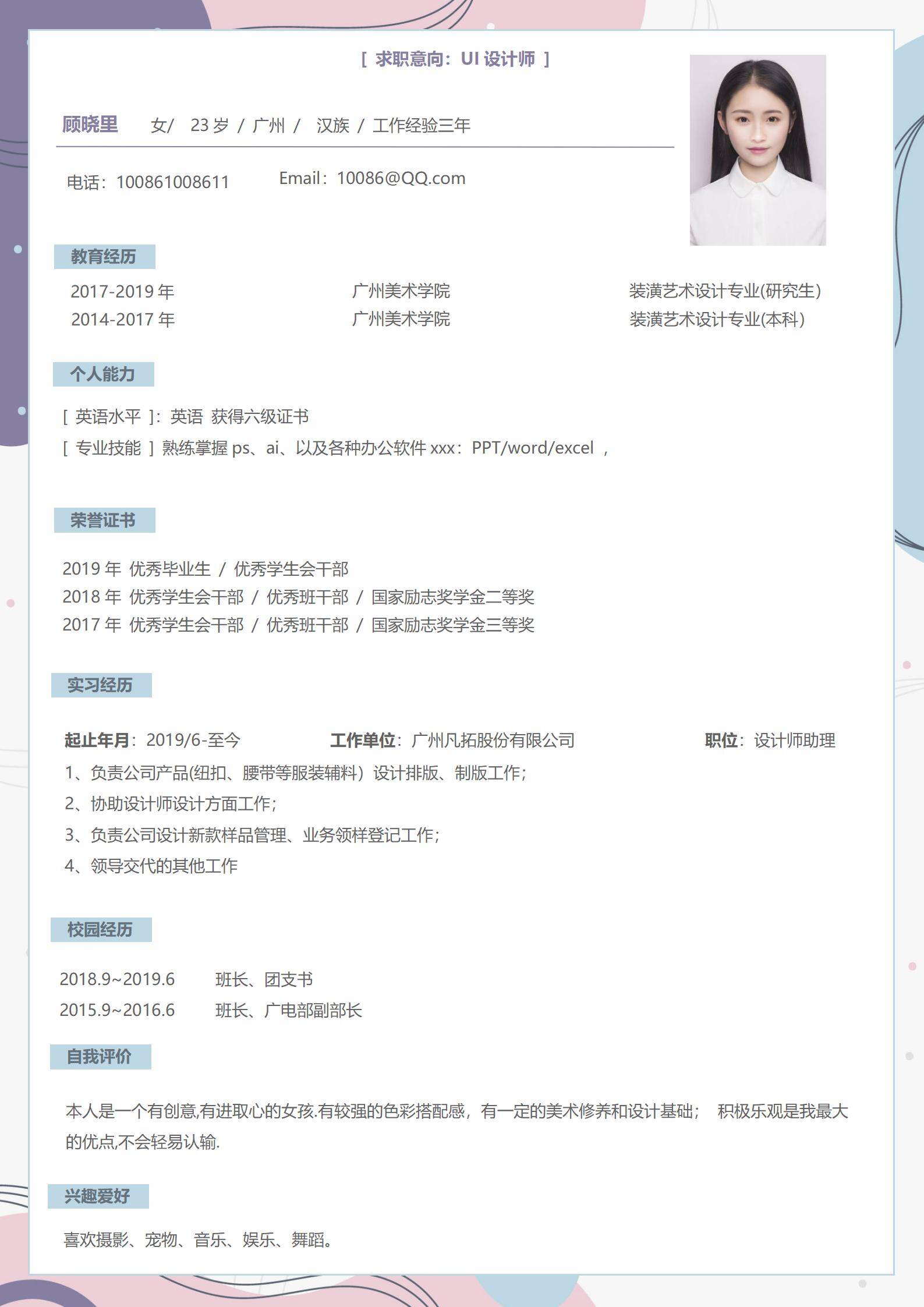 清新淡雅,简历很好