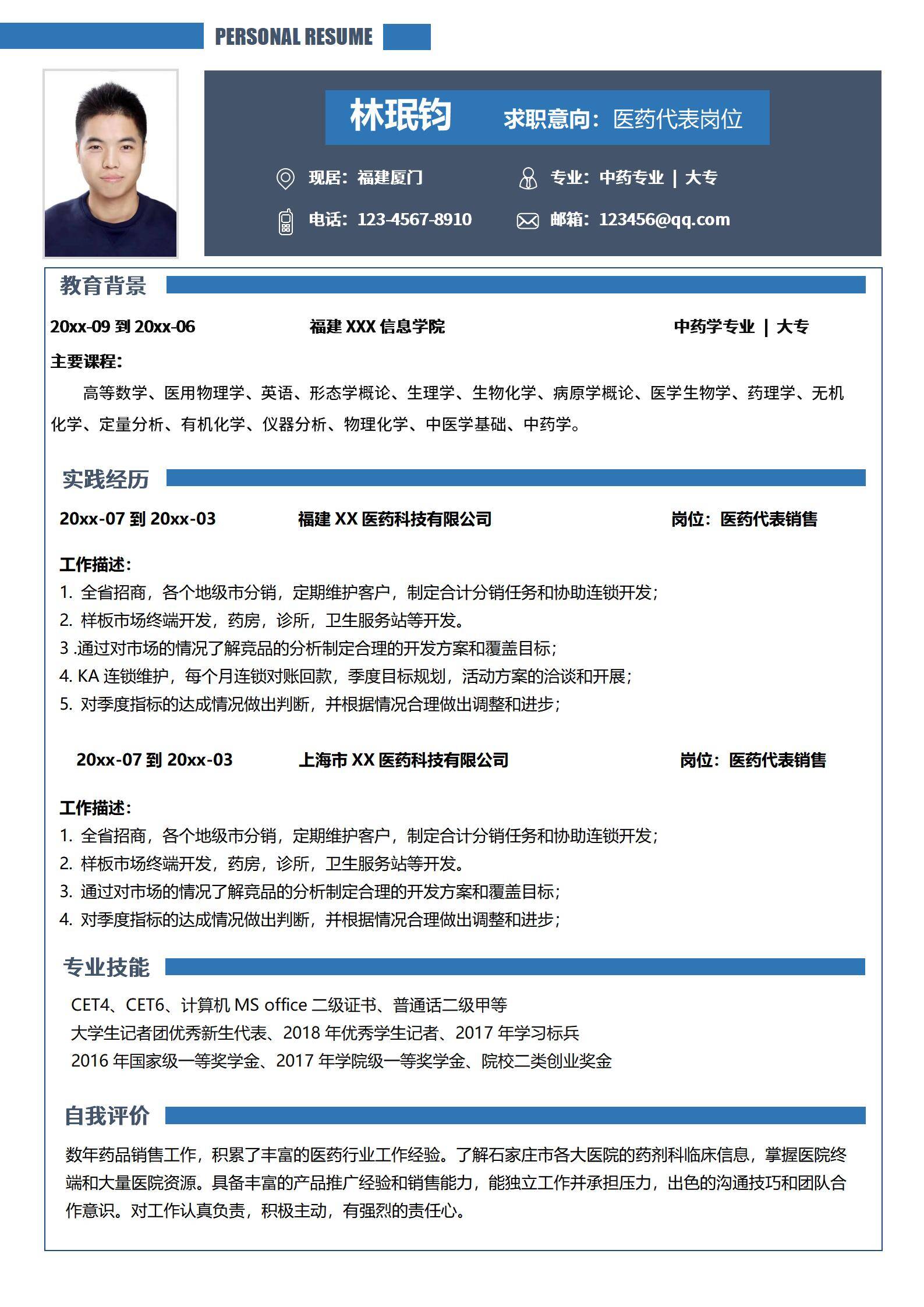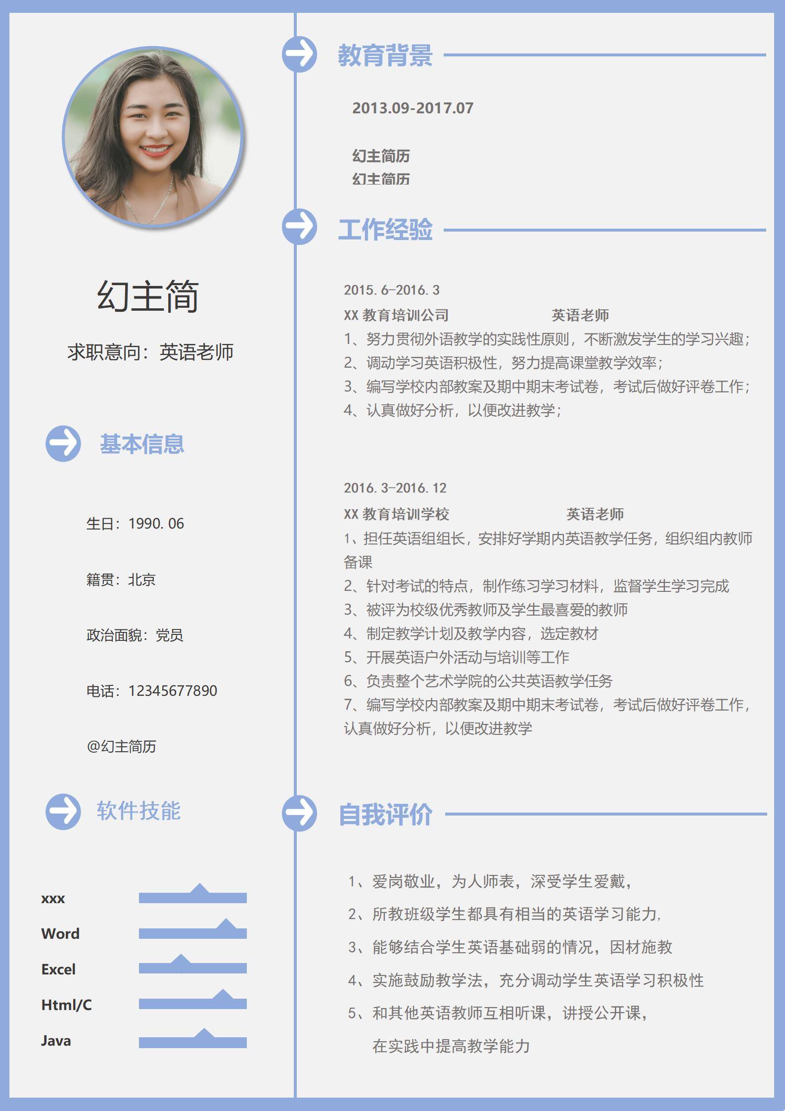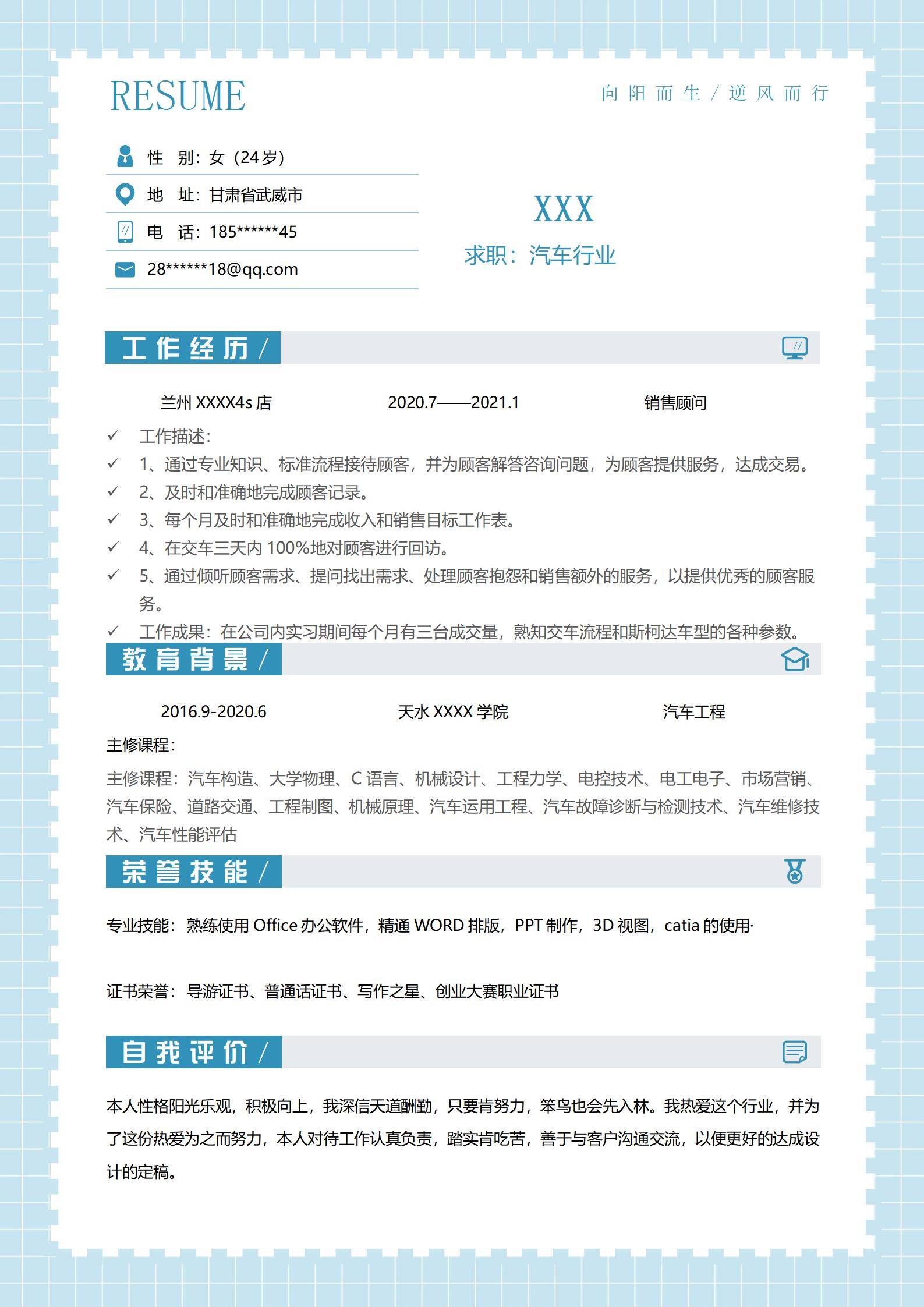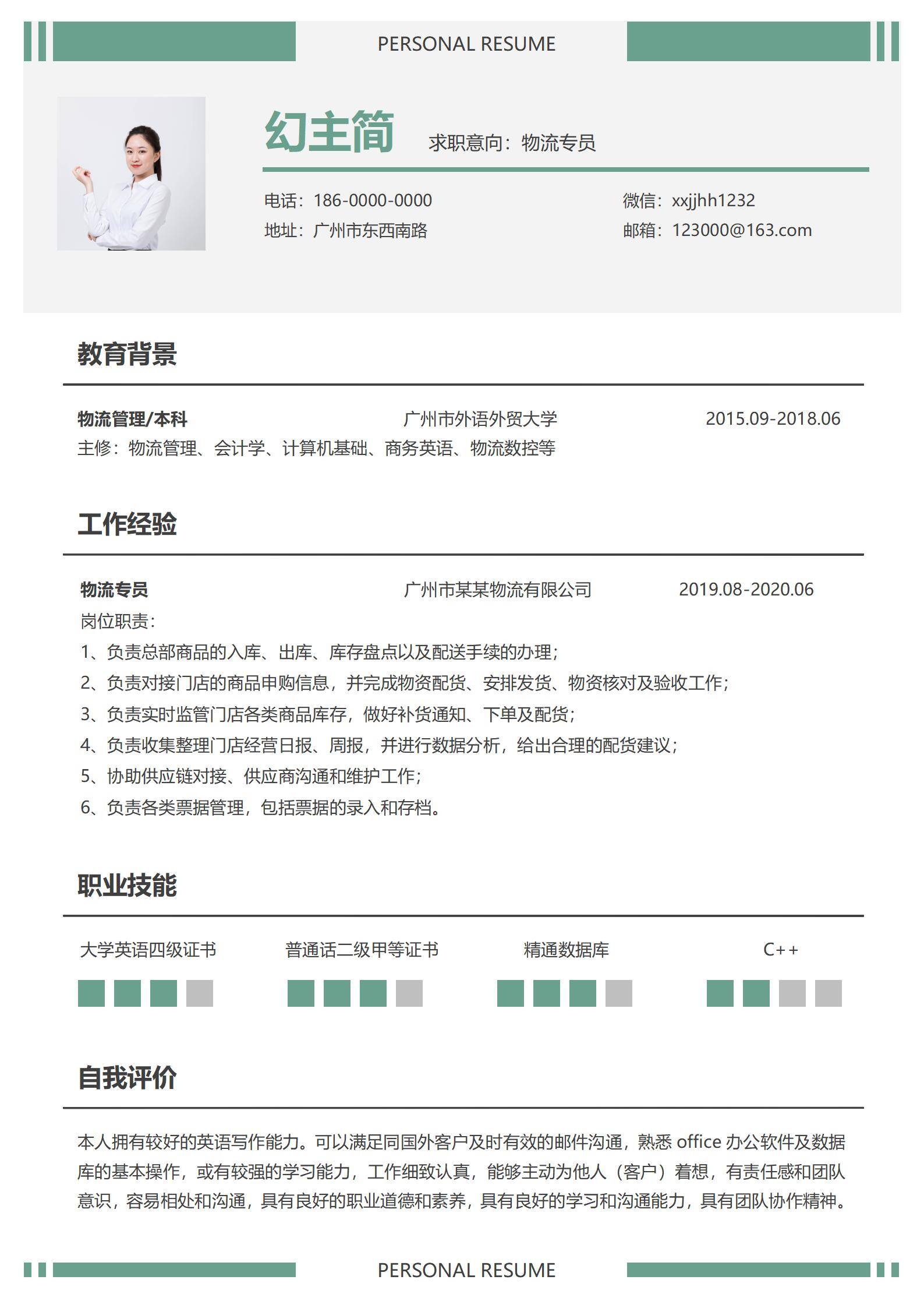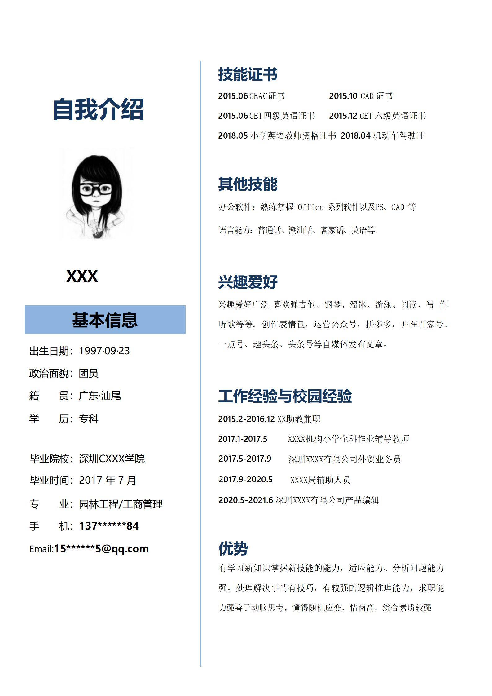清新淡雅,简历很好