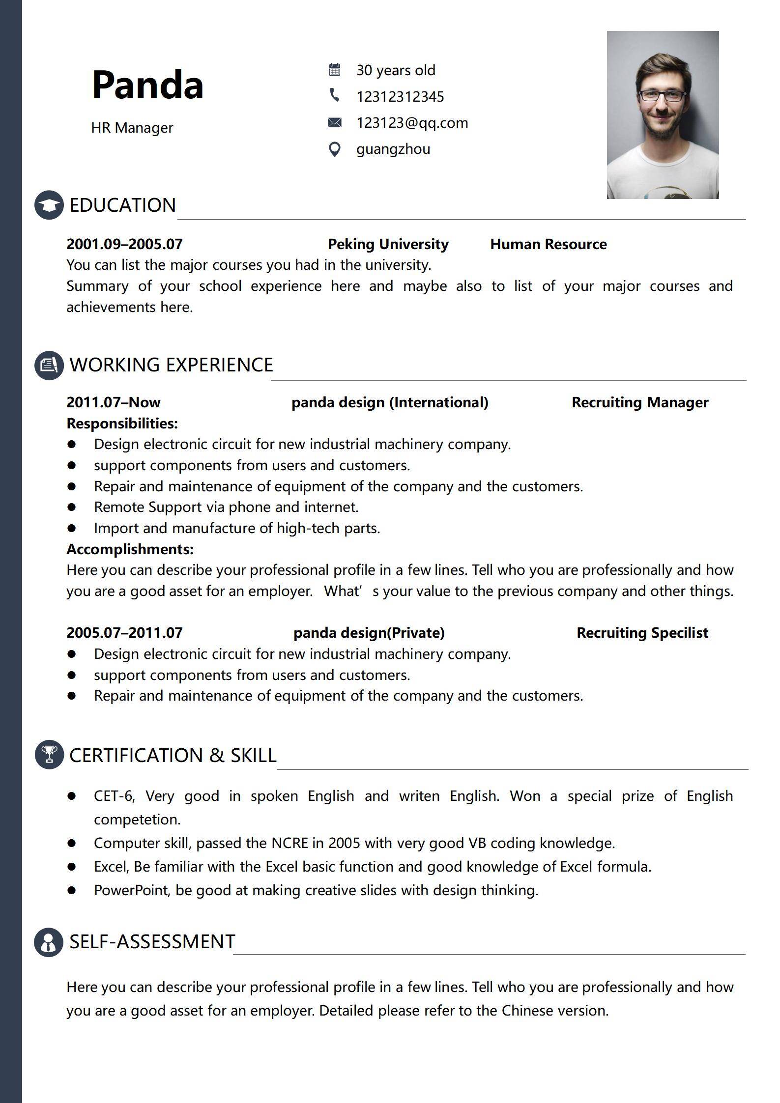于2026-01-29 11:06 下载了:左右分栏个人免费简历模板,并评价: