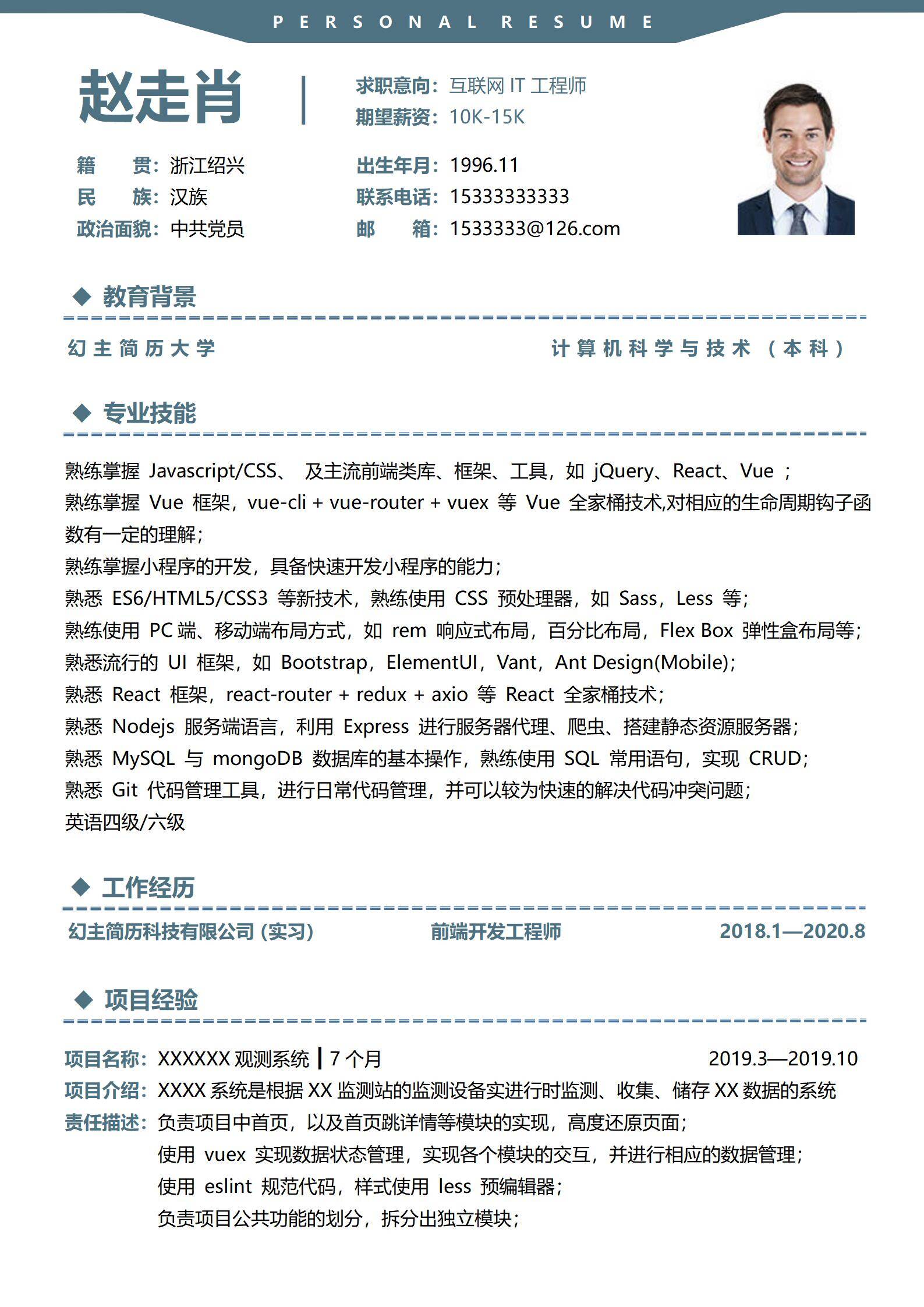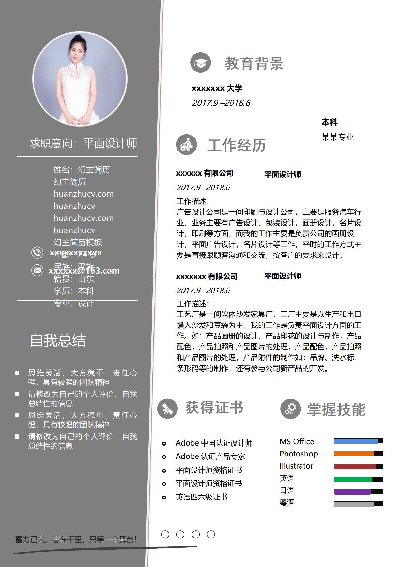 清新淡雅,简历很好