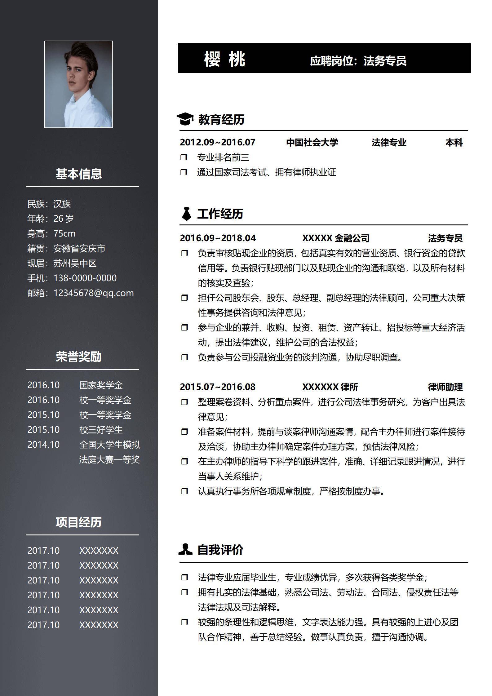 于2026-01-29 11:06 下载了:左右分栏个人免费简历模板,并评价: