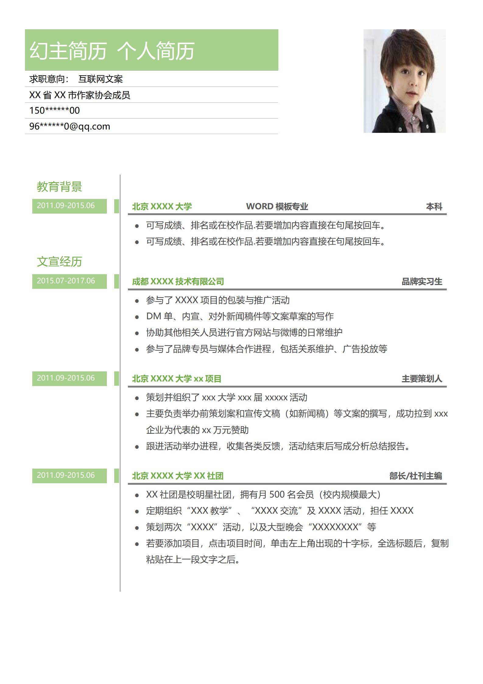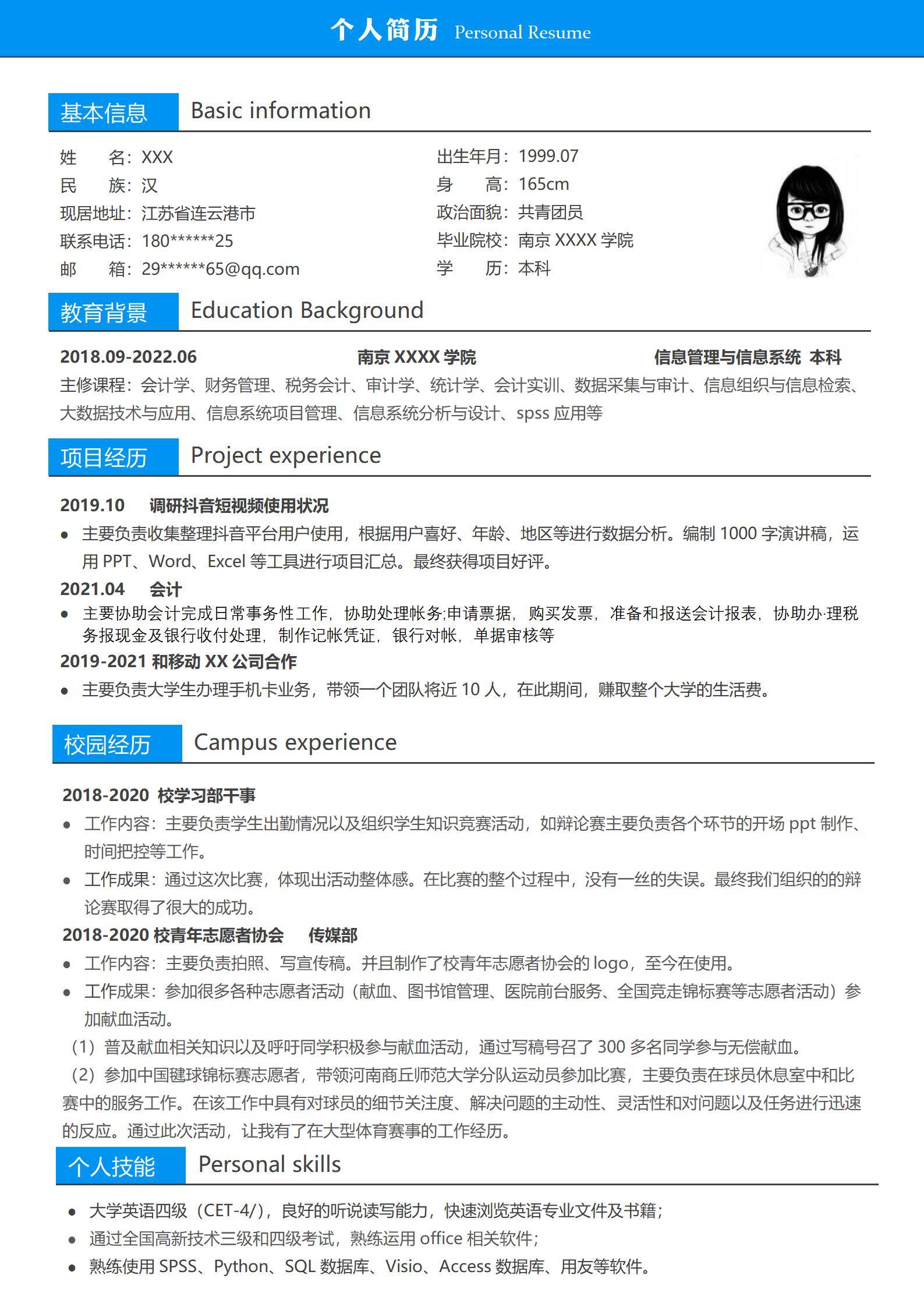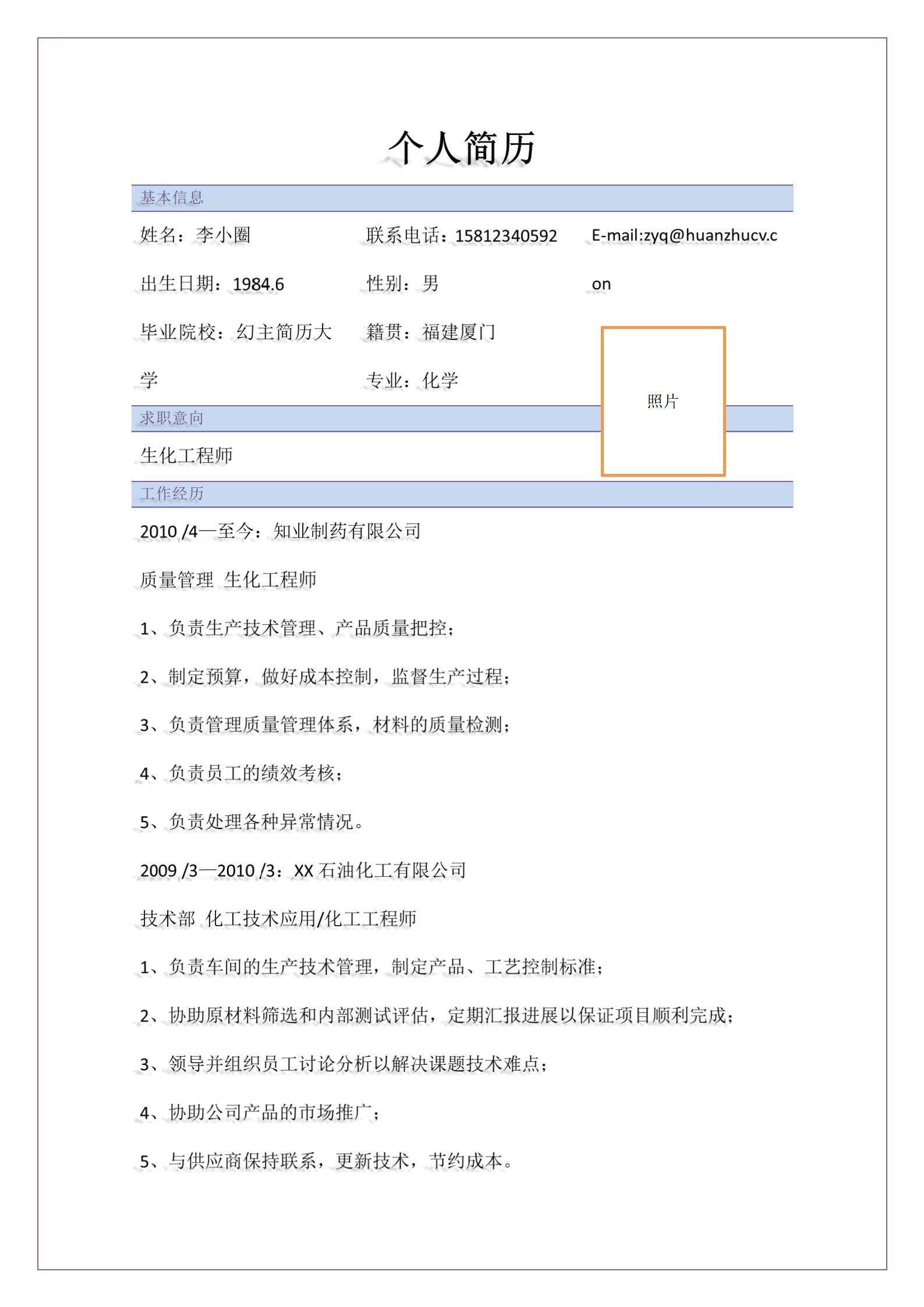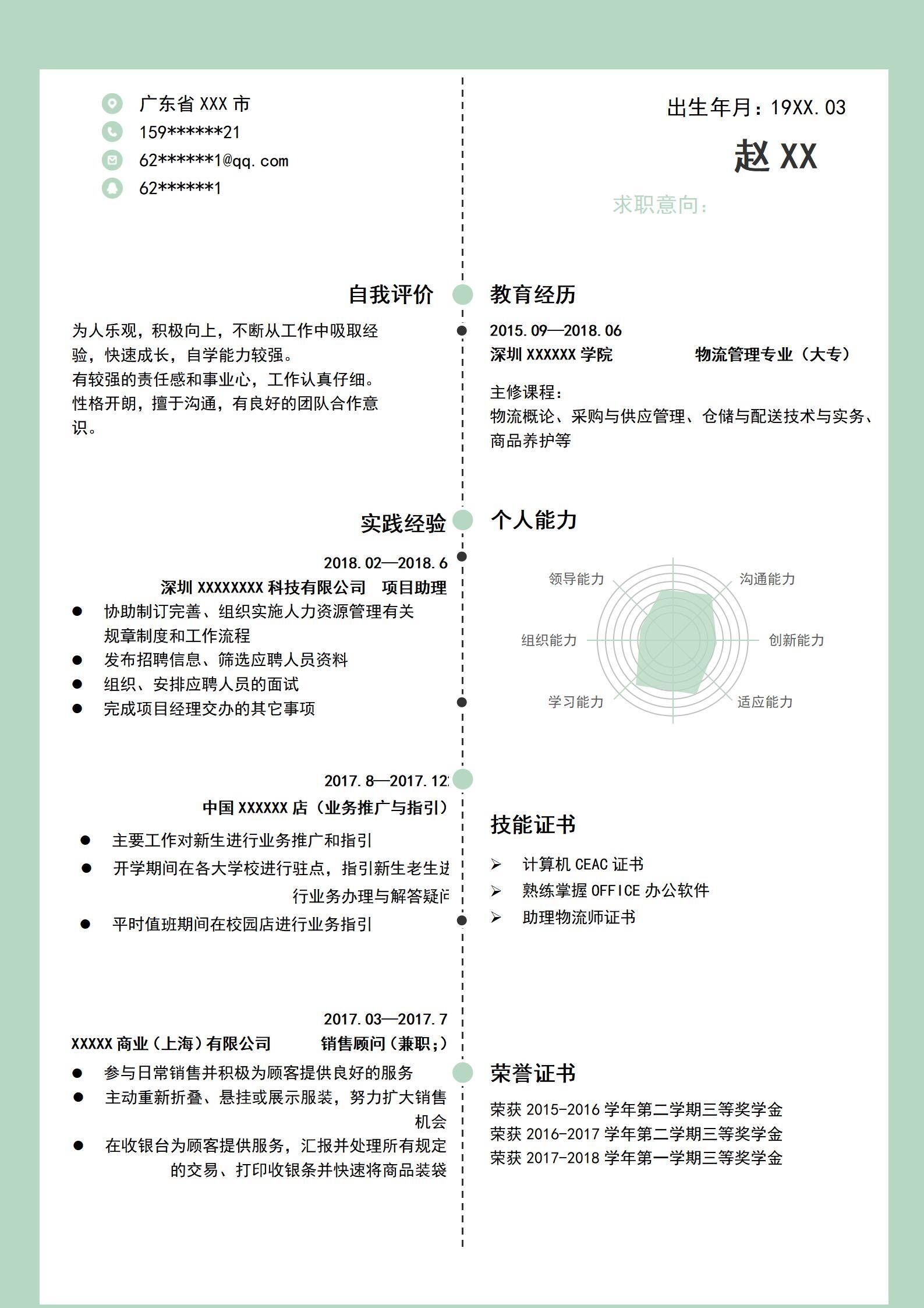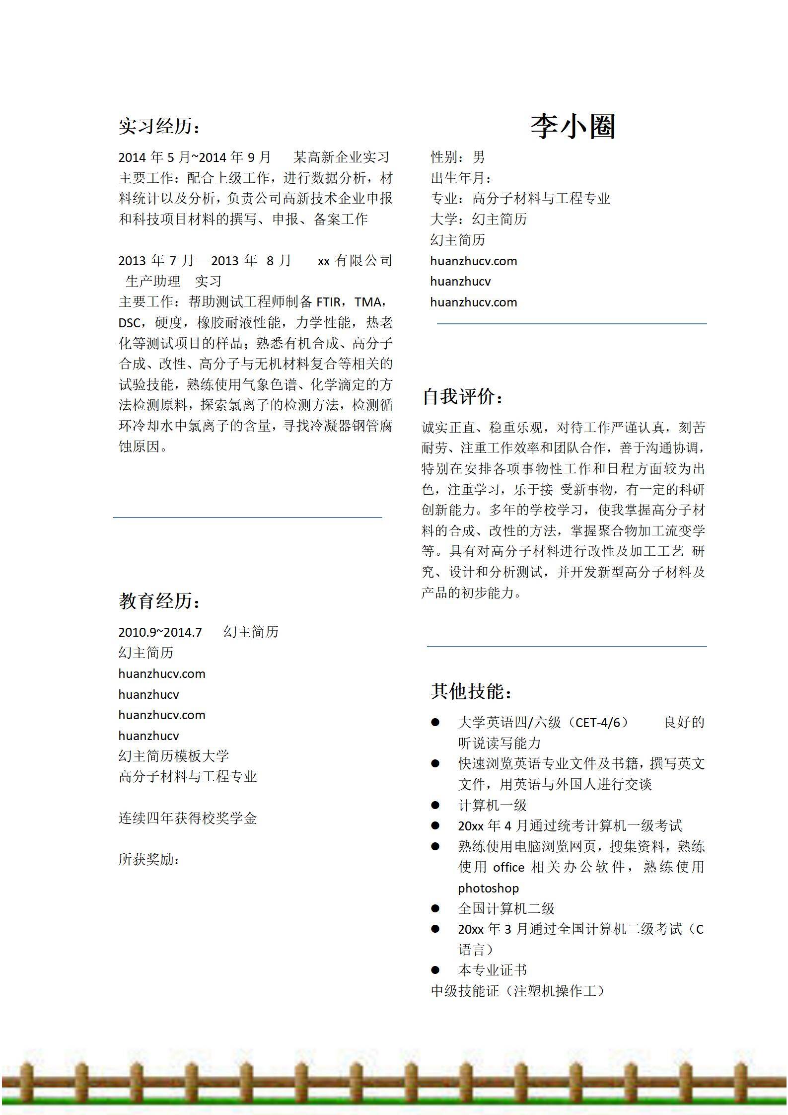 清新淡雅,简历很好