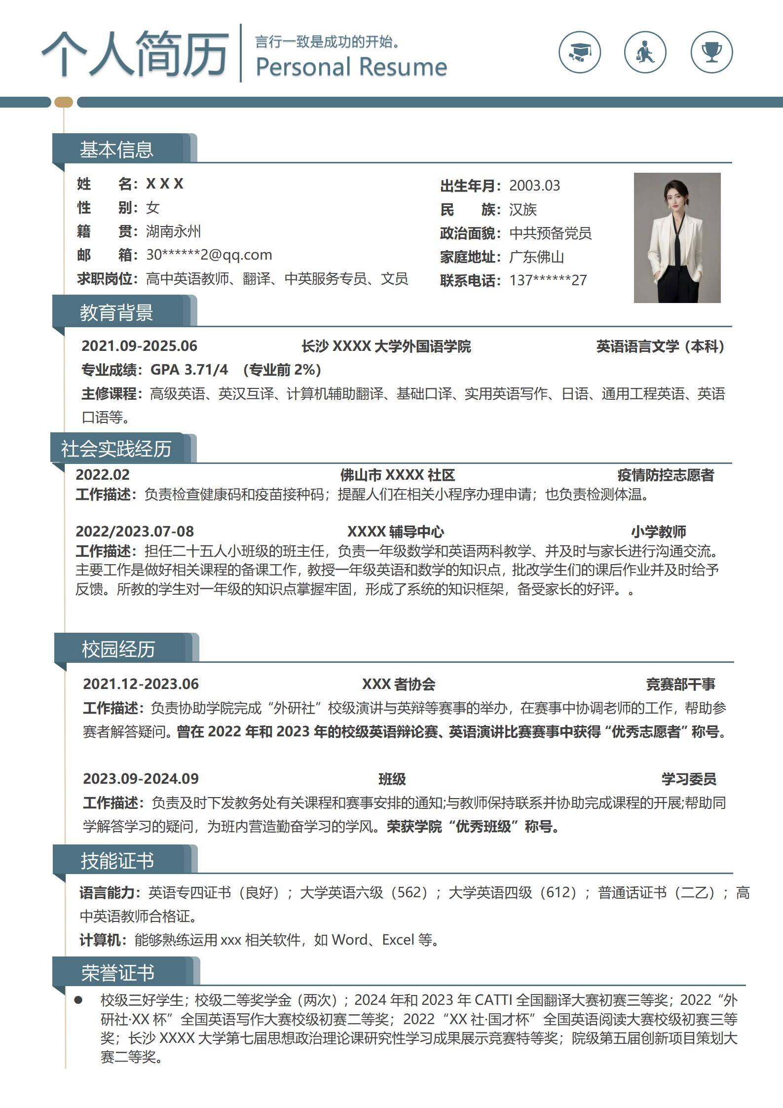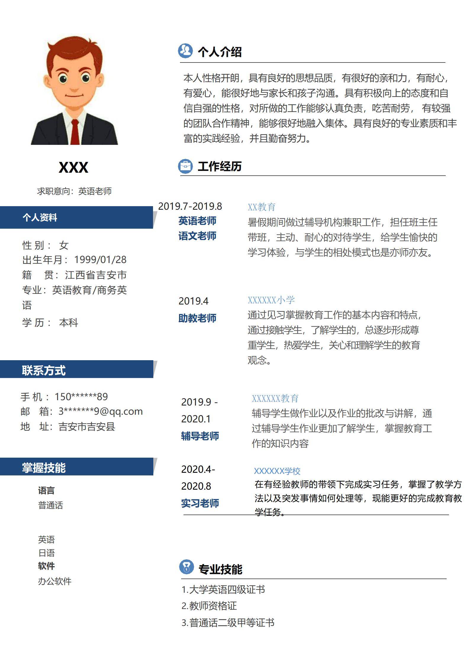 于2026-01-27 21:35 下载了:英语老师免费求职简历模板,并评价:
