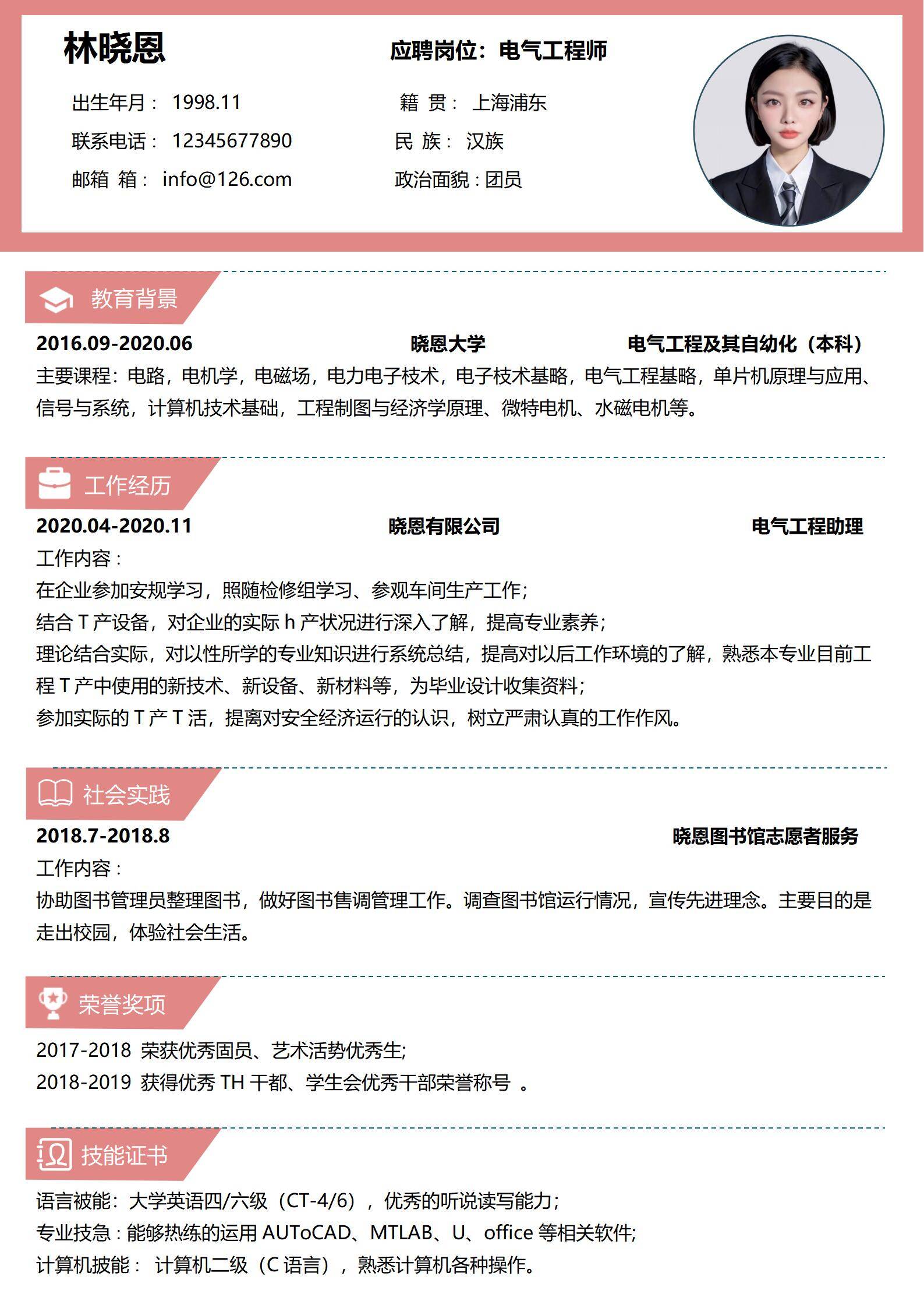 于2026-01-28 19:21 下载了:电气工程师实习免费简历模板,并评价: