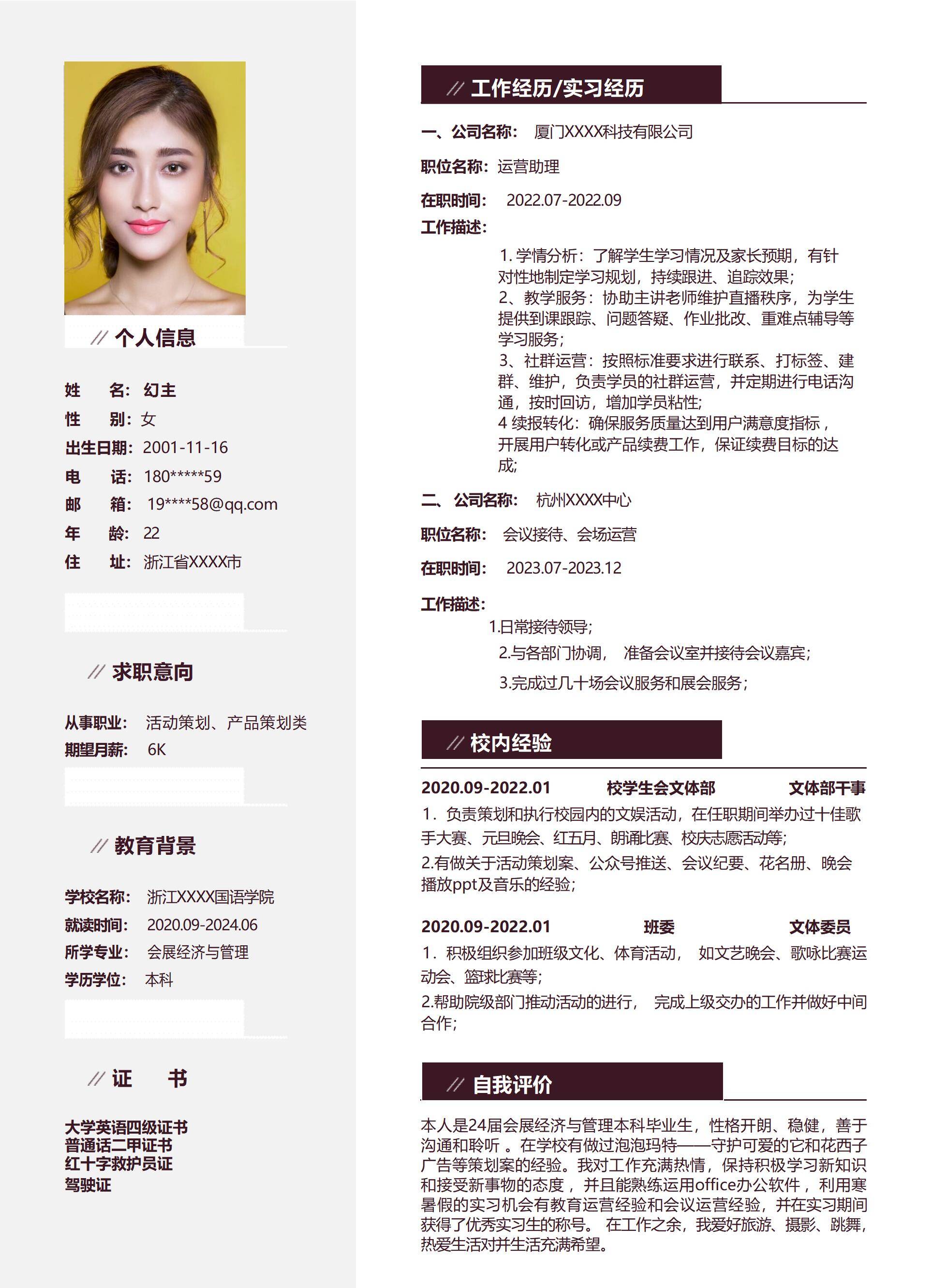 于2026-01-29 11:06 下载了:左右分栏个人免费简历模板,并评价: