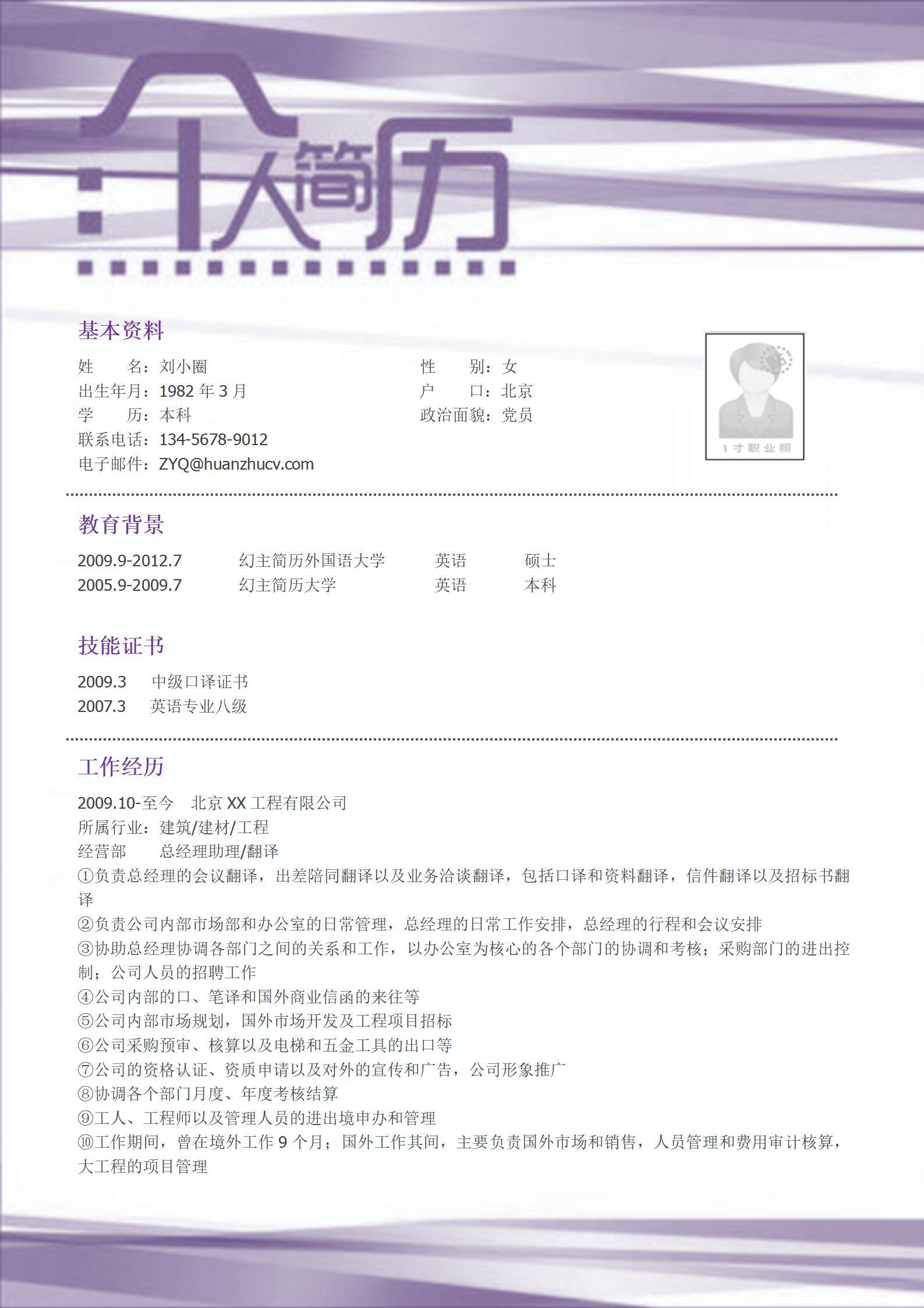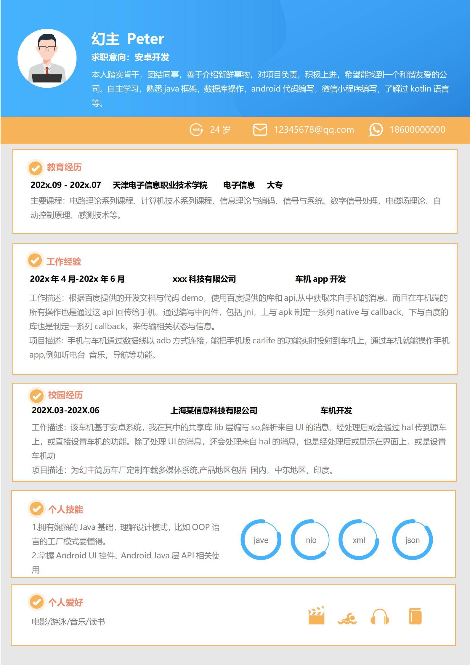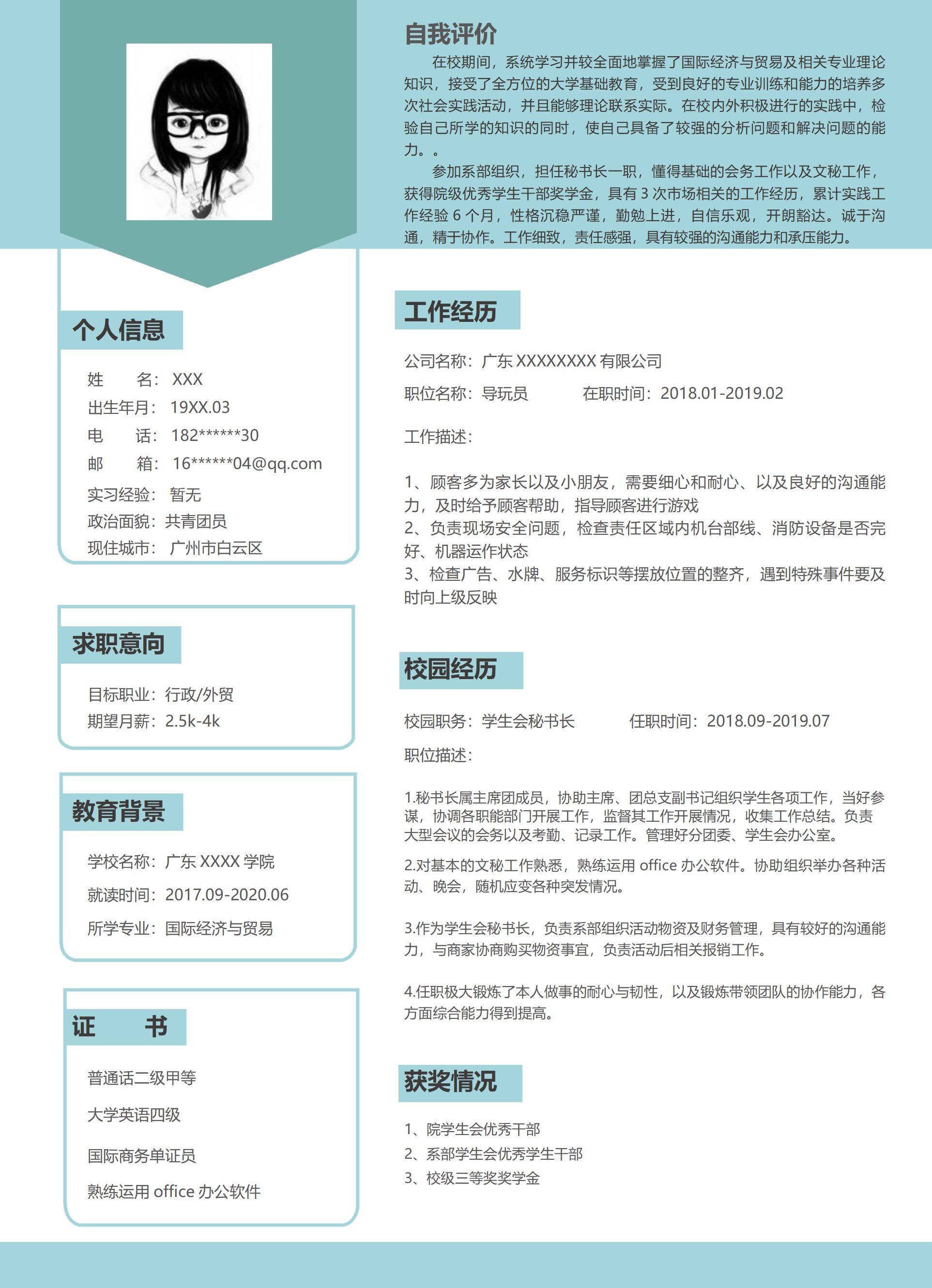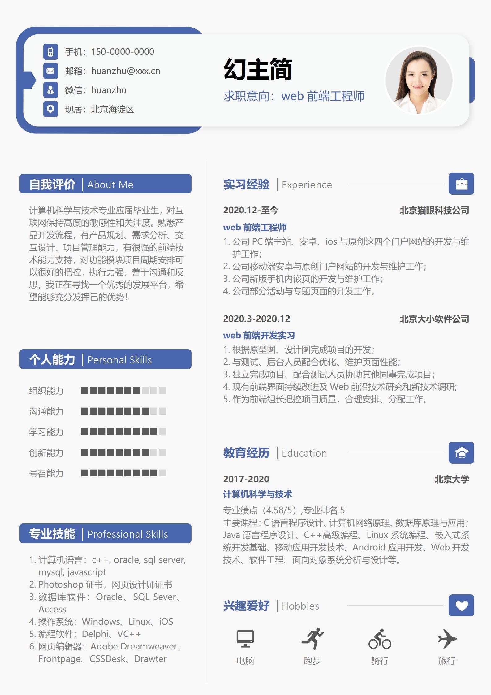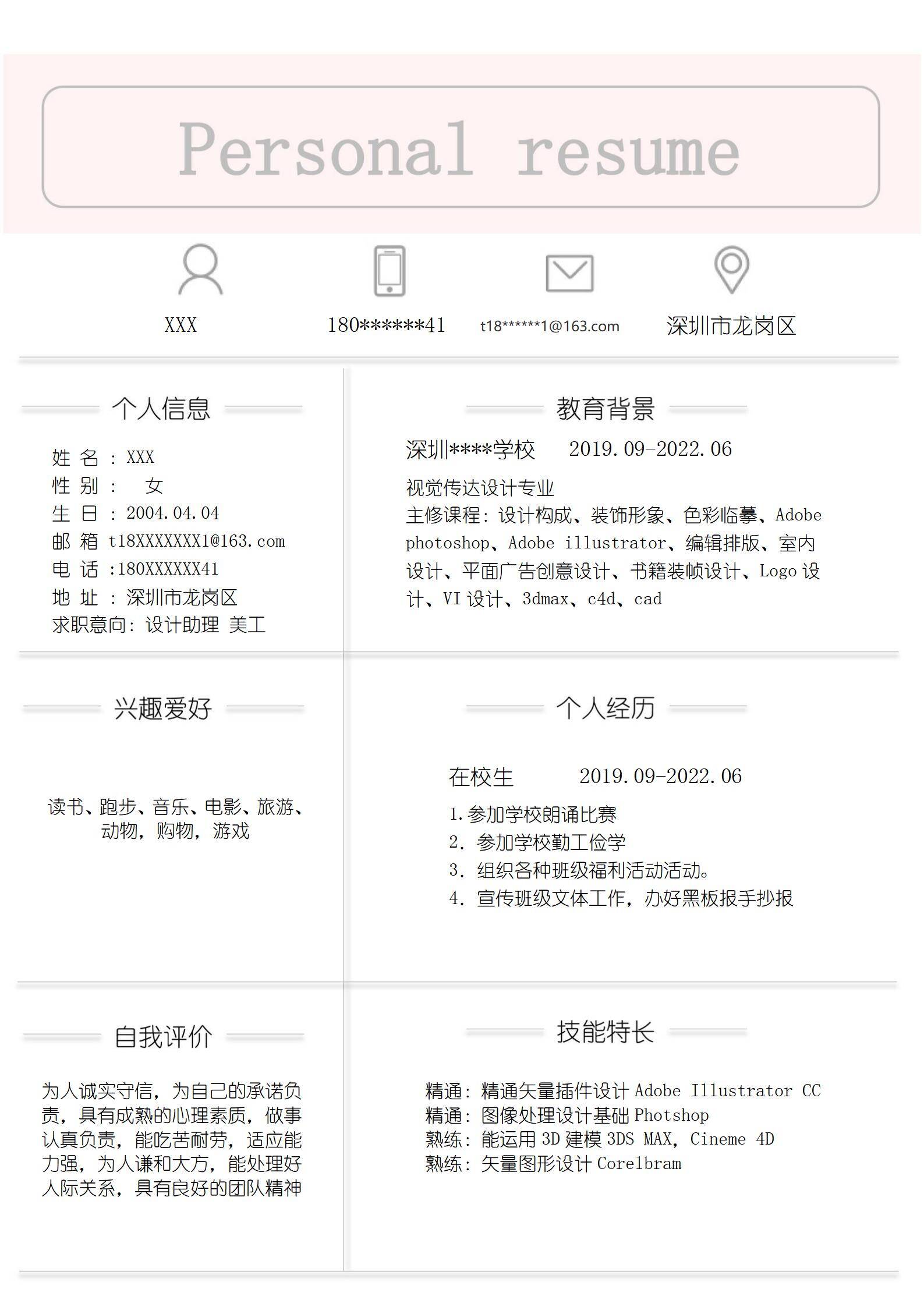 清新淡雅,简历很好