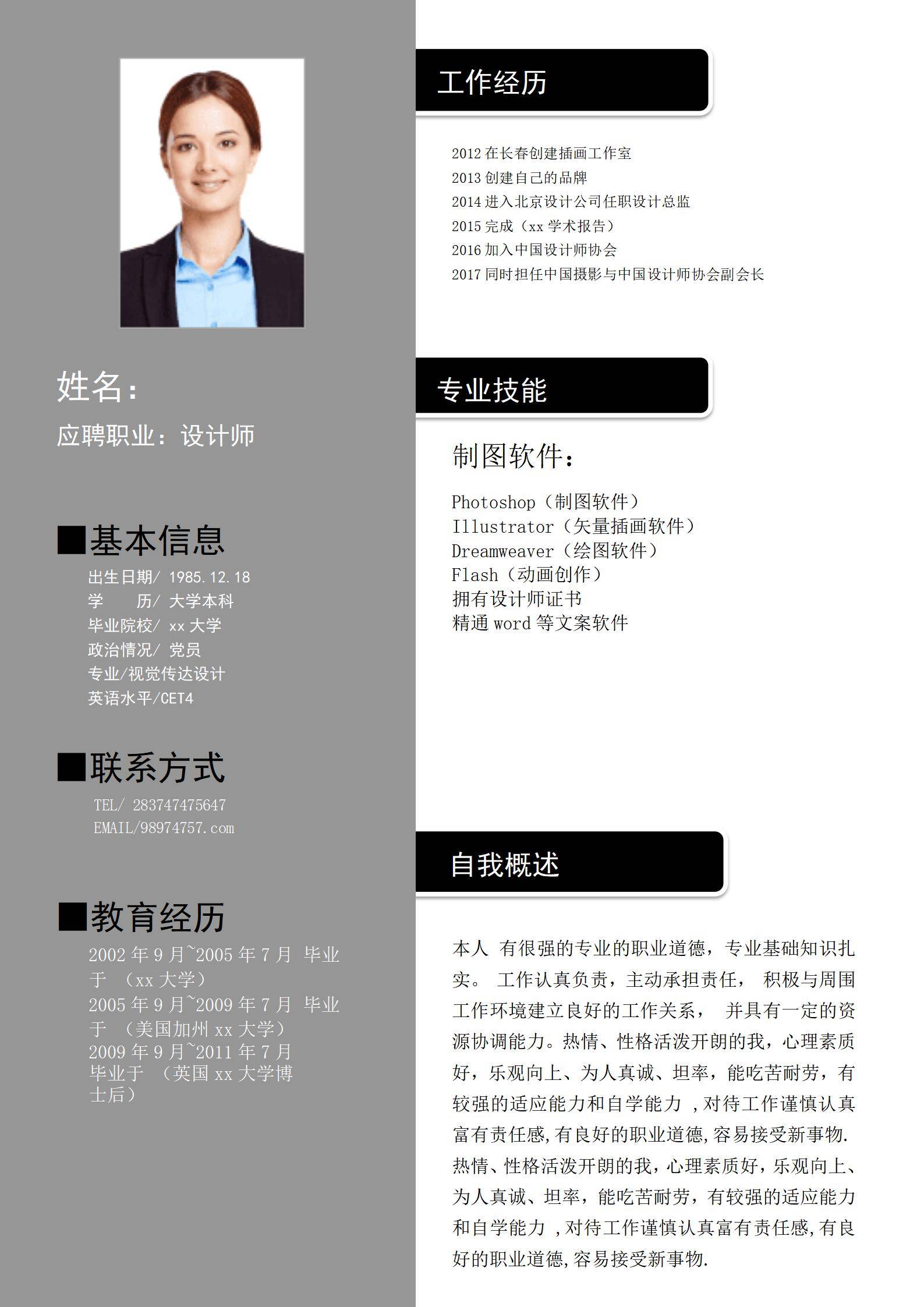 于2026-01-29 12:59 下载了:左右分栏个人免费简历模板,并评价: