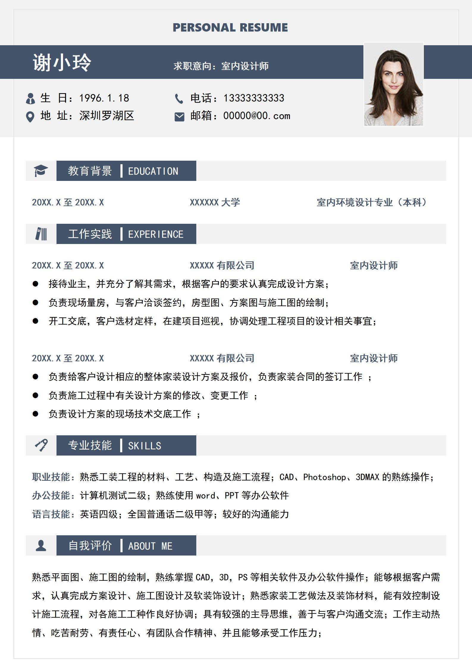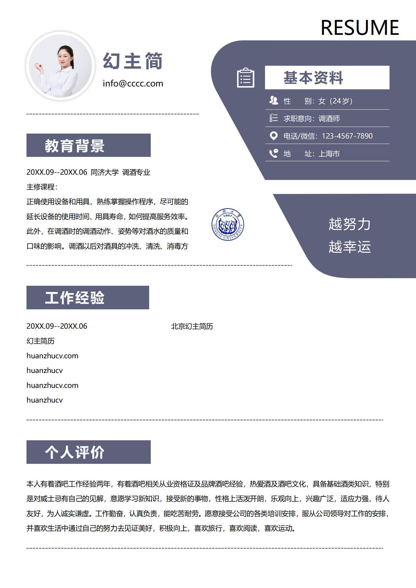 清新淡雅,简历很好