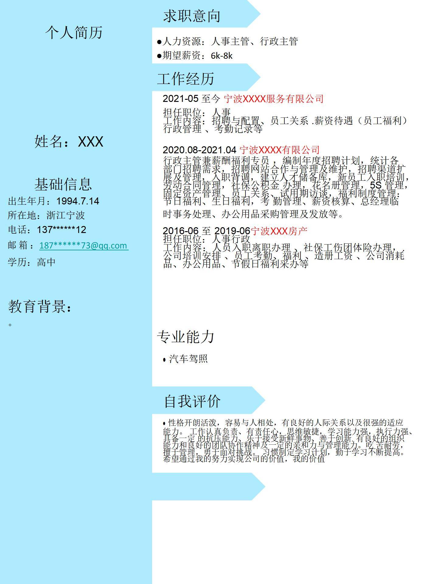 于2026-01-29 11:06 下载了:左右分栏个人免费简历模板,并评价: