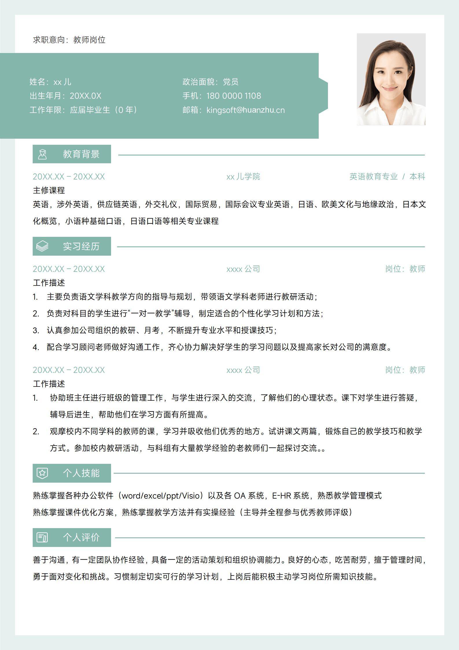 于2026-01-27 20:54 下载了:英语老师免费求职简历模板,并评价:
