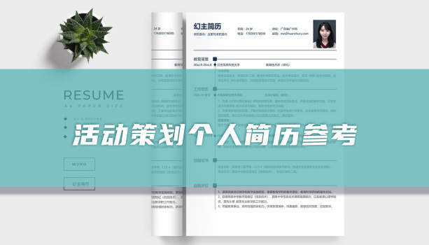 撰写一份令人印象深刻的简历并非易事,如何在简历中凸显个人在市场上的竞争优势?以下是小编整理的一篇活动策划个人简历参考,同时,幻主简历网还提供精美简历模...