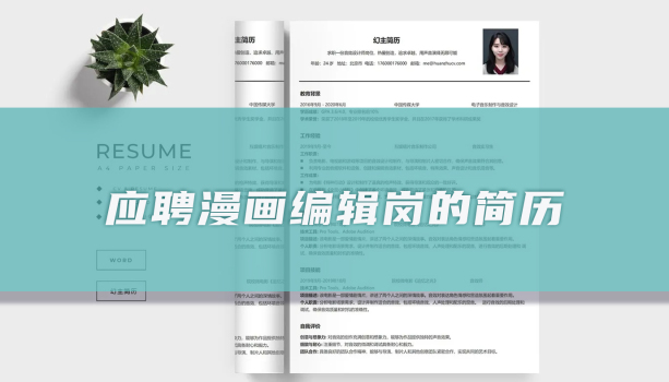 漫画编辑岗简历一句话介绍自己:我是一名热爱漫画、具备丰富编辑经验和出色沟通能力的专业人士,致力于推动漫画行业的发展,为作者和读者搭建交流的桥梁。求职意向...