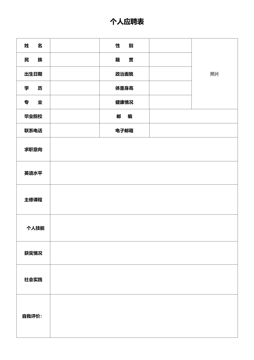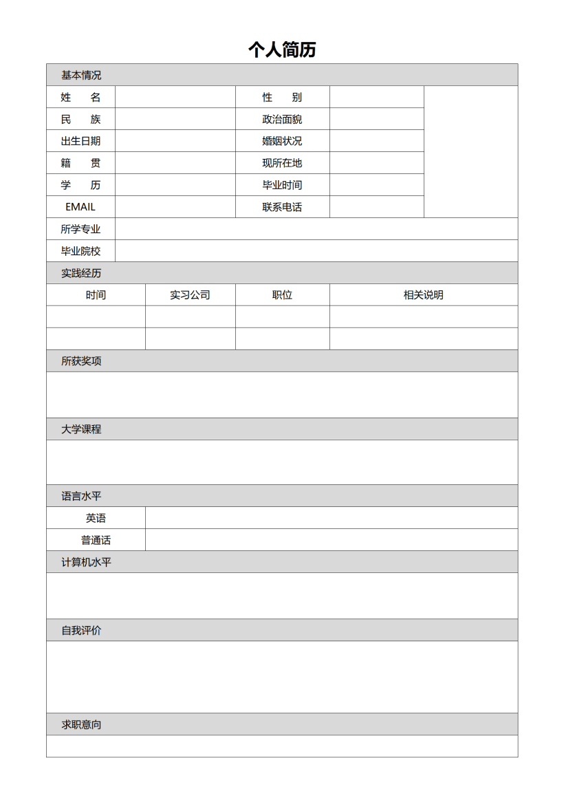 个人简历空白模板