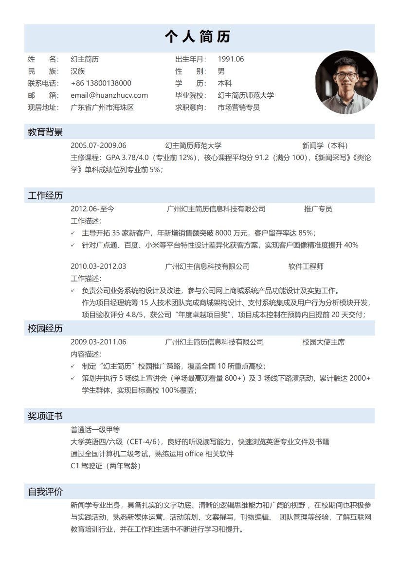 用得比较多精品简历模板