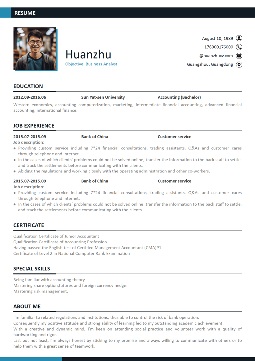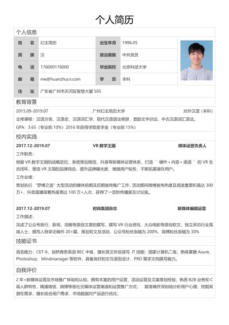 标准英文简历范例模板