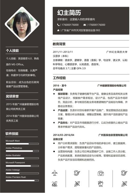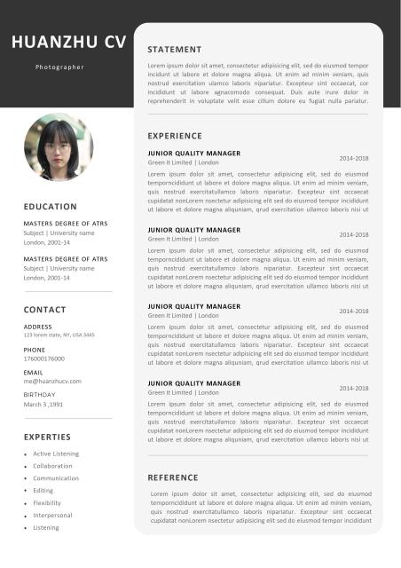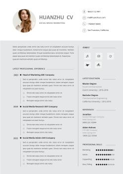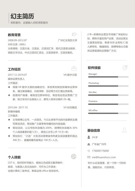 灰黑商务英文word简历模板