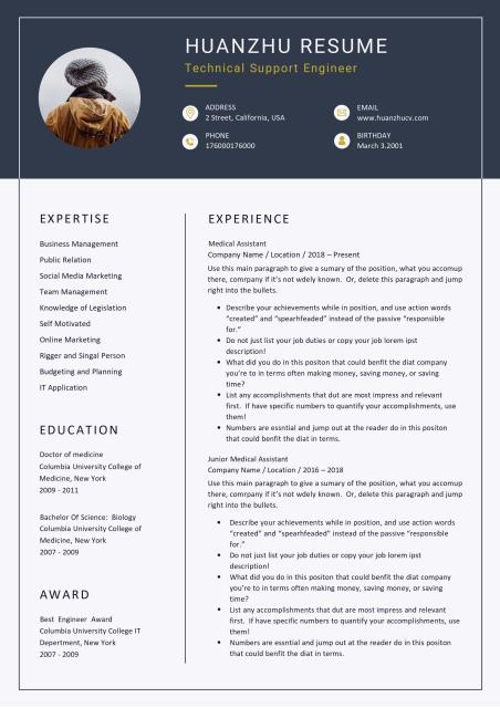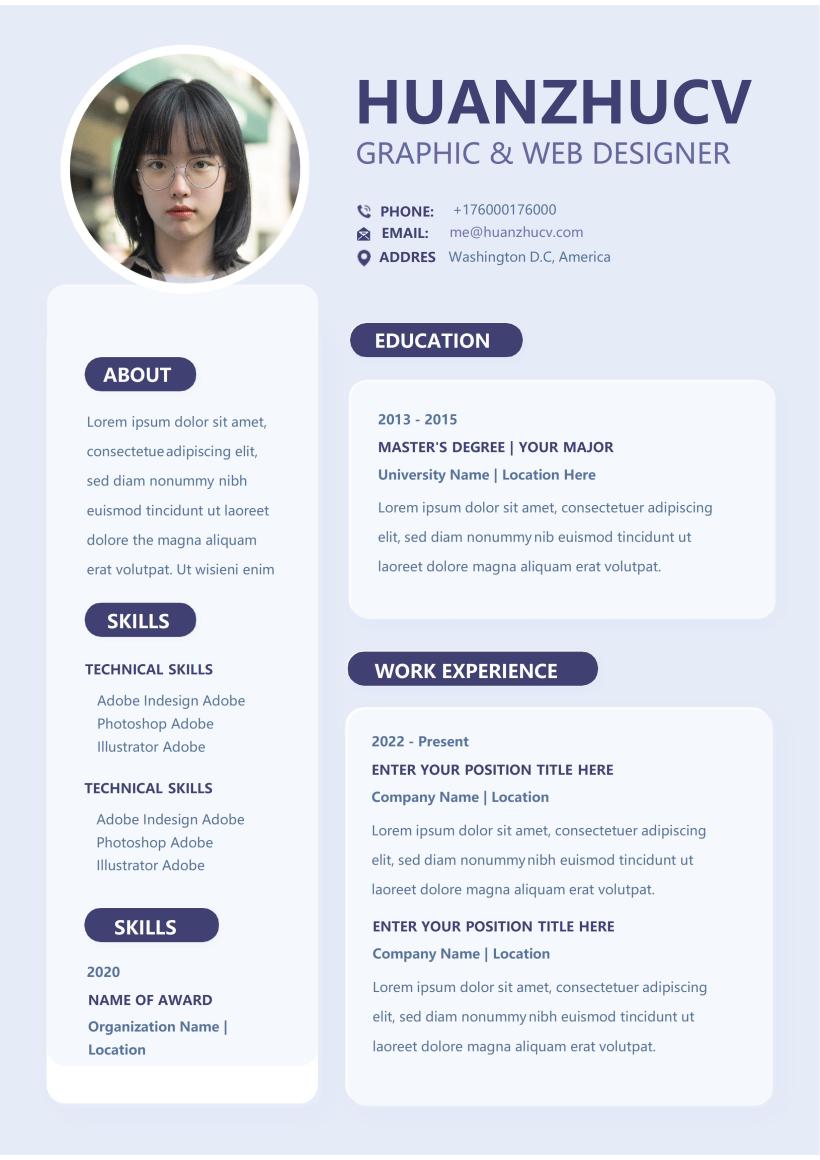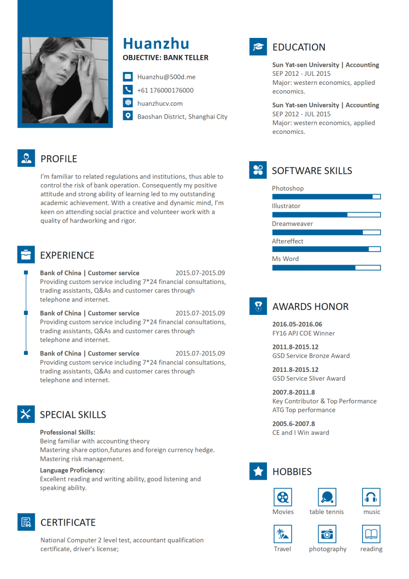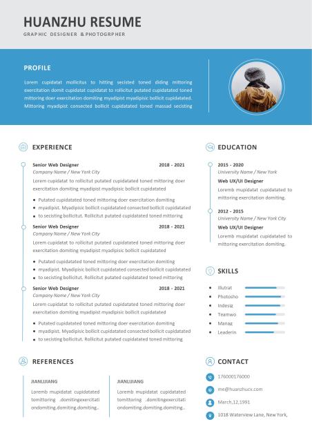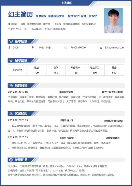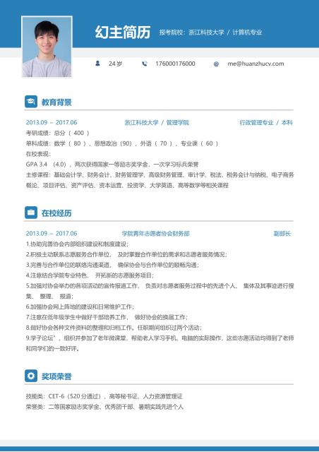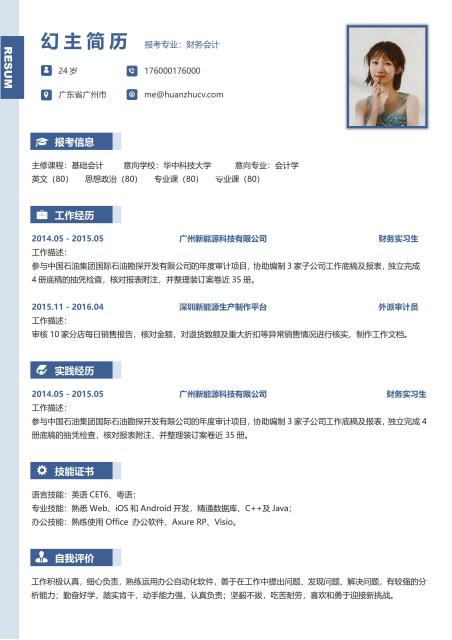 蓝灰经典实用英文word简历