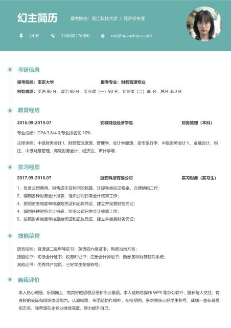 双栏女生英文简历模板