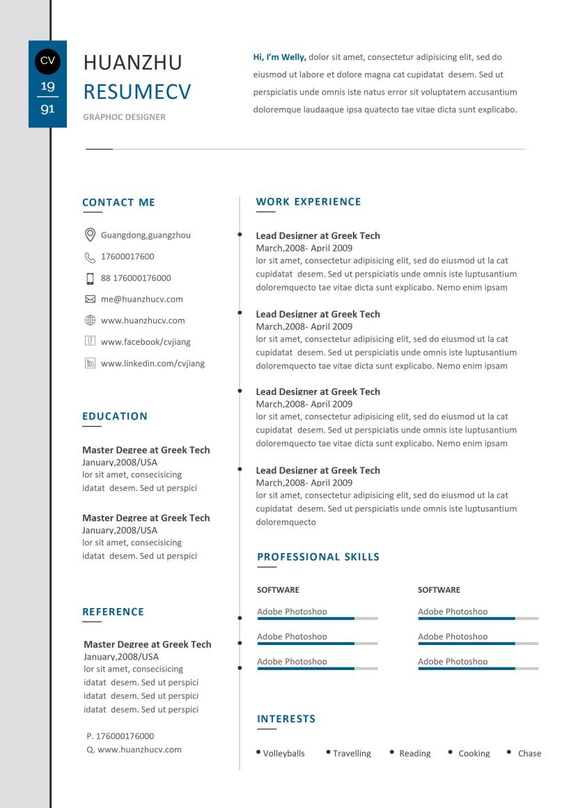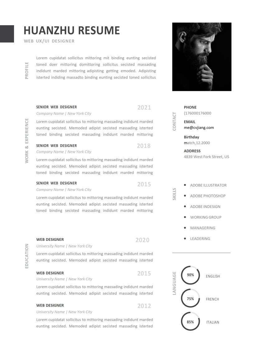 精美英文简历CV模板
