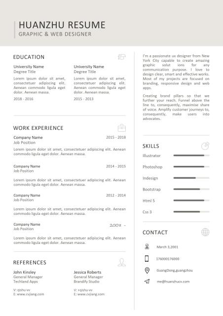 灰色背景简约英文求职简历