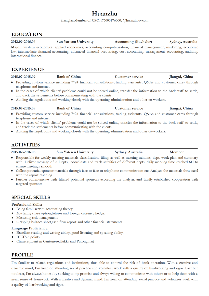 审计英文简历模板word格式