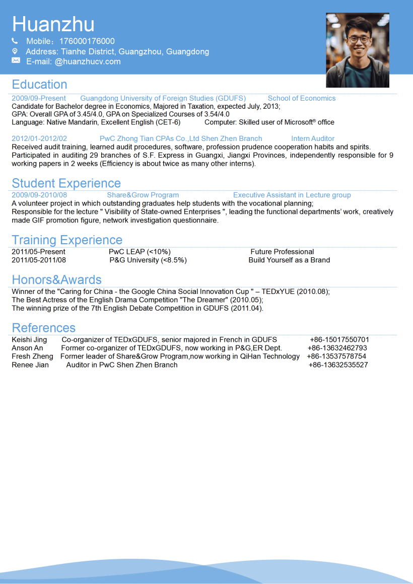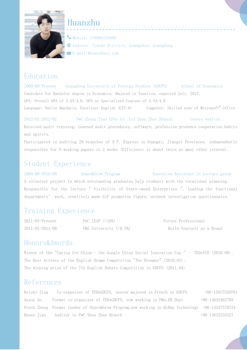 宝洁英文简历模板