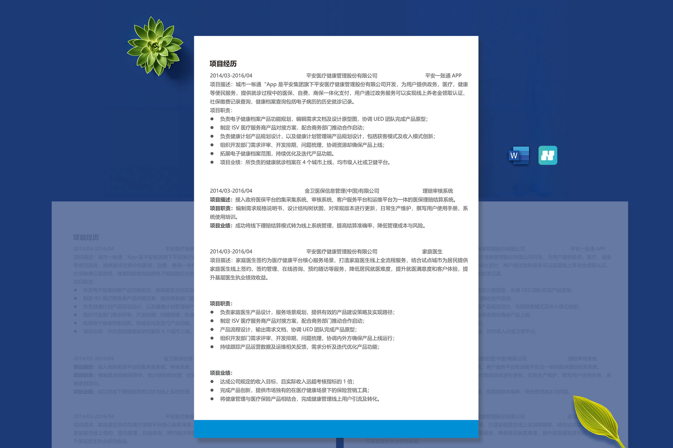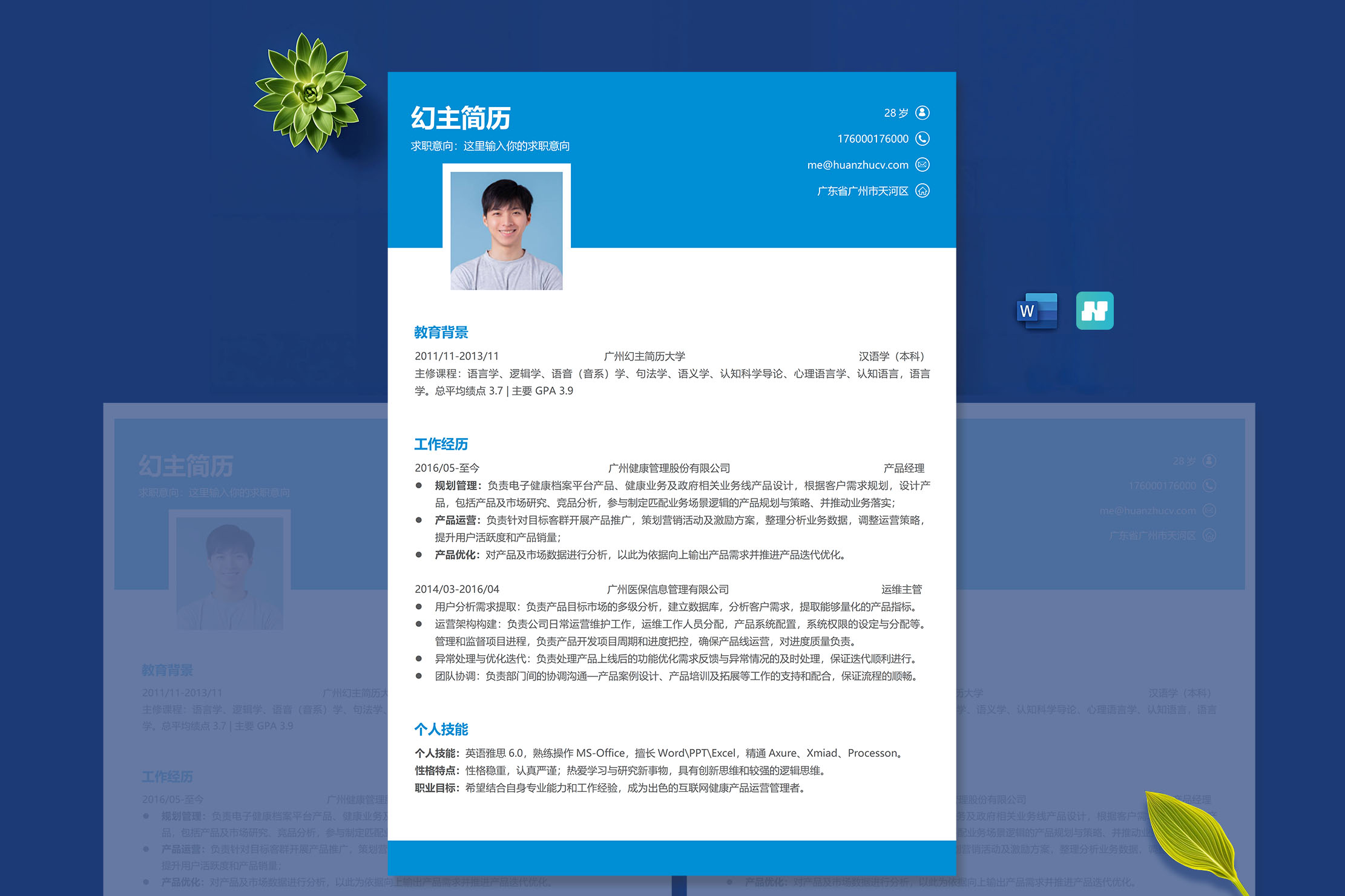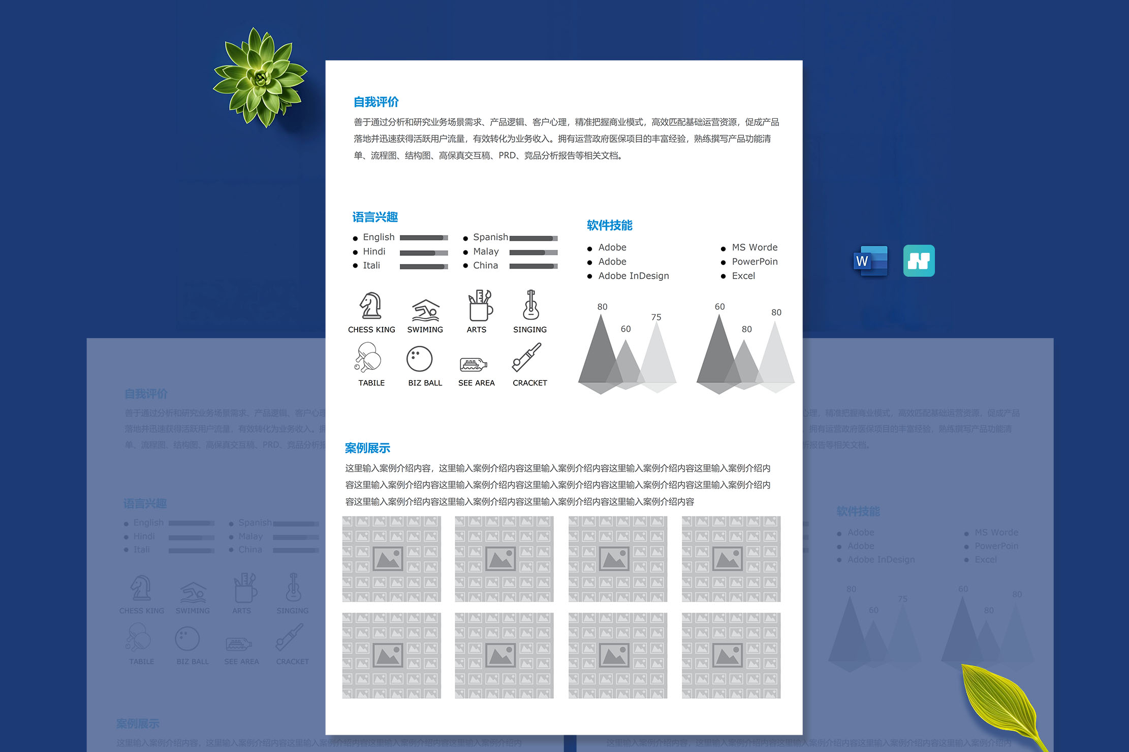 蓝白多页求职简历模板