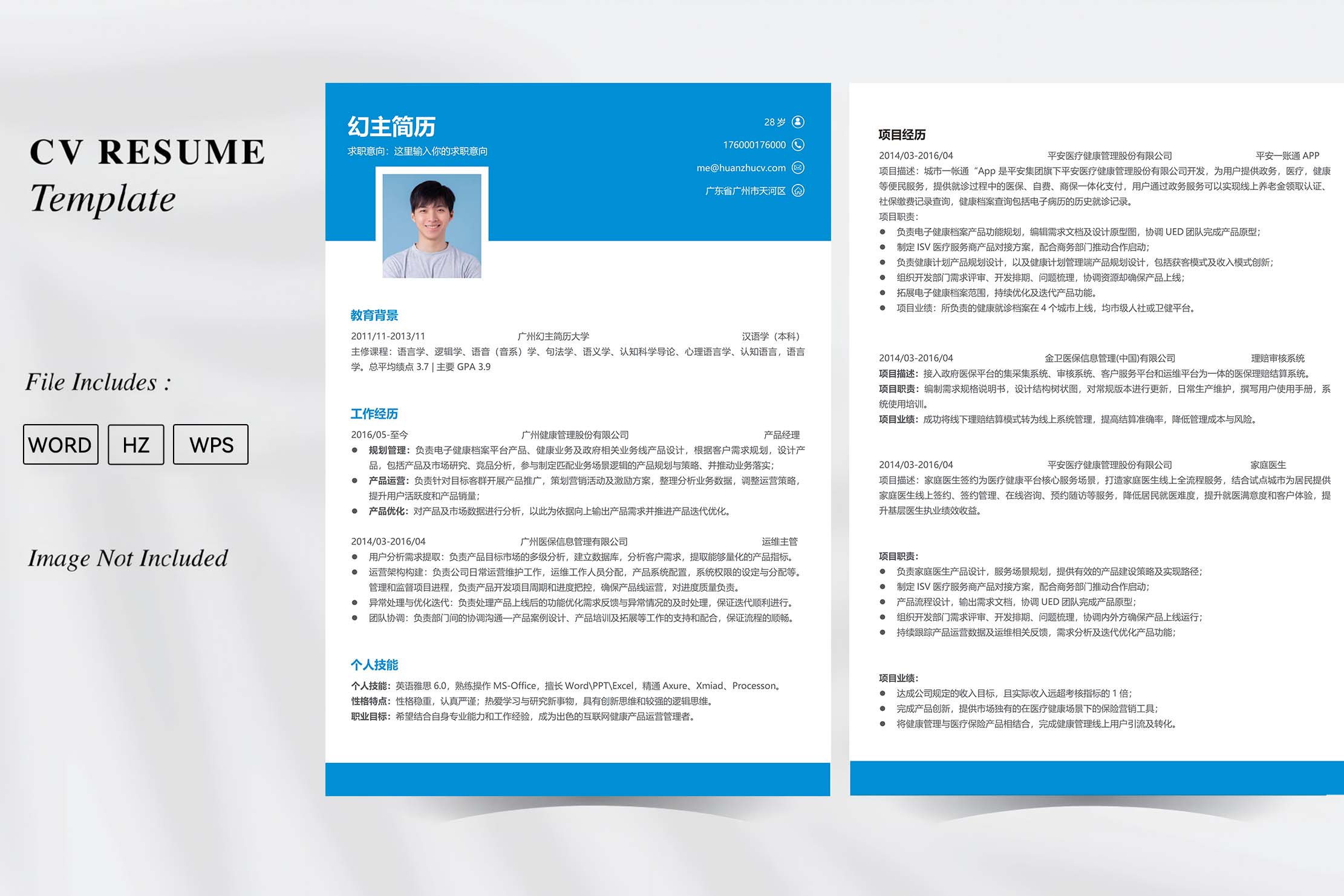 名称:蓝白多页求职简历模板