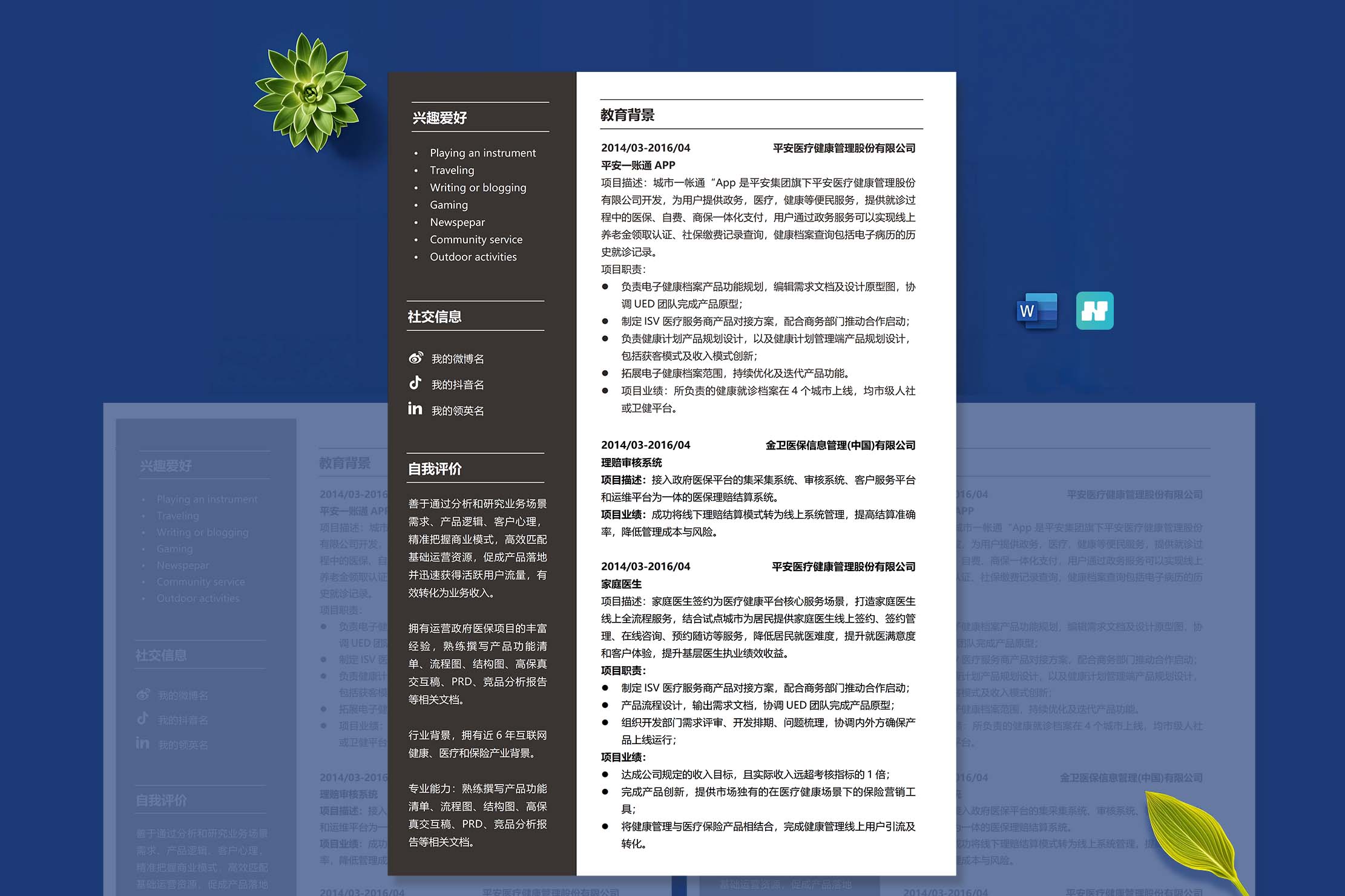 专业UI、名企HR、word设计师共同打造简历设计,采用合理的视觉元素设计,优化了空间利用率,