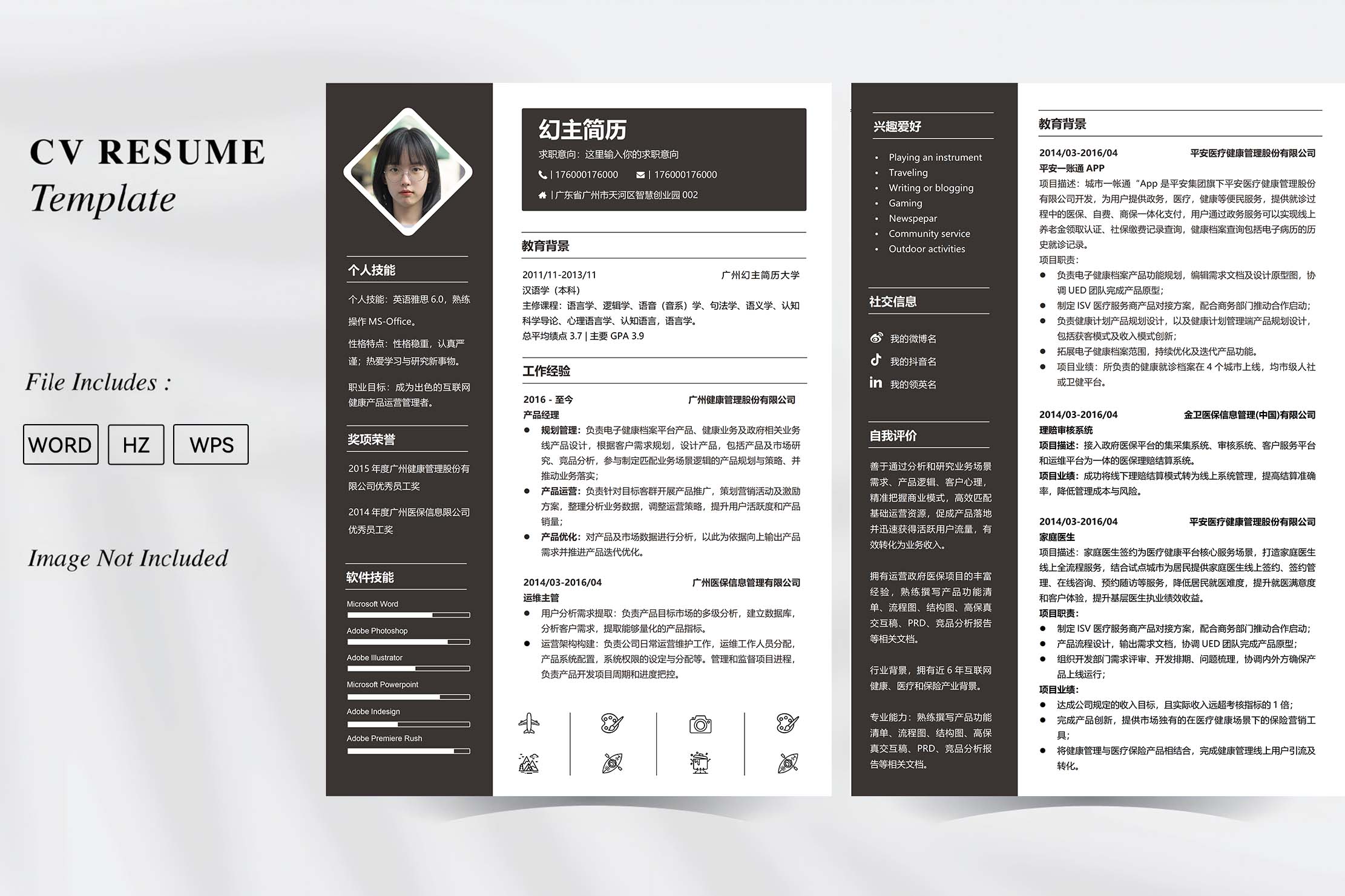 名称:黑色双栏多页求职简历模板