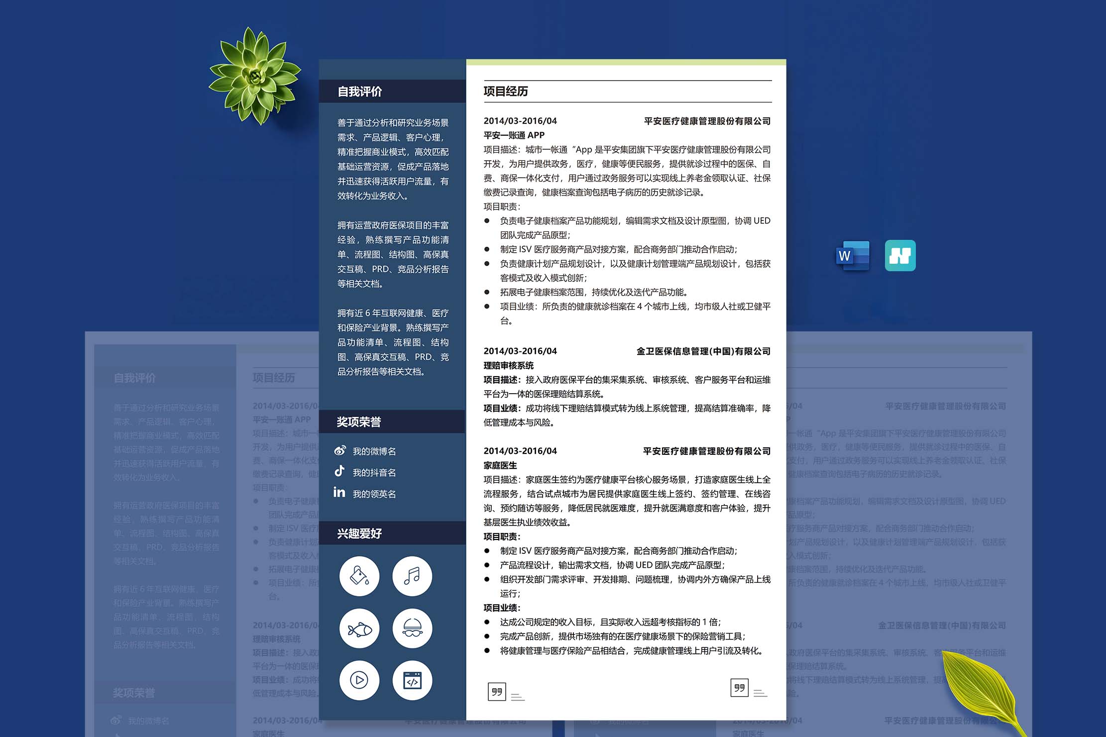 专业UI、名企HR、word设计师共同打造简历设计,采用合理的视觉元素设计,优化了空间利用率,