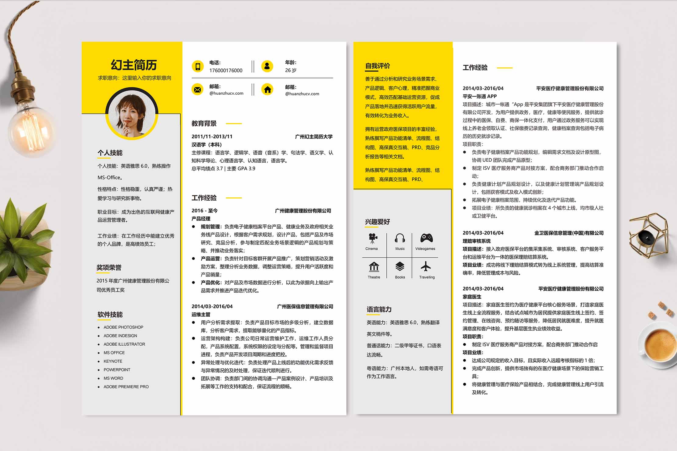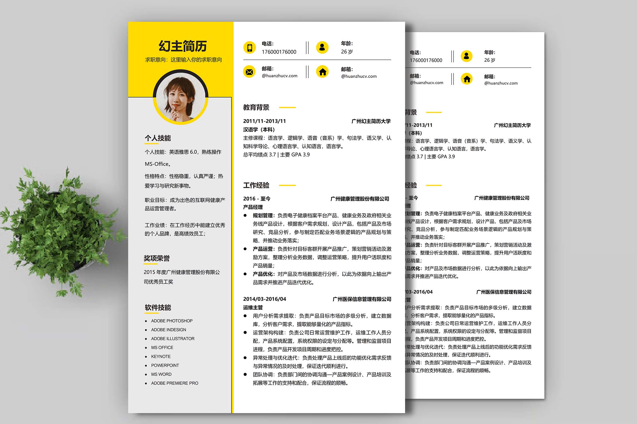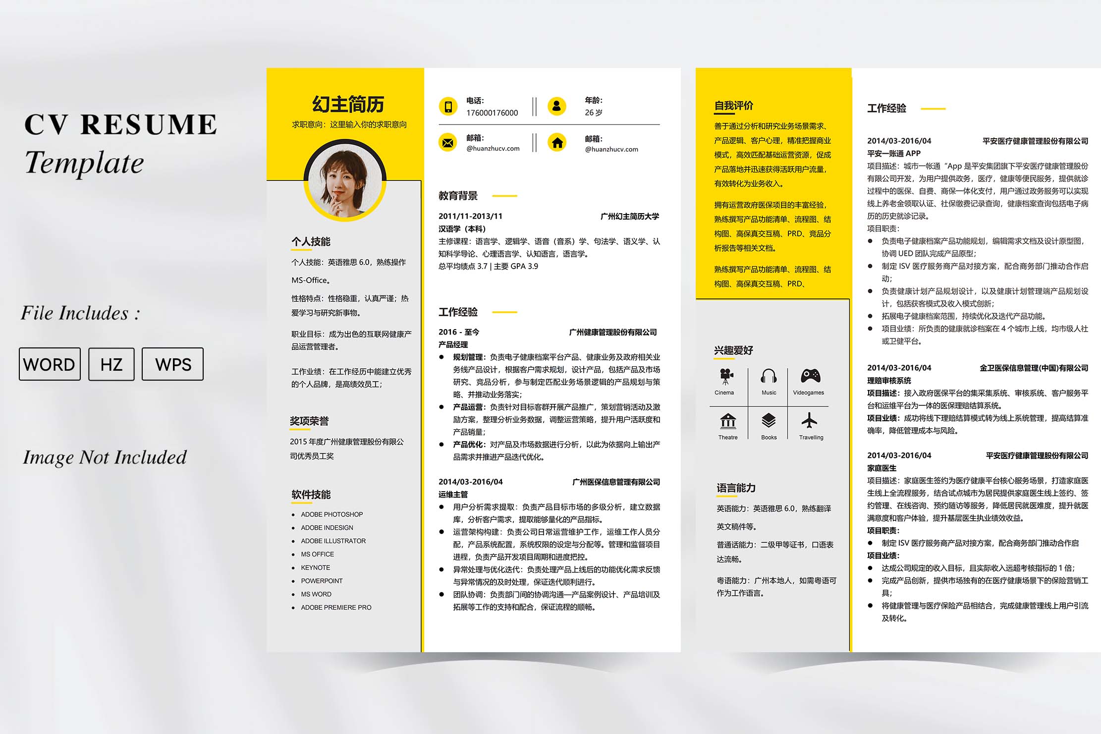 名称:双栏黄灰多页简历模板