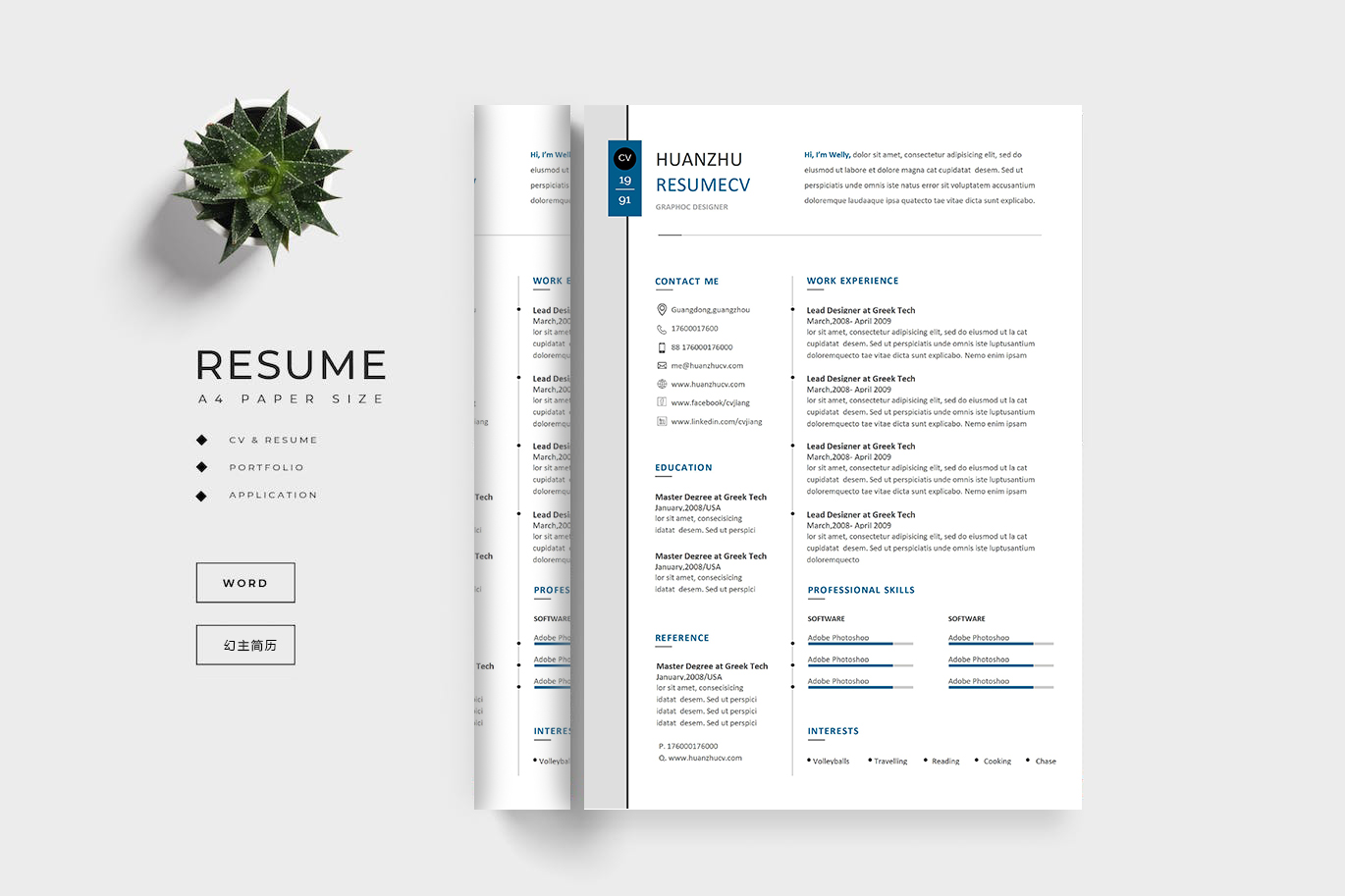 专业UI、名企HR、word设计师共同打造简历设计,采用合理的视觉元素设计,优化了空间利用率,