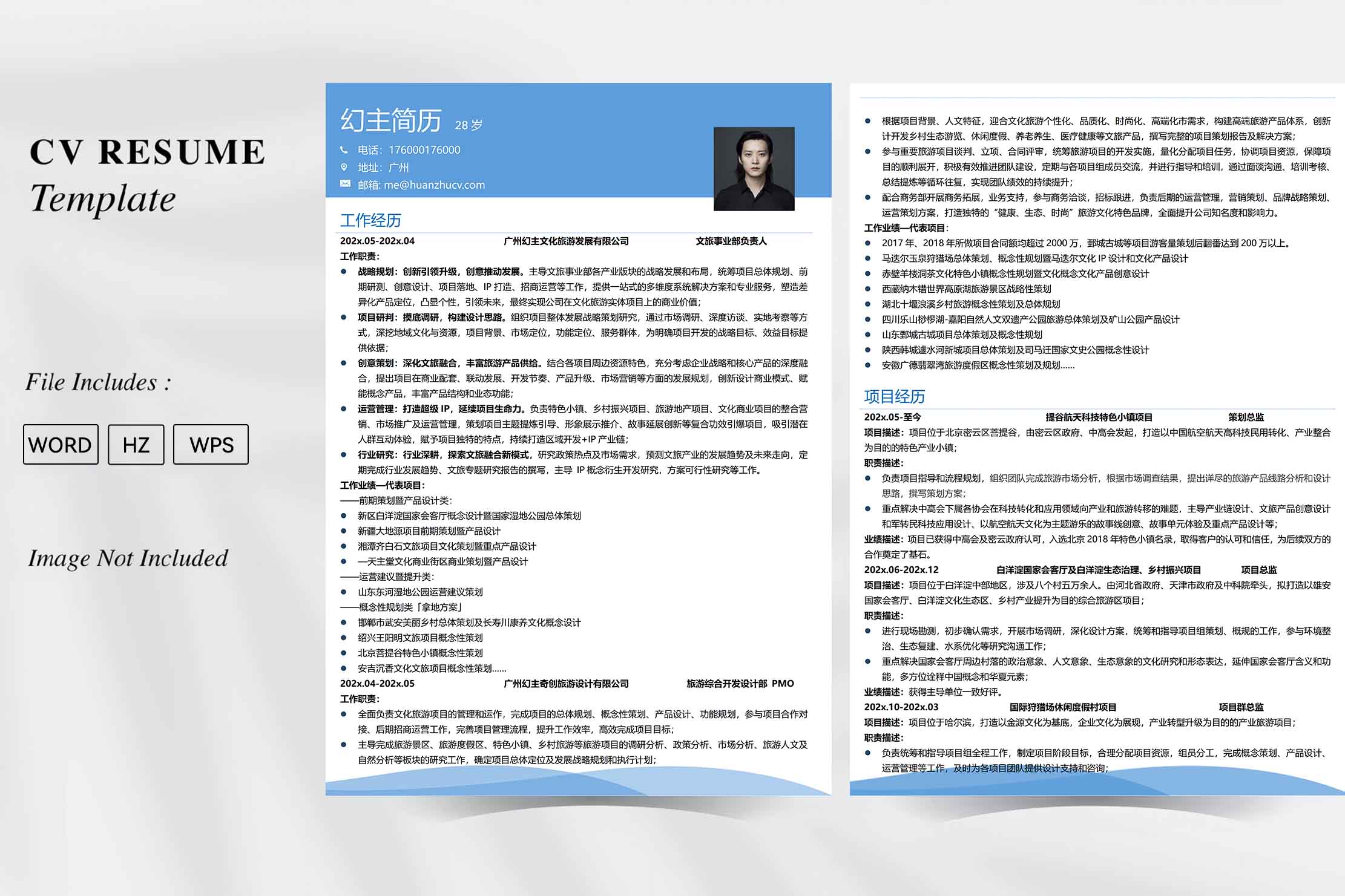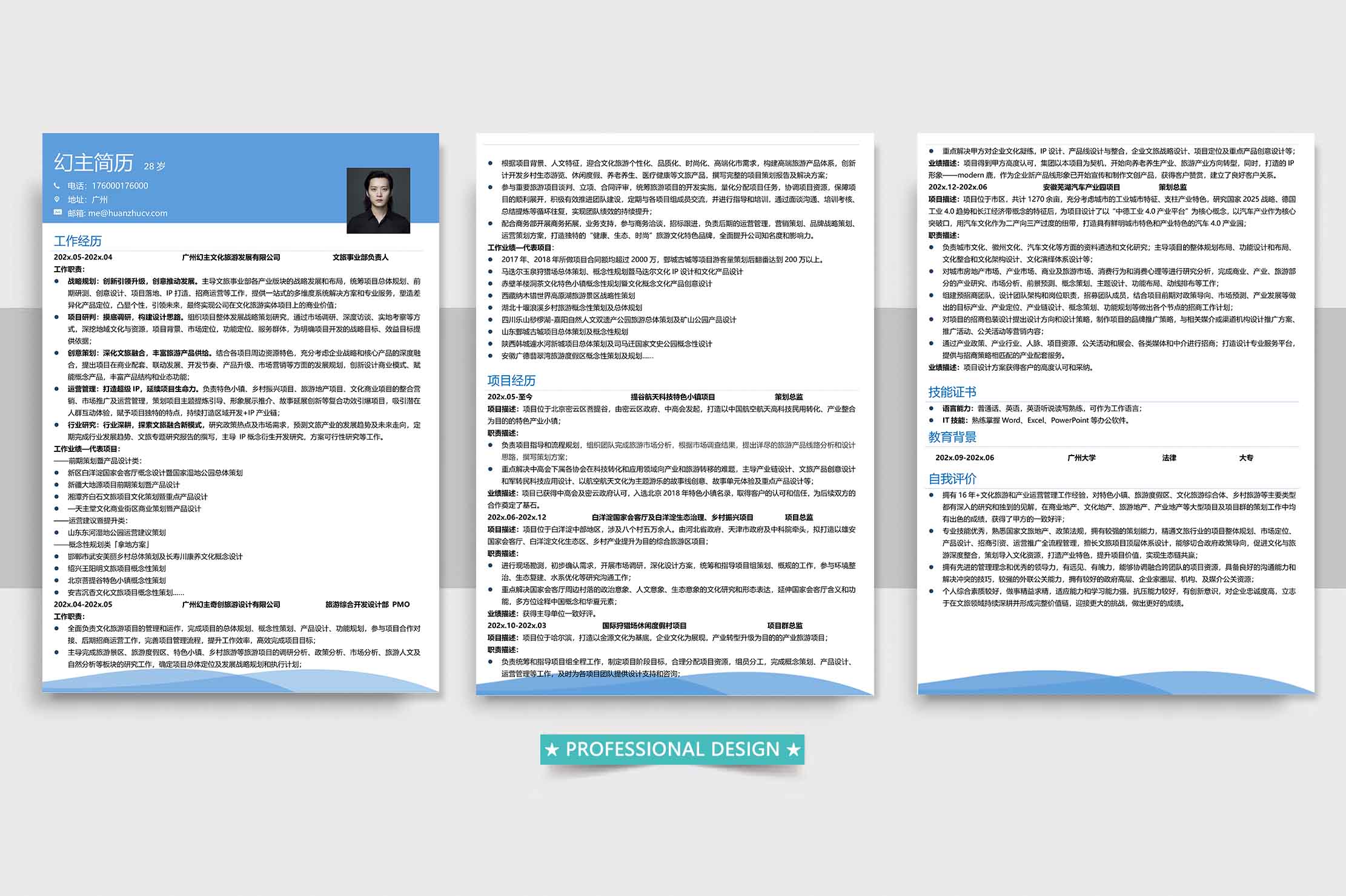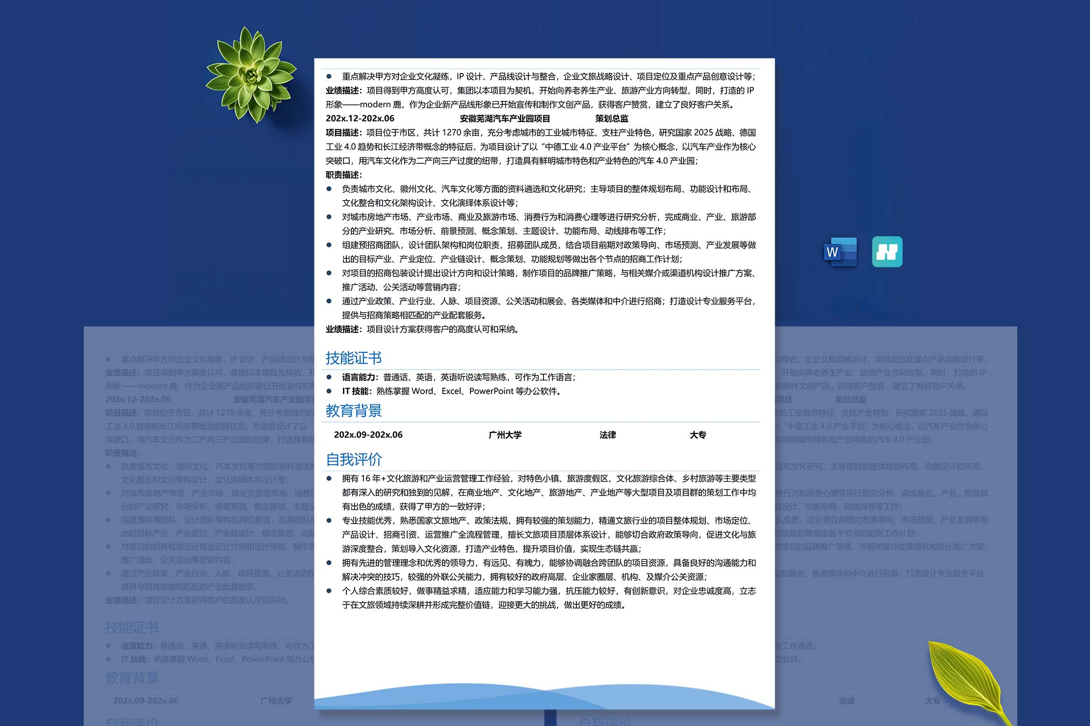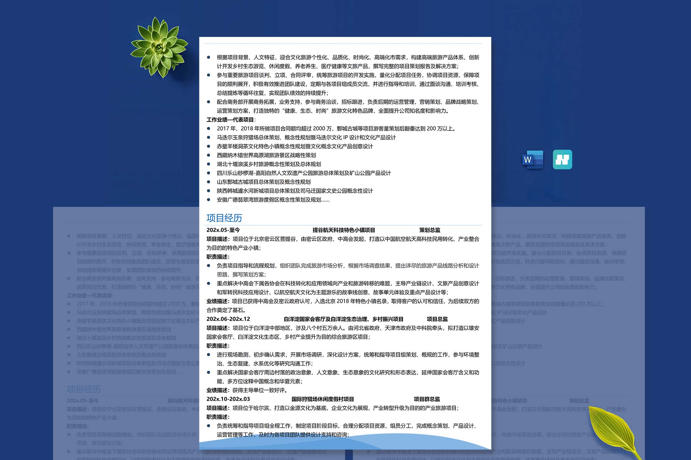 名称:多工作经验多页表格蓝色简历模板