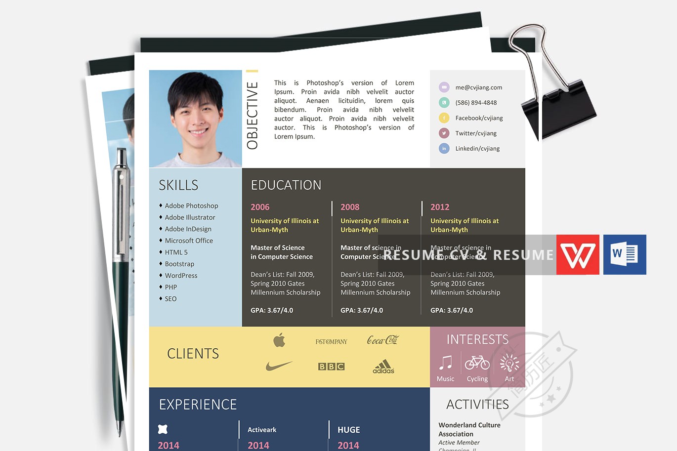 专业UI、名企HR、word设计师共同打造简历设计,采用合理的视觉元素设计,优化了空间利用率,