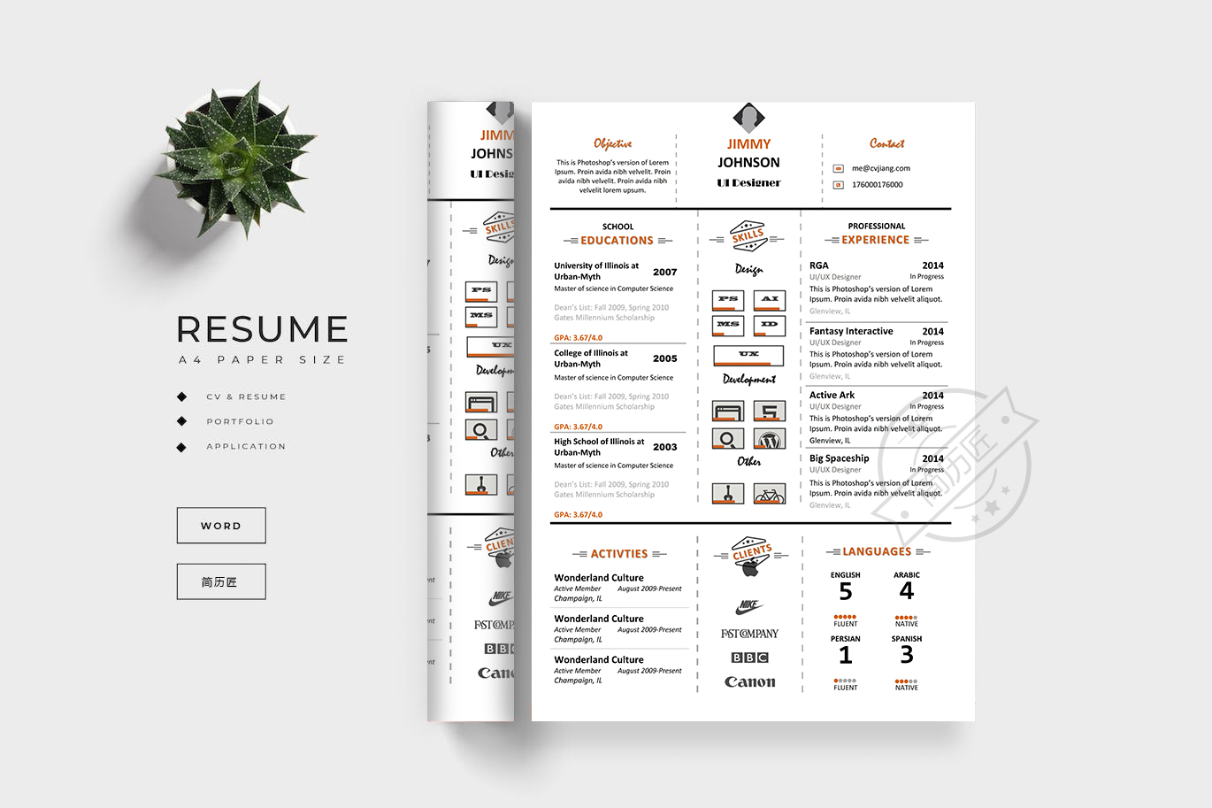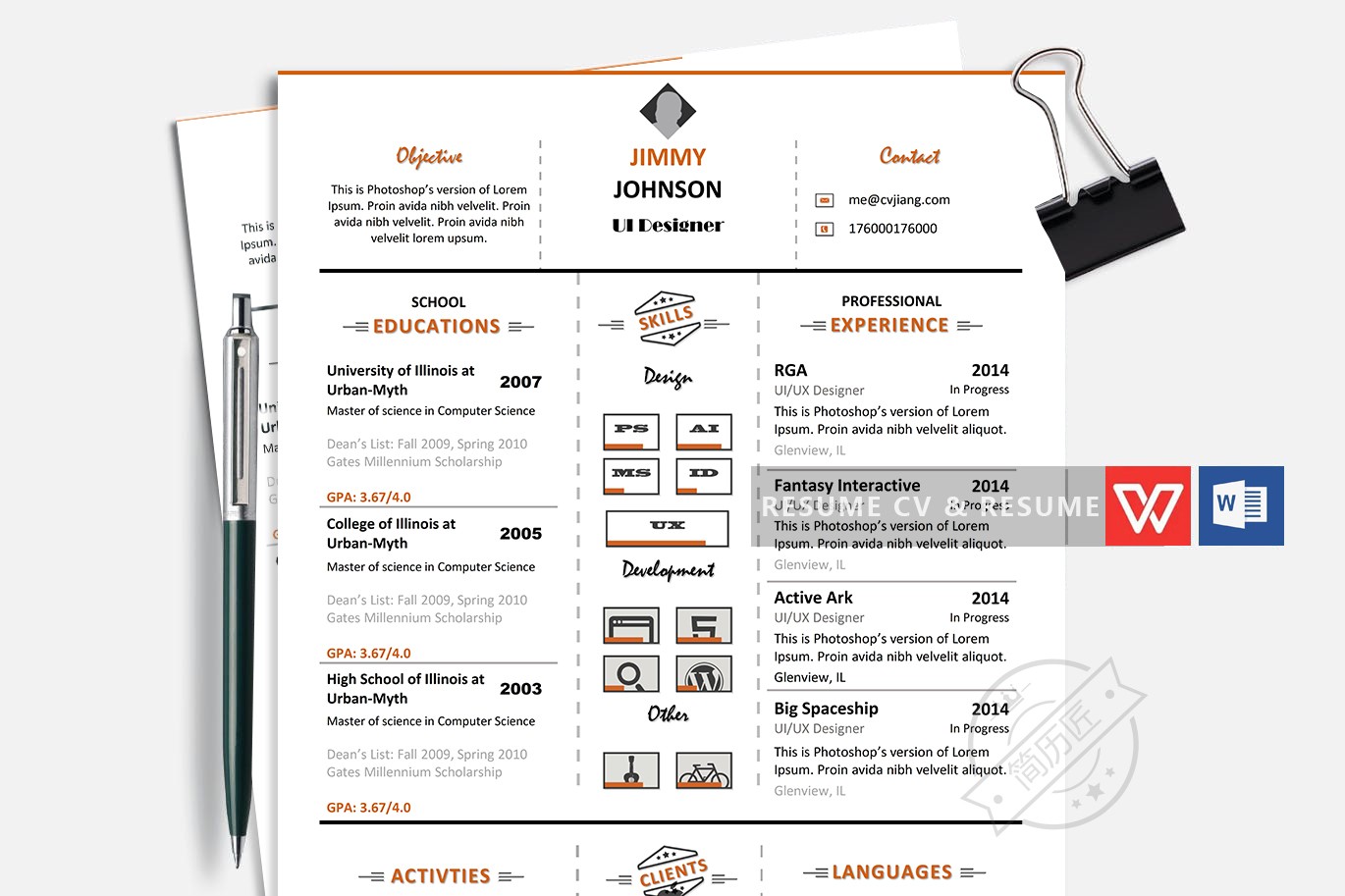 专业UI、名企HR、word设计师共同打造简历设计,采用合理的视觉元素设计,优化了空间利用率,
