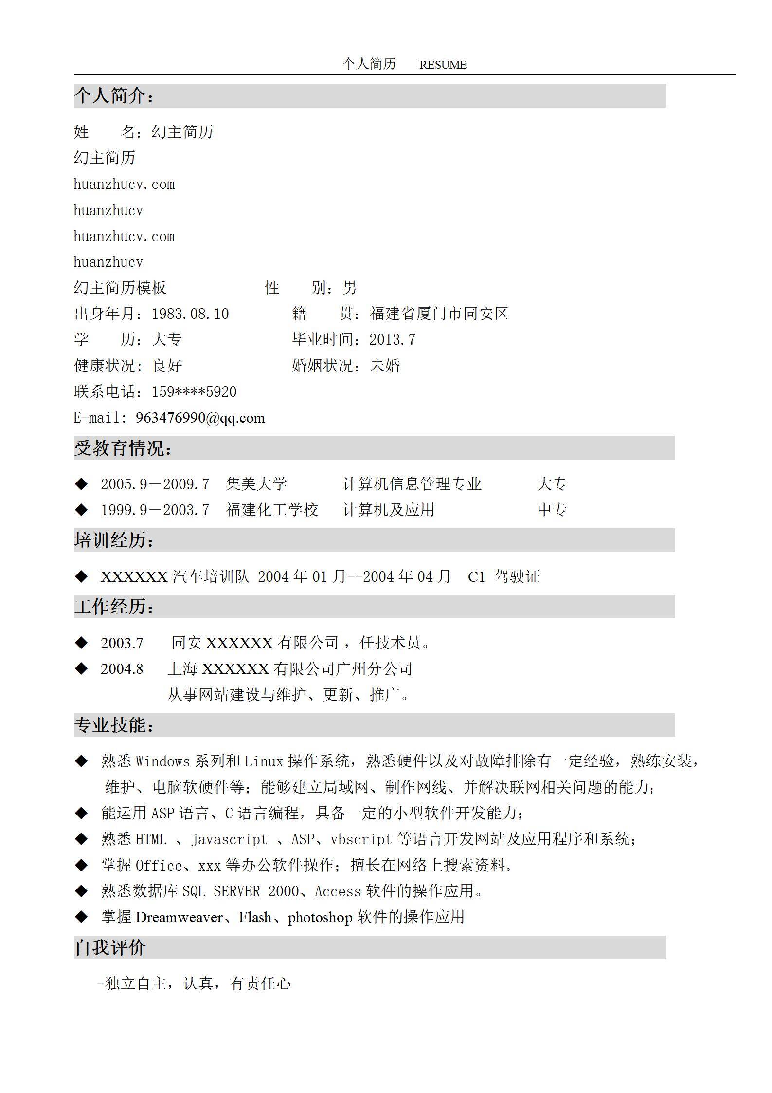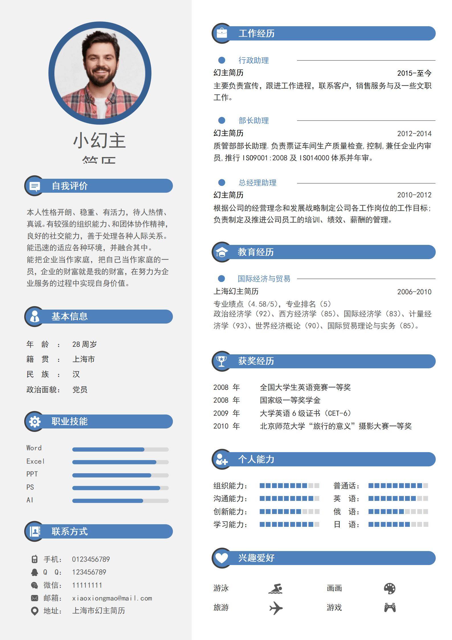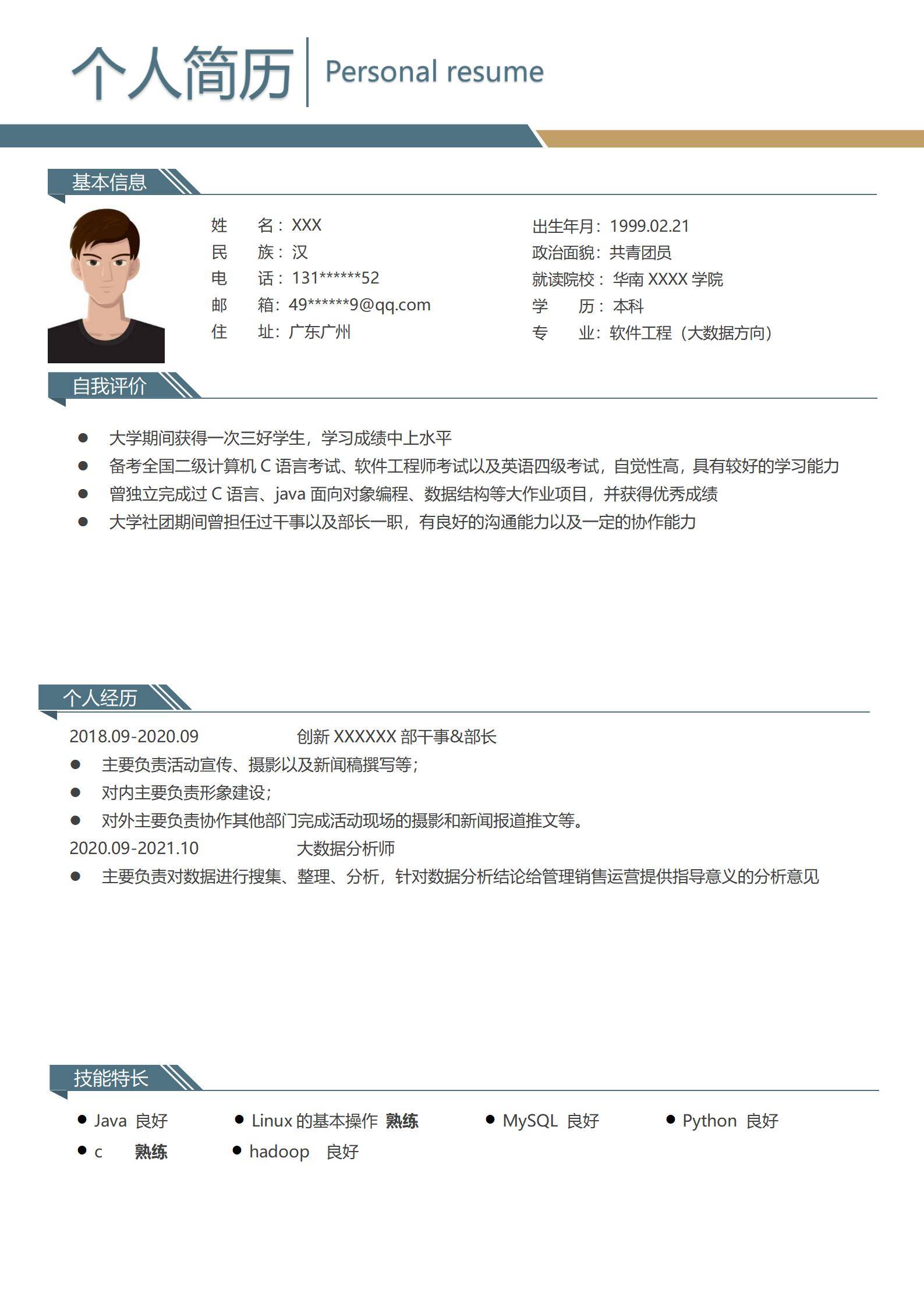 简洁大方,简历模板不错