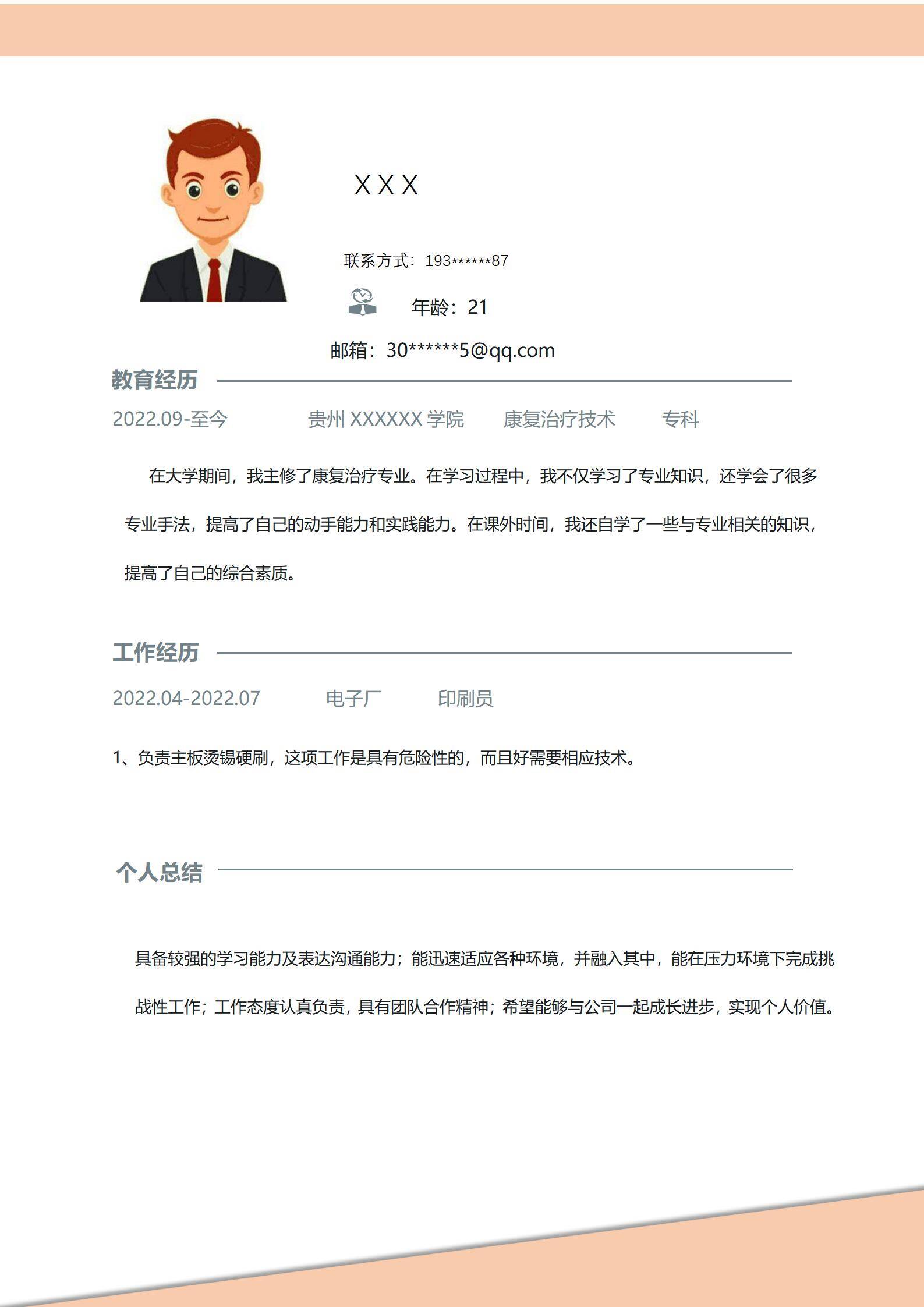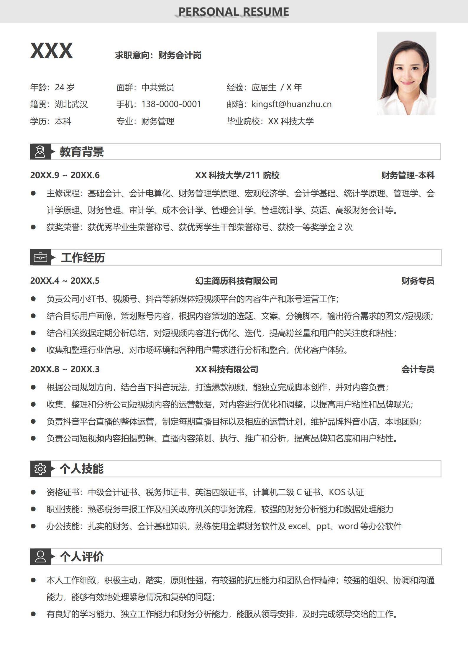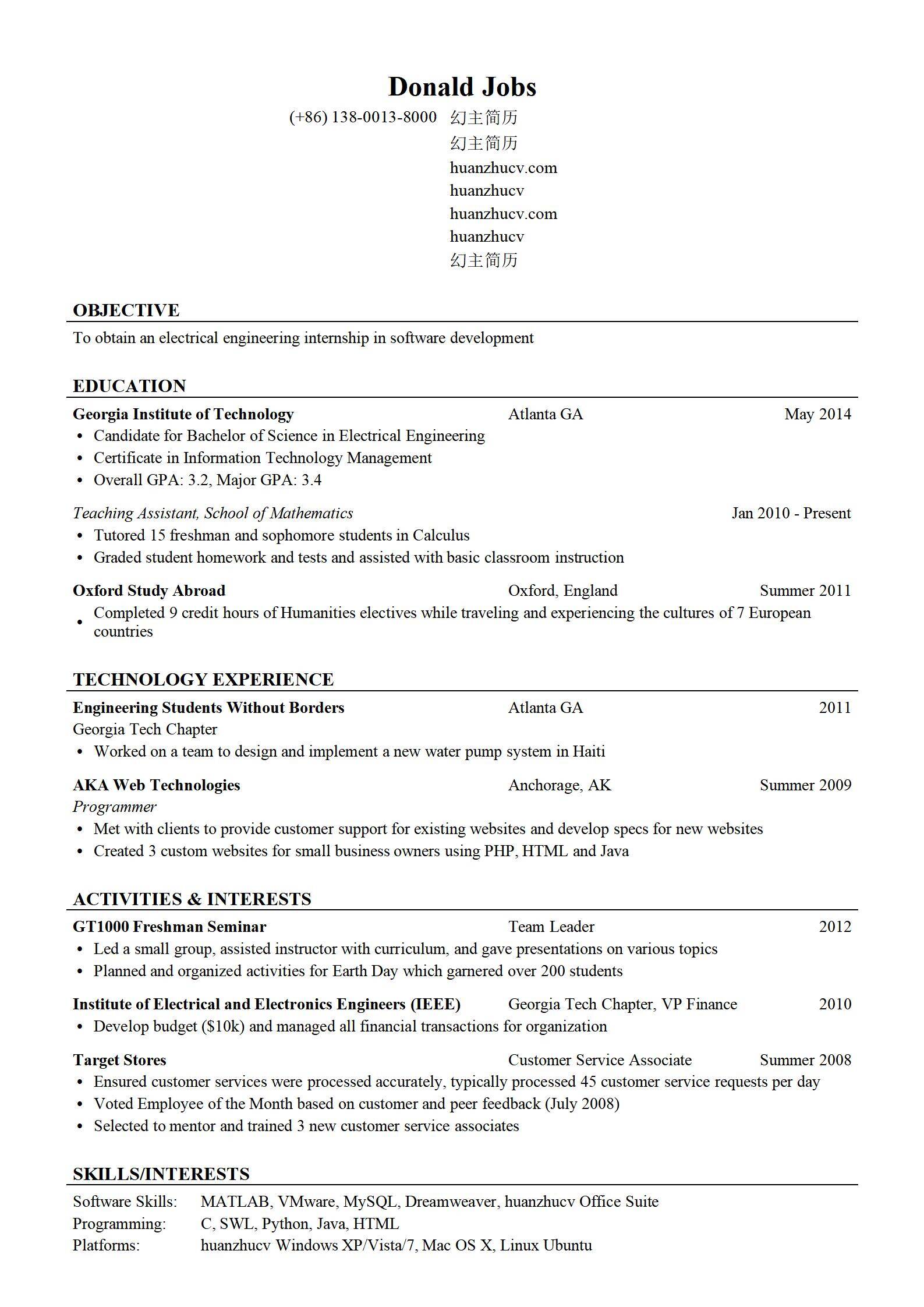 简洁大方,简历模板不错