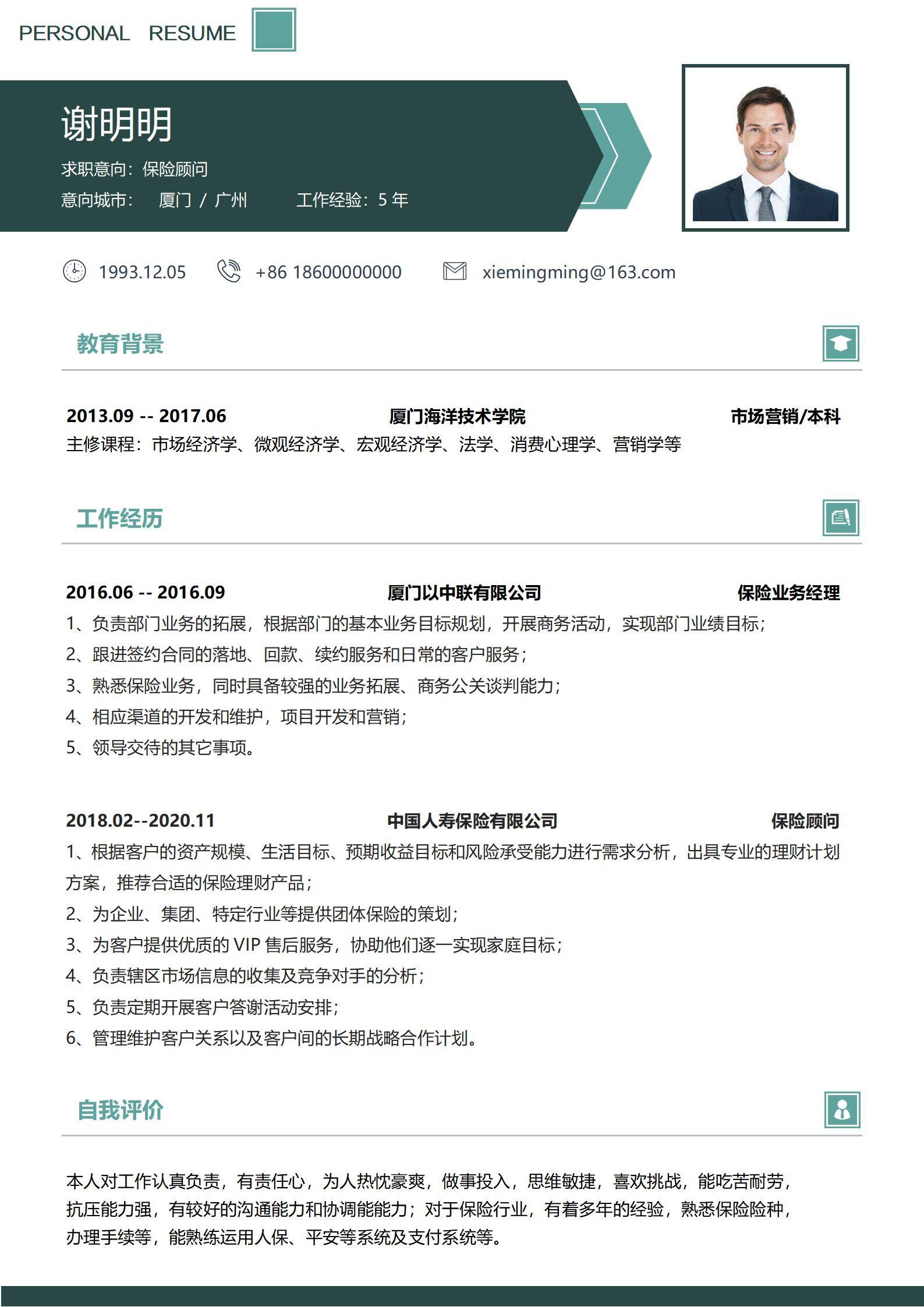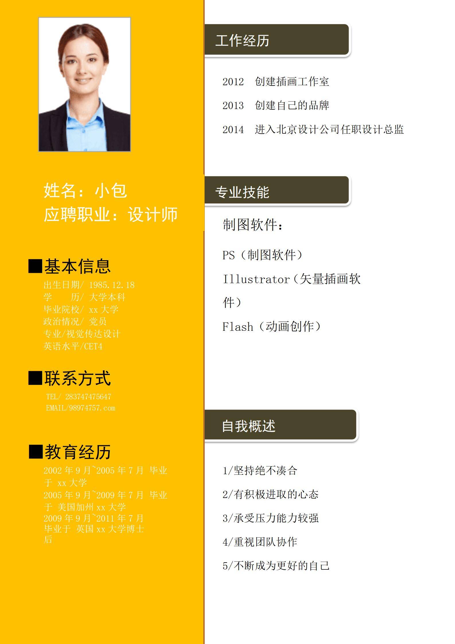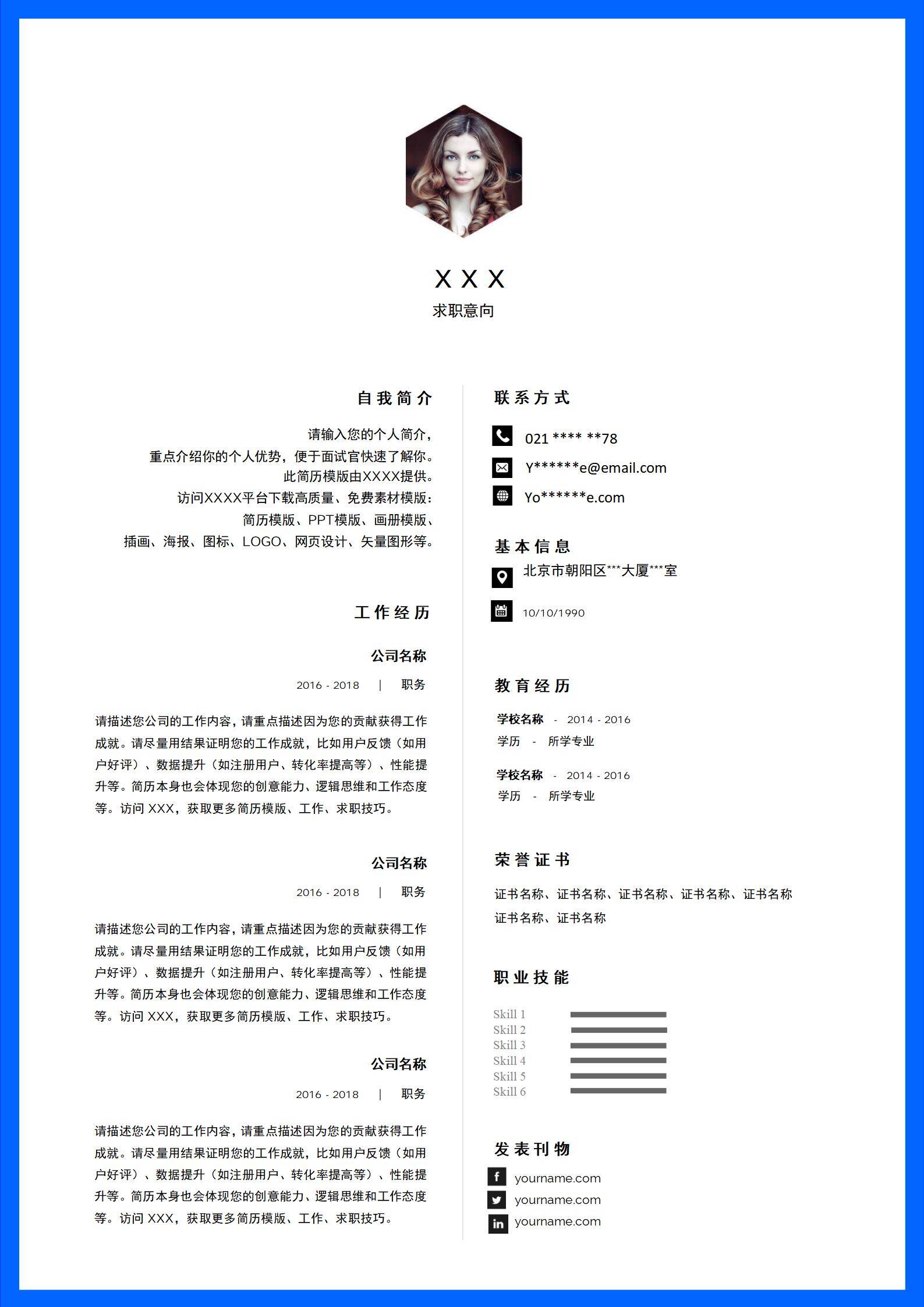 简洁大方,简历模板不错