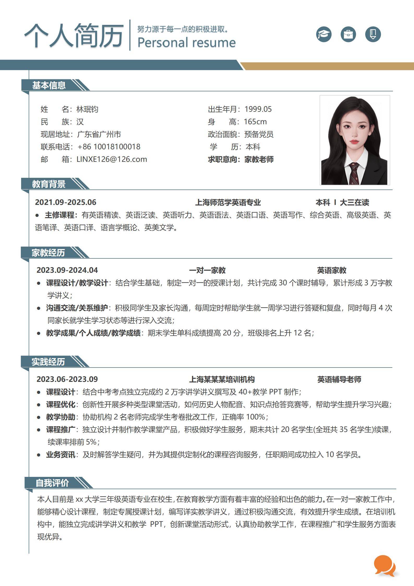 于2026-02-15 18:55 下载了:英语老师免费求职简历模板,并评价: