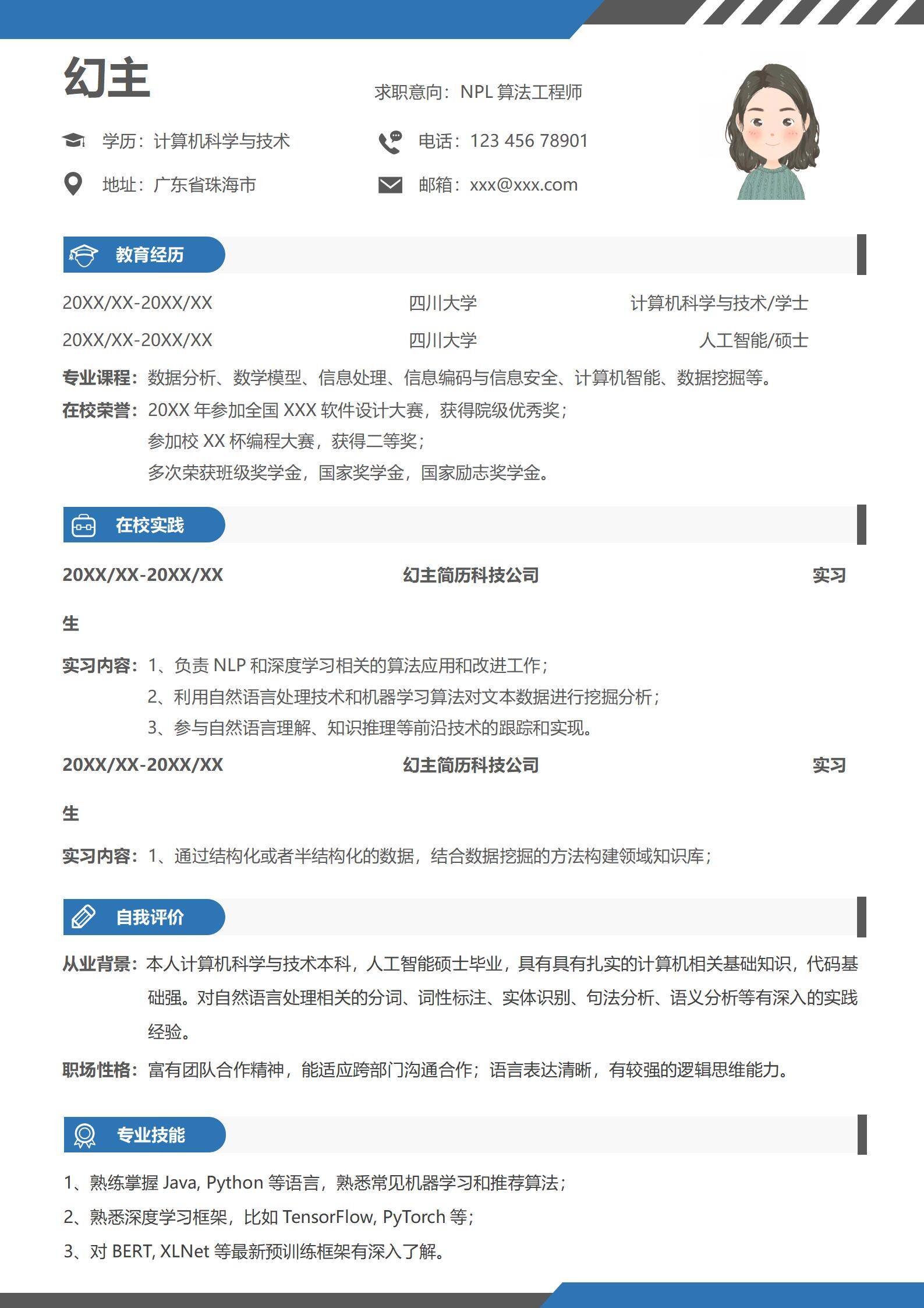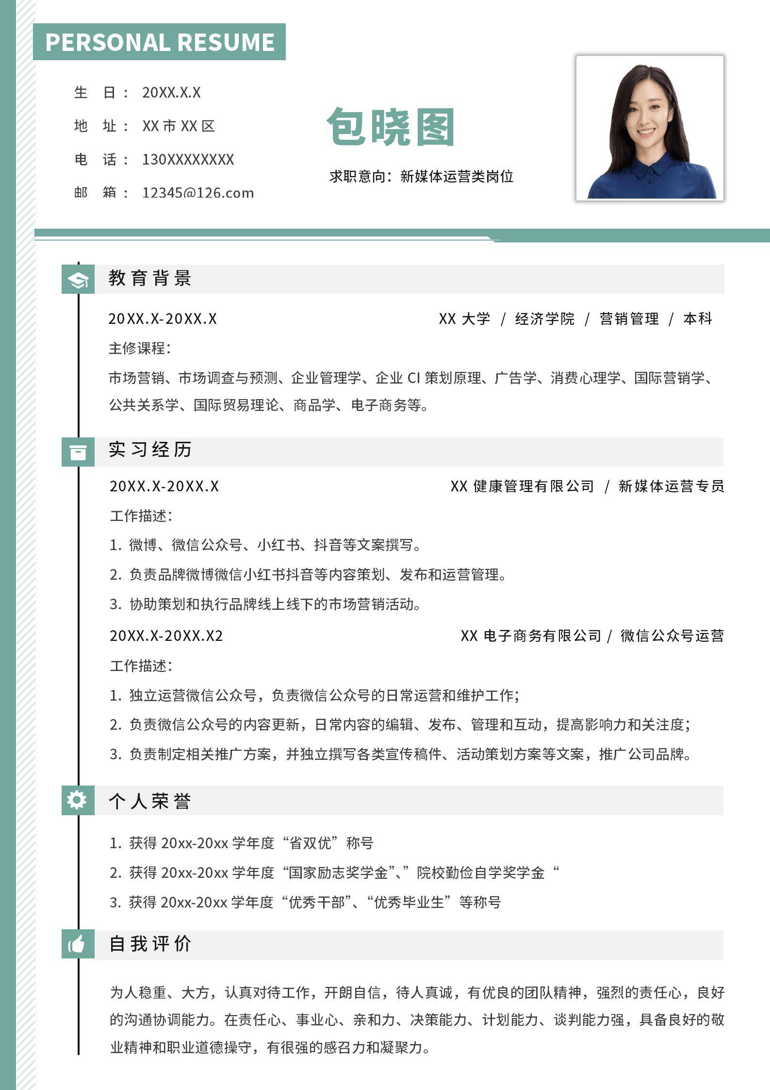简洁大方,简历模板不错