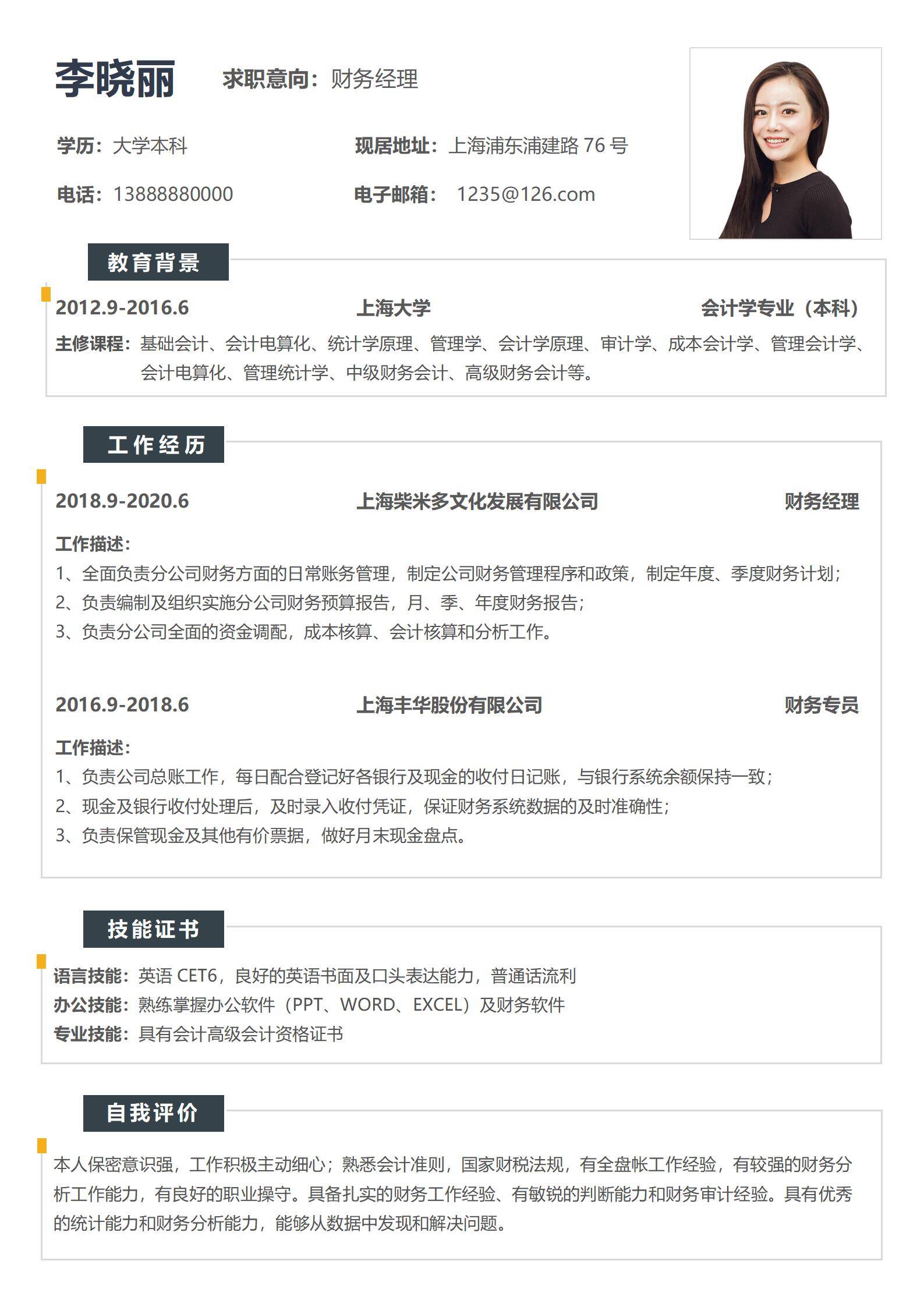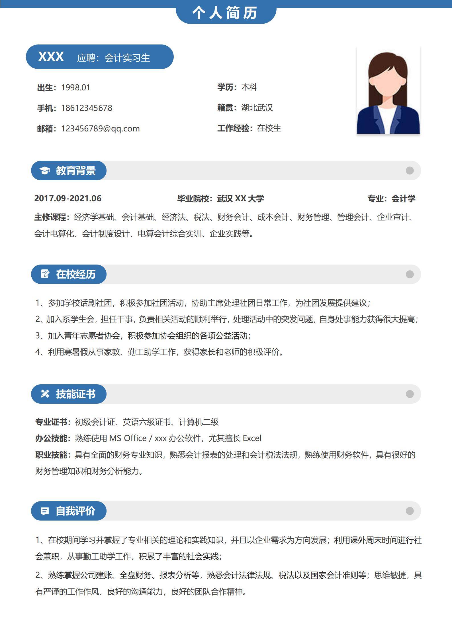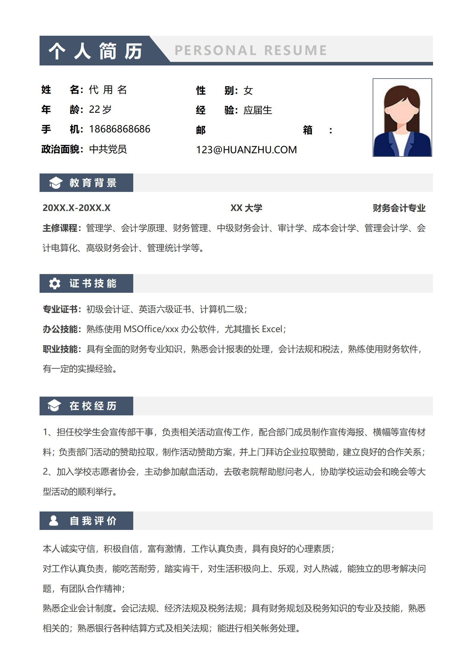 于2026-02-17 00:01 下载了:简约风免费财务会计审计员求职简历,并评价: