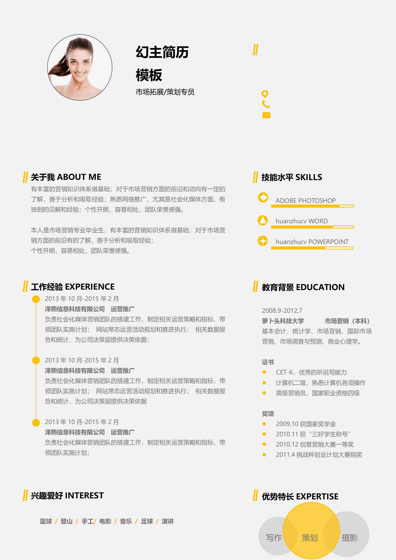 于2026-02-19 14:49 下载了:文艺风市场营销类免费简历模板,并评价: