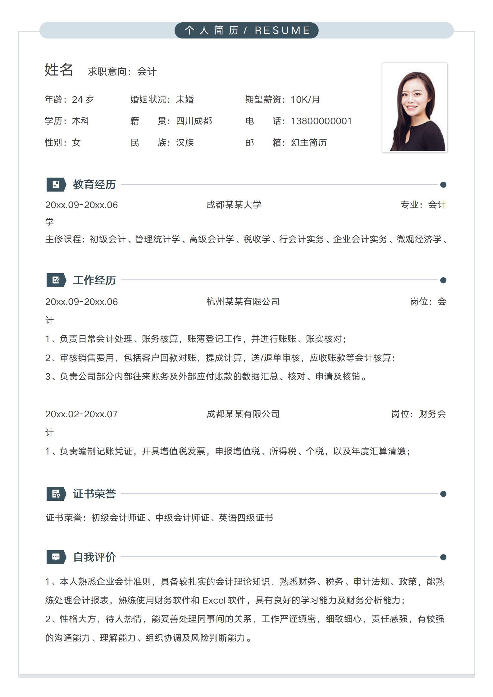 于2026-02-17 00:01 下载了:简约风免费财务会计审计员求职简历,并评价: