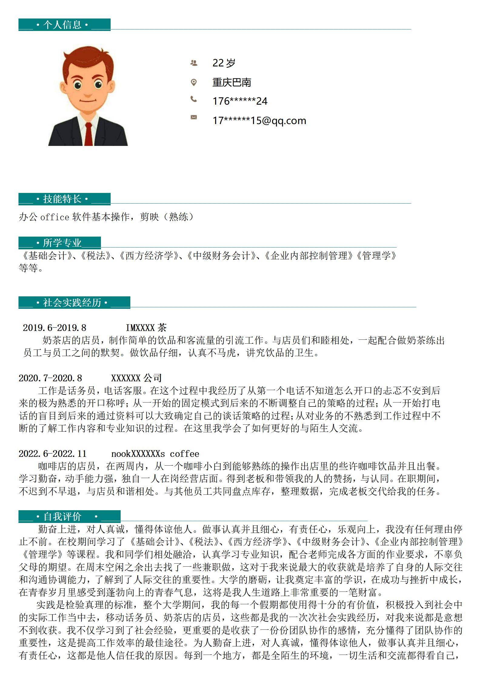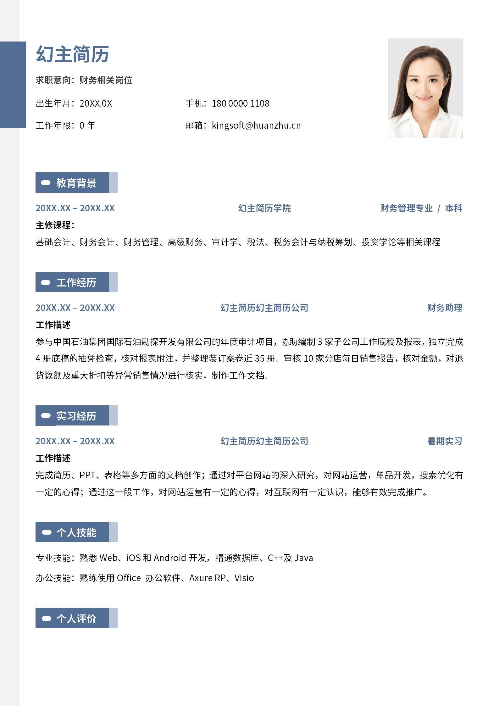 于2026-02-17 00:01 下载了:简约风免费财务会计审计员求职简历,并评价: