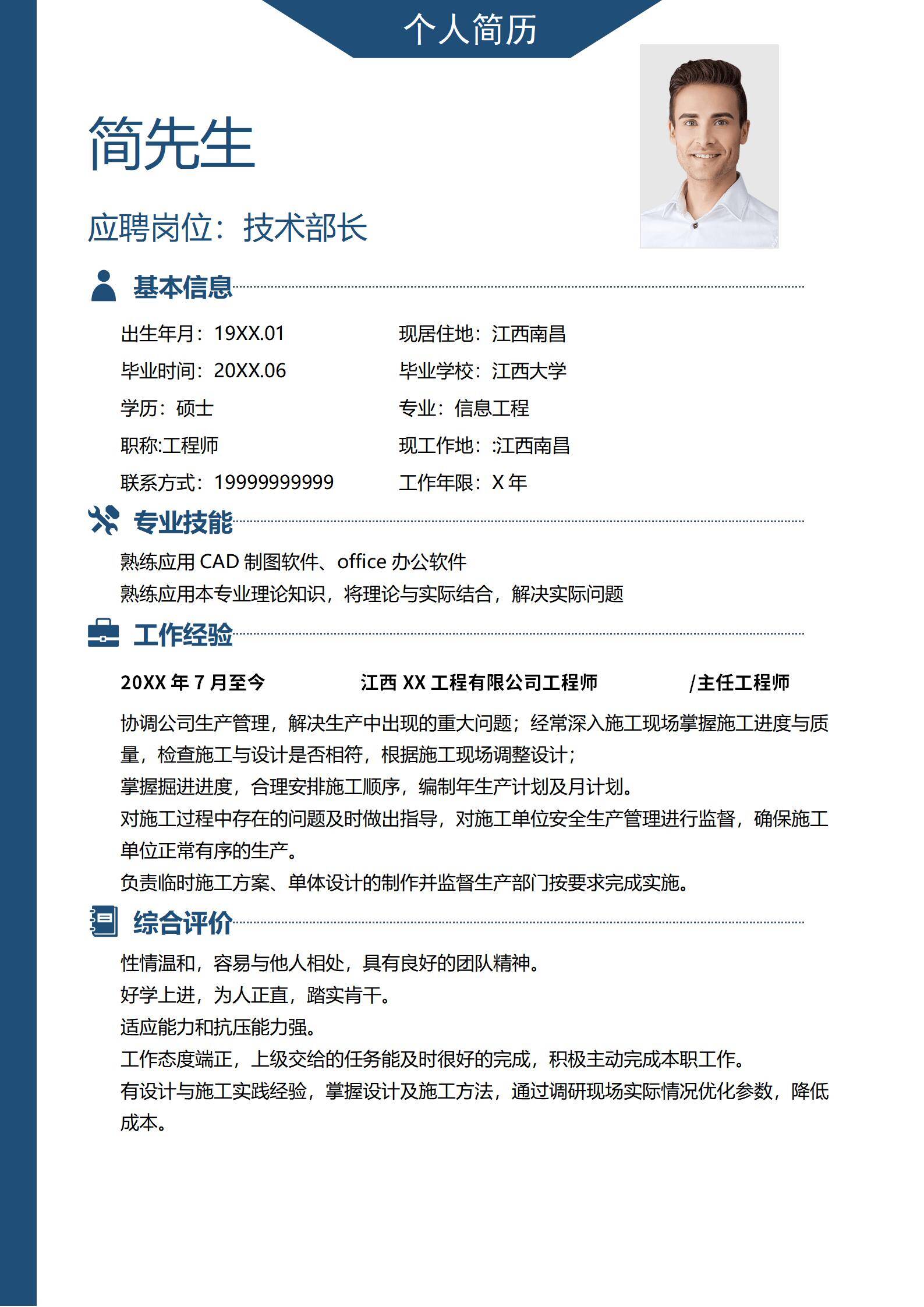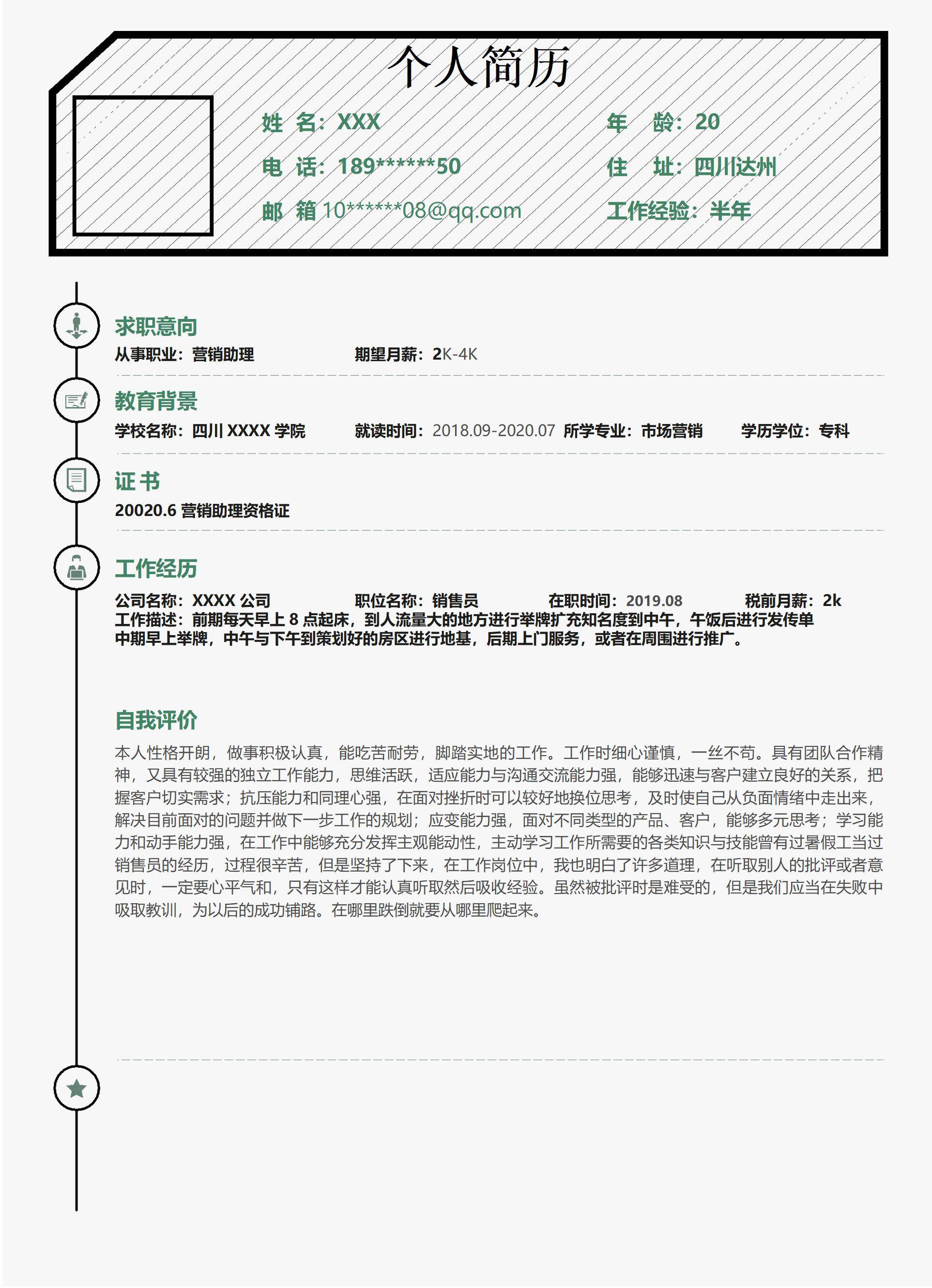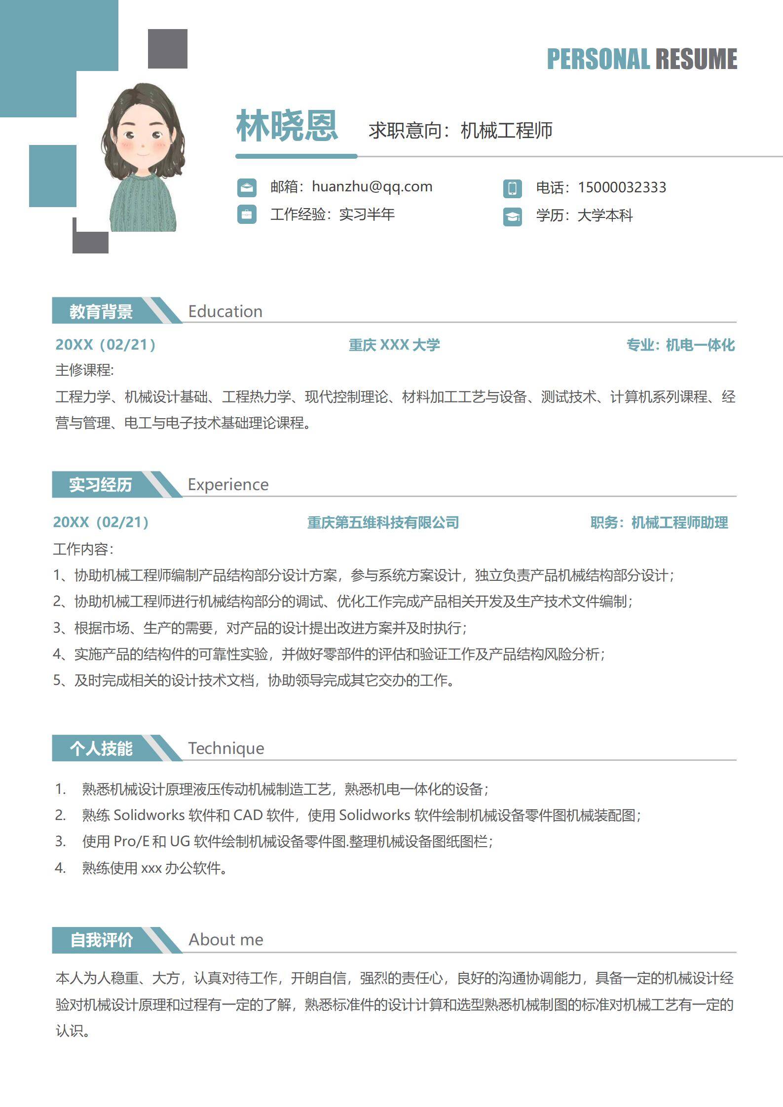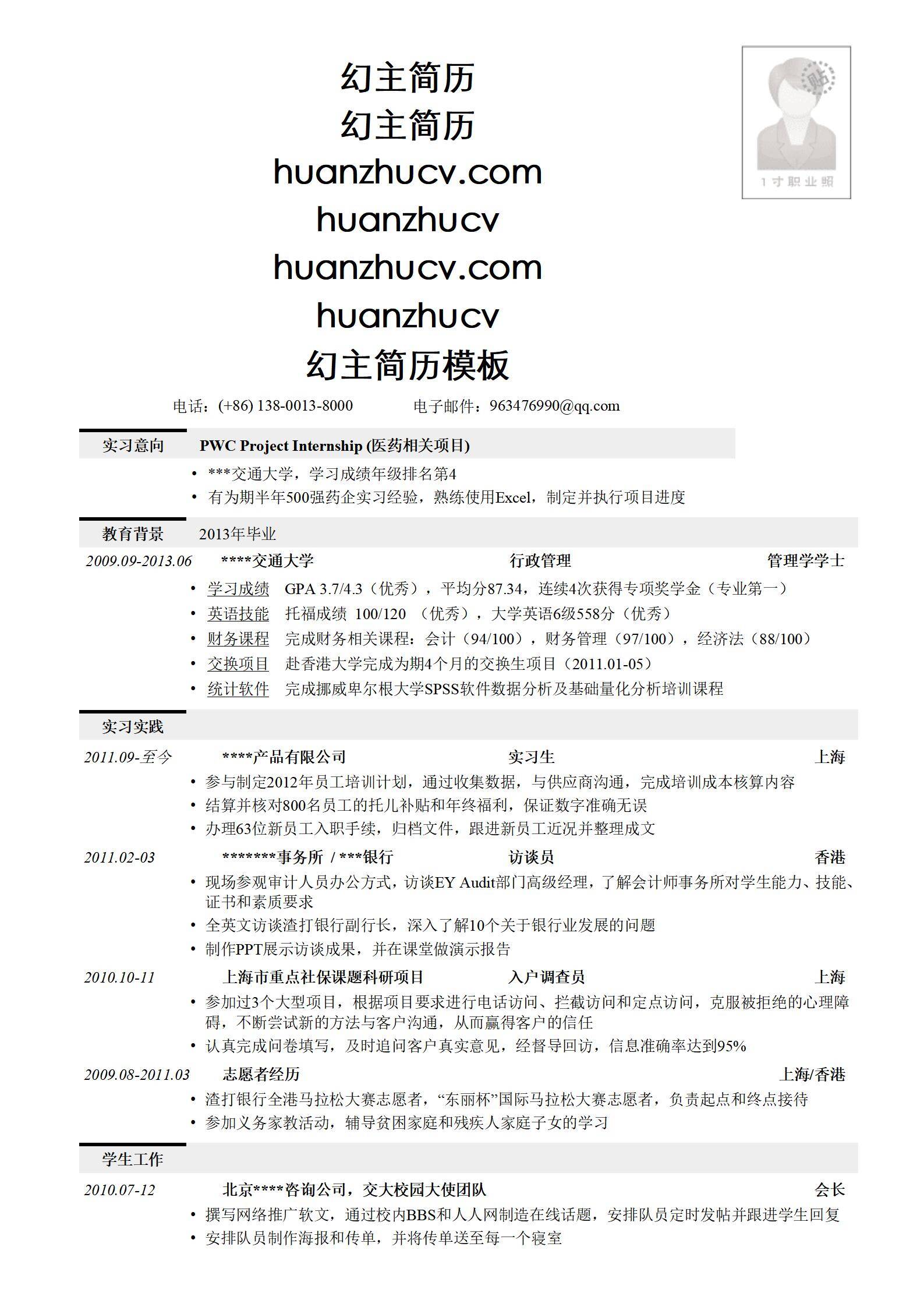 简洁大方,简历模板不错