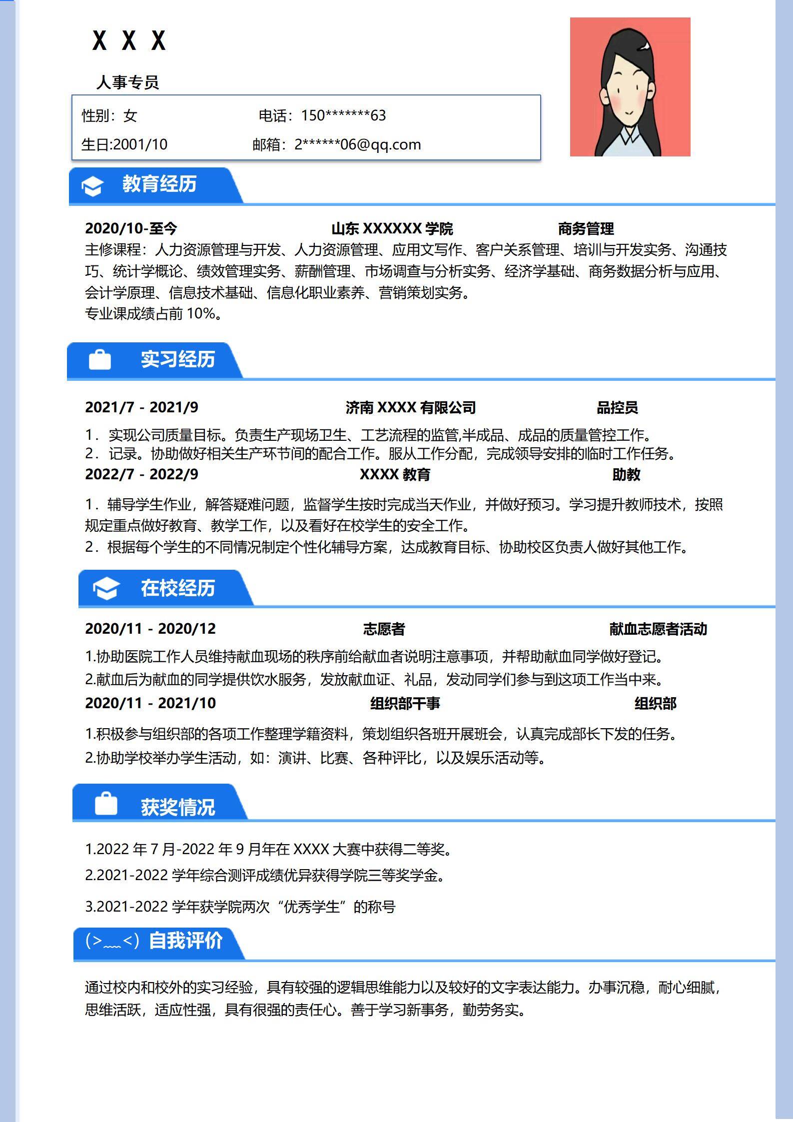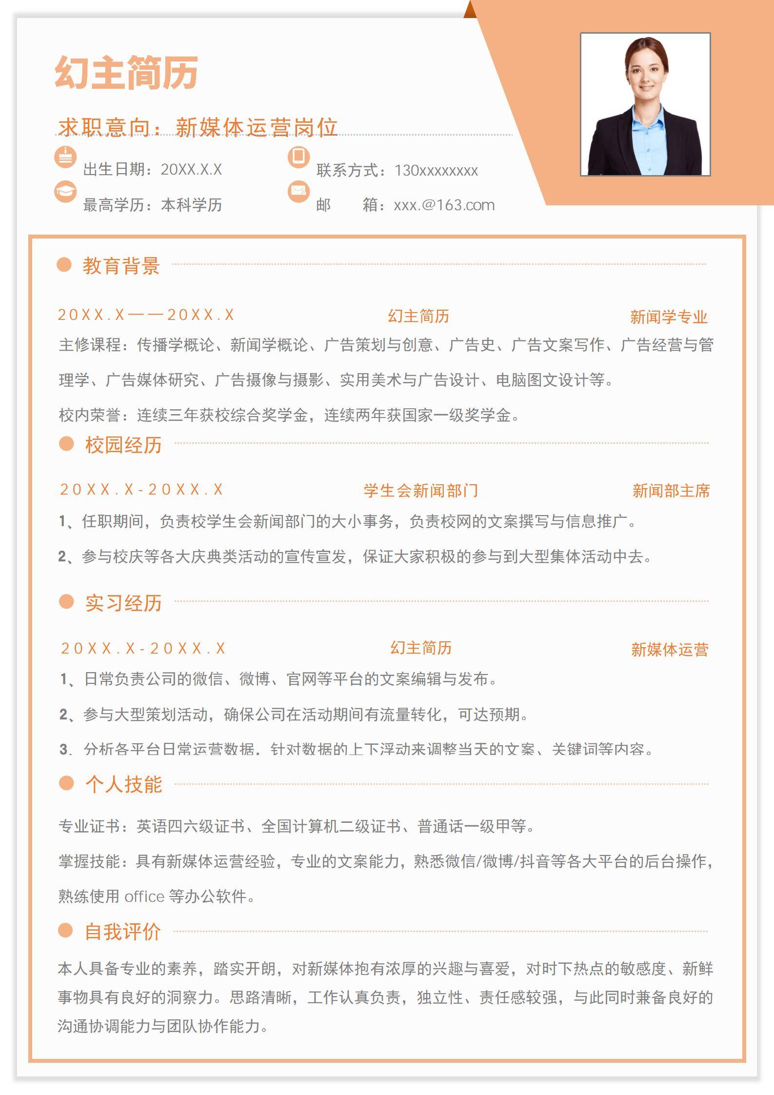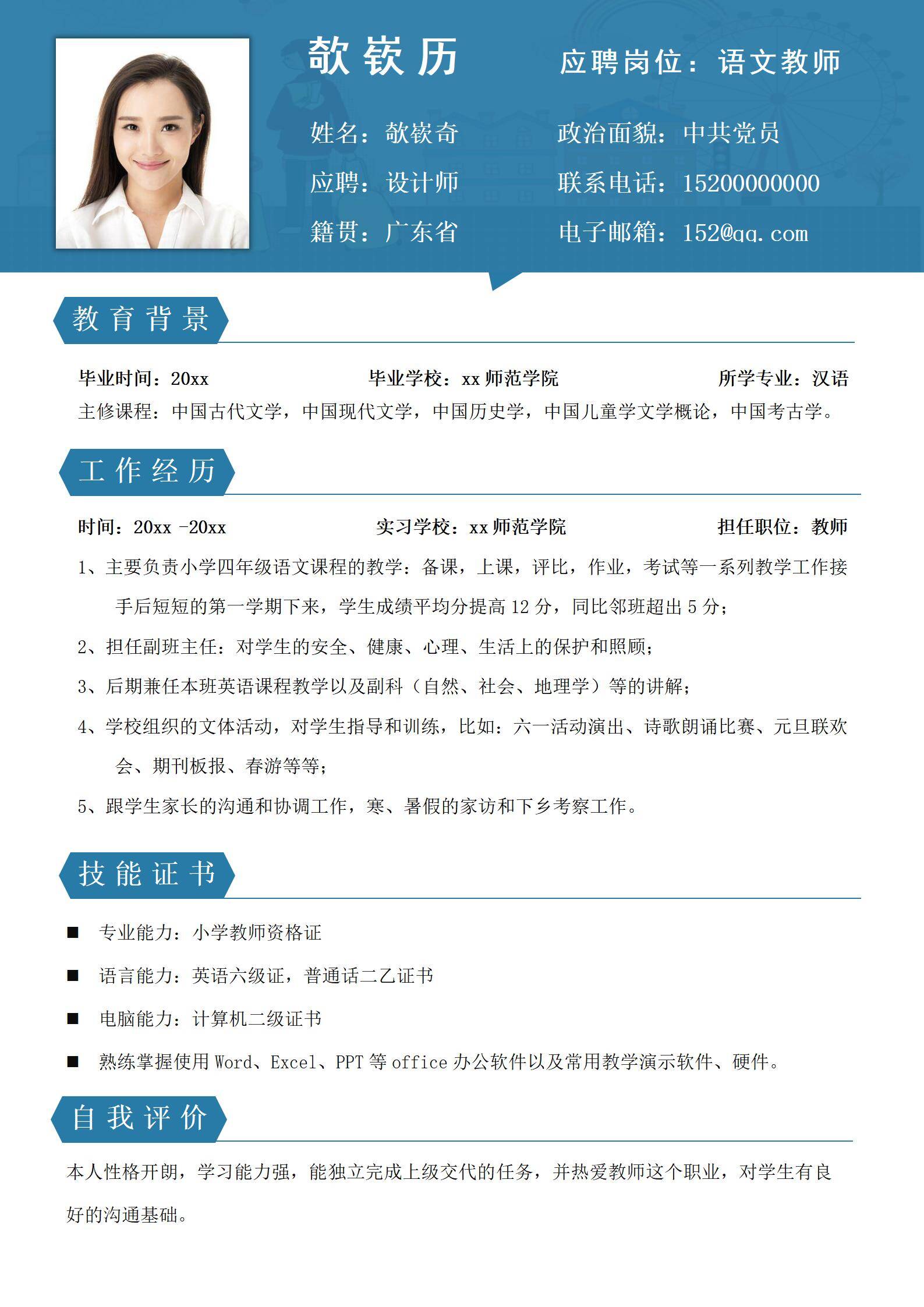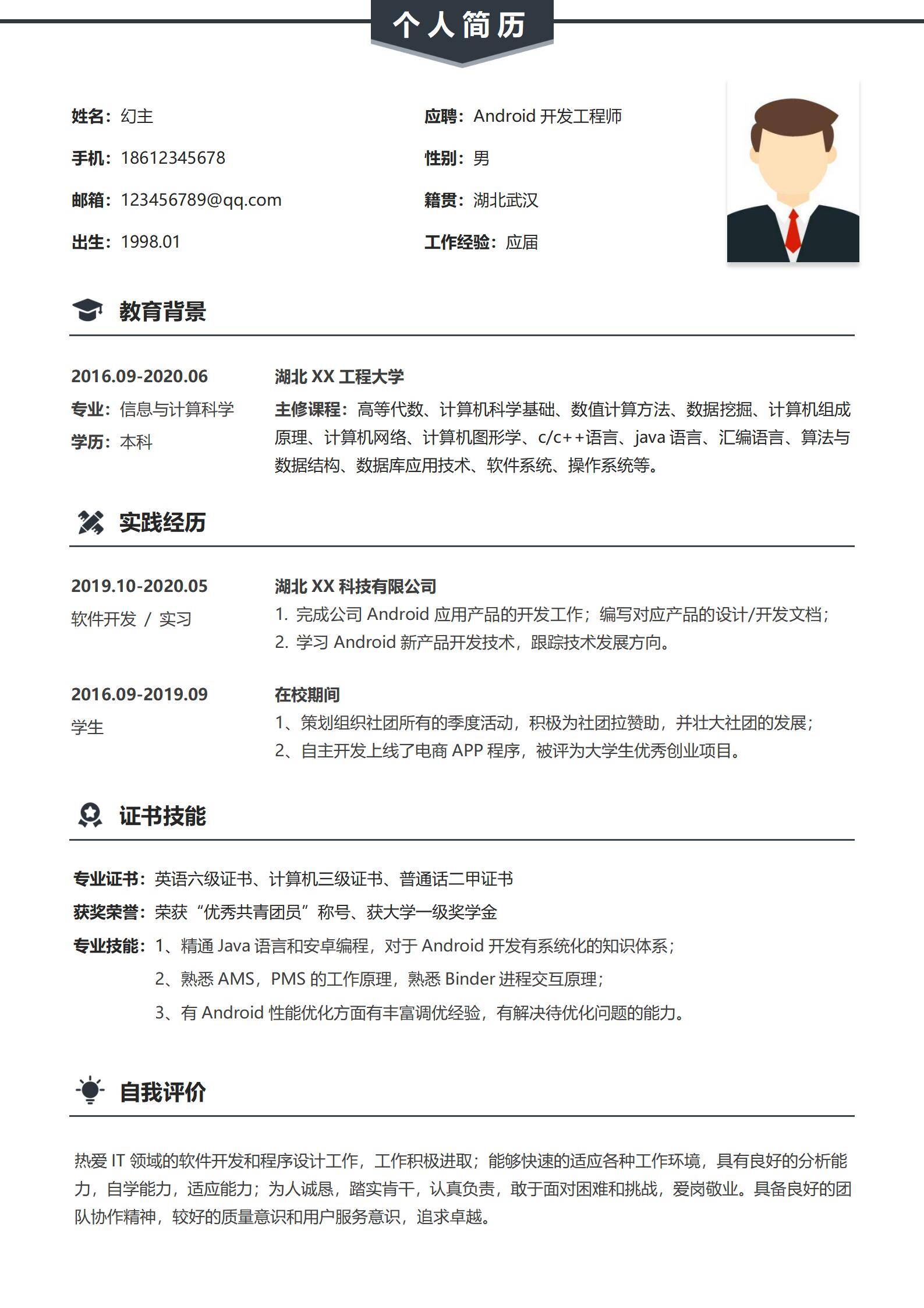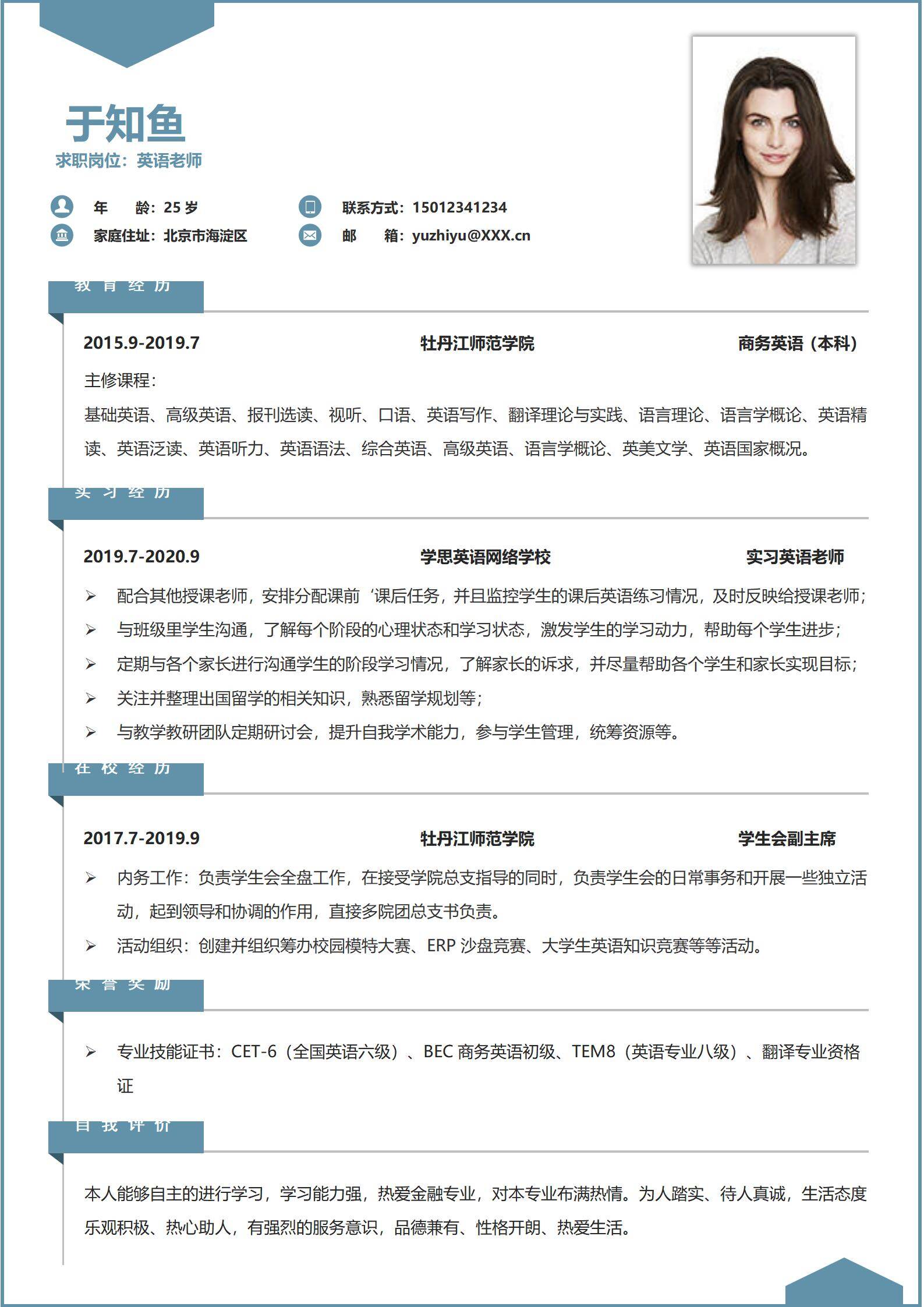 简洁大方,简历模板不错