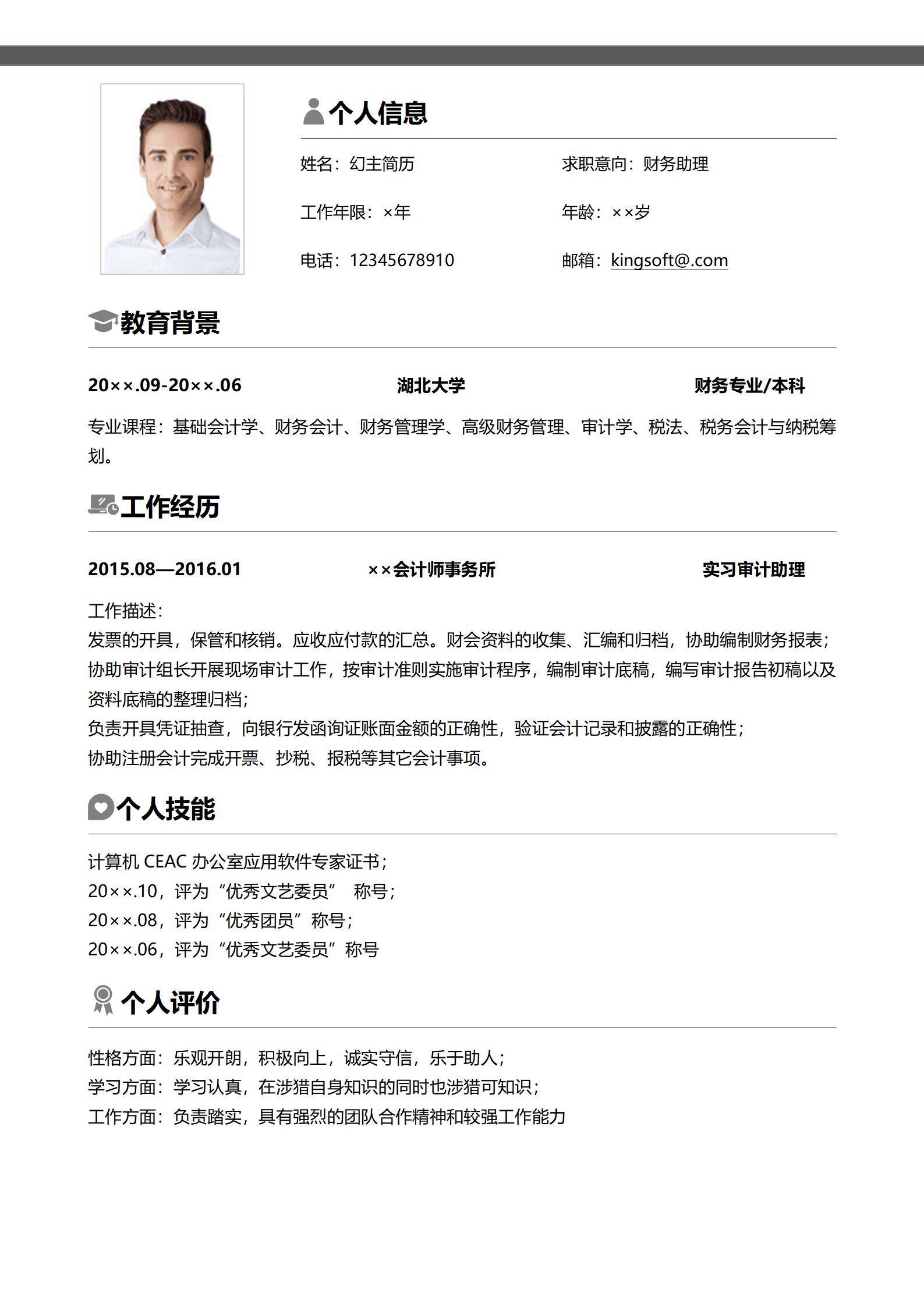 于2026-02-17 00:01 下载了:简约风免费财务会计审计员求职简历,并评价: