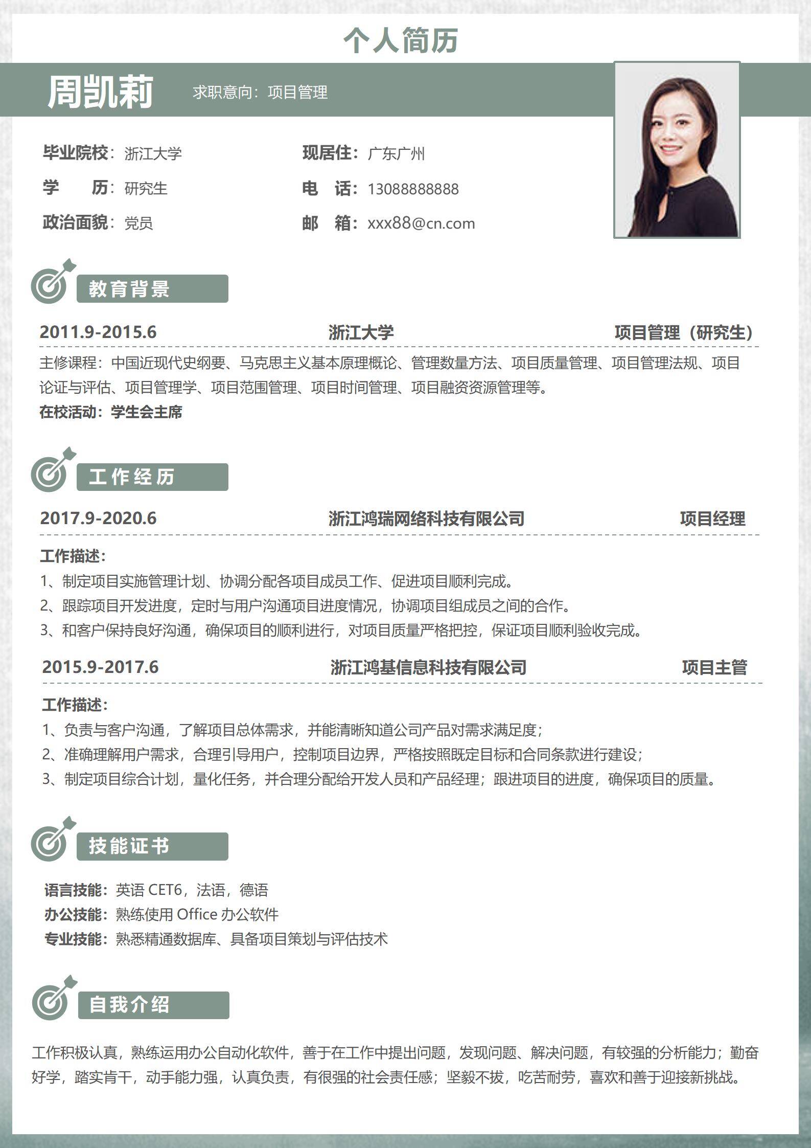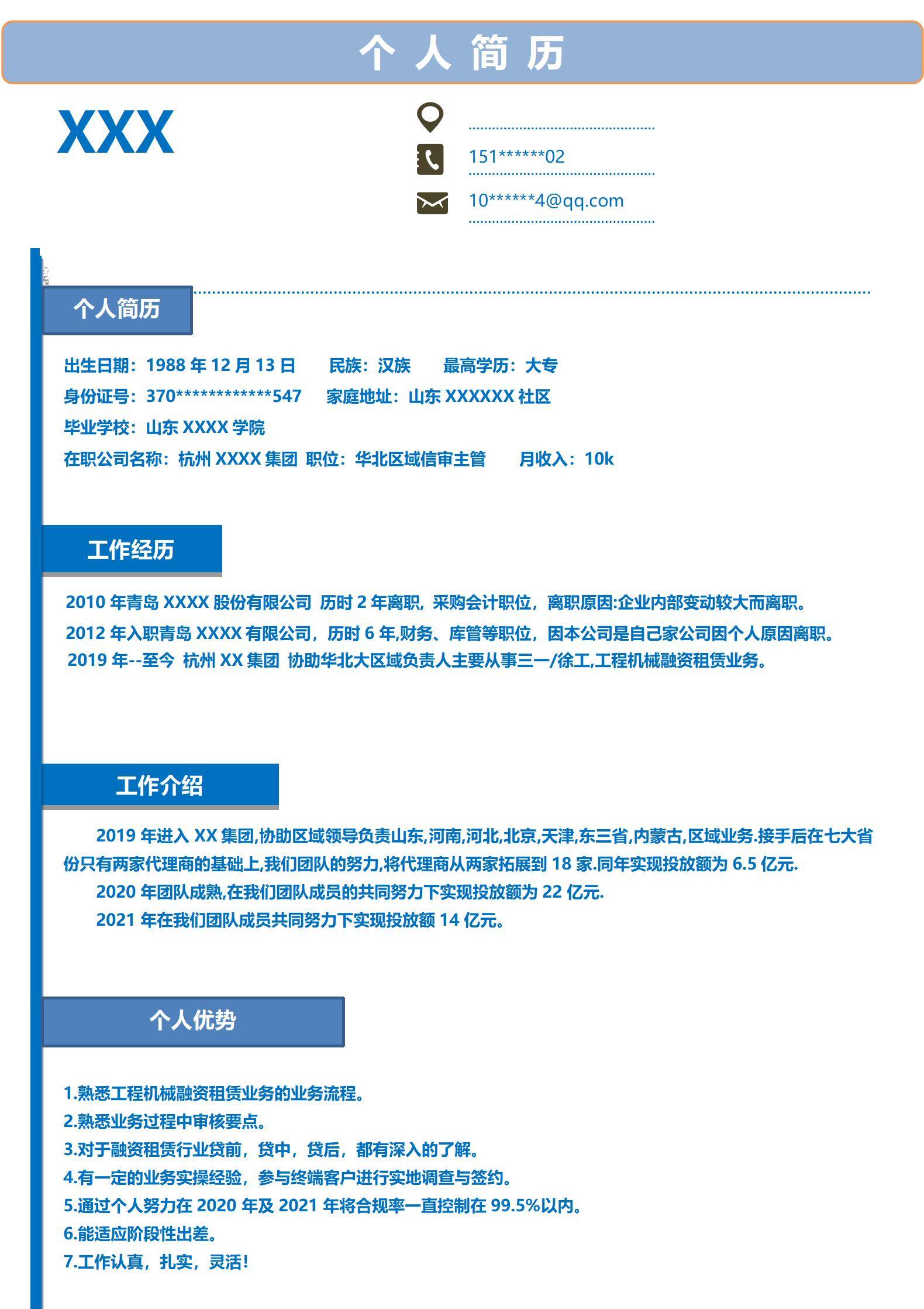 简洁大方,简历模板不错