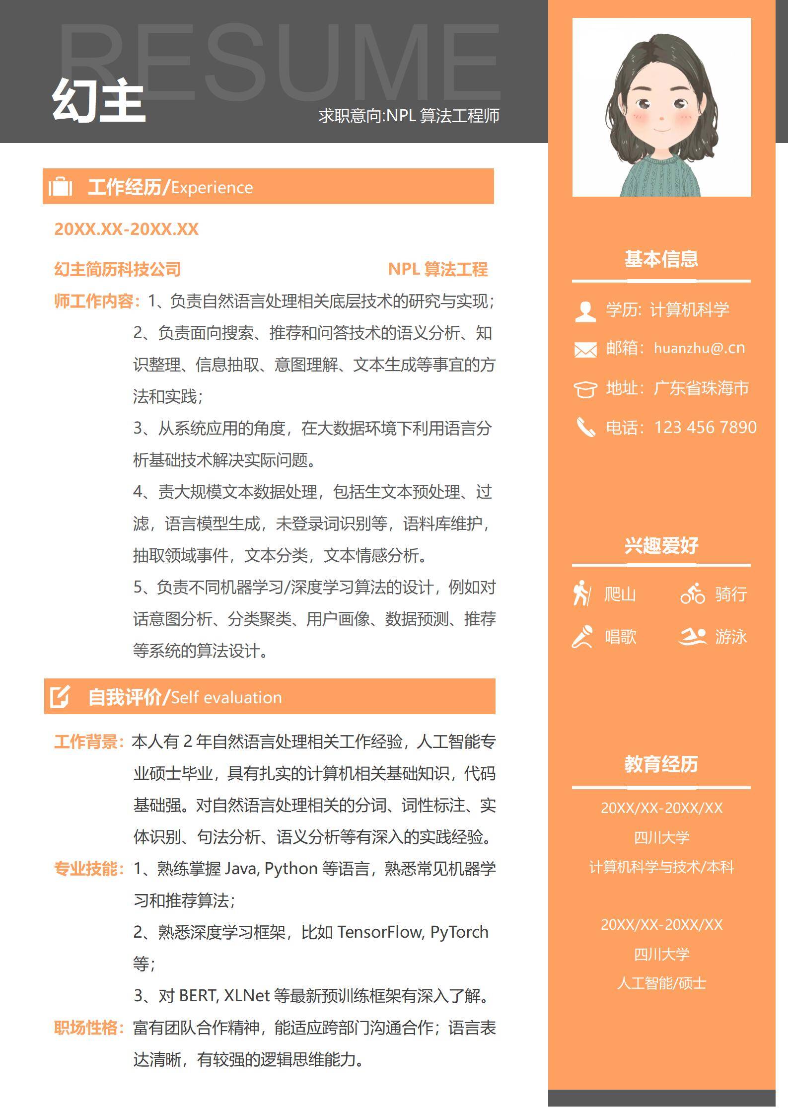 于2026-02-16 00:17 下载了:左右分栏个人免费简历模板,并评价: